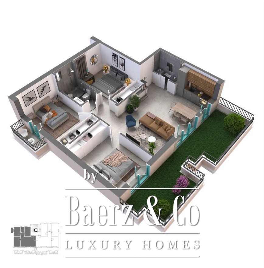 The apartment invites with three bedrooms, a bathroom, a separate toilet, and two terraces. Floor-to-ceiling views bring the ever-changing Bay of Kotor into the interior, complementing the 186 m² living area fully furnished for immediate occupancy. Thoughtful planning includes a hallway orienting movement towards the living spaces and terraces, where outdoor living is shaped by the rhythm of sea and sky.