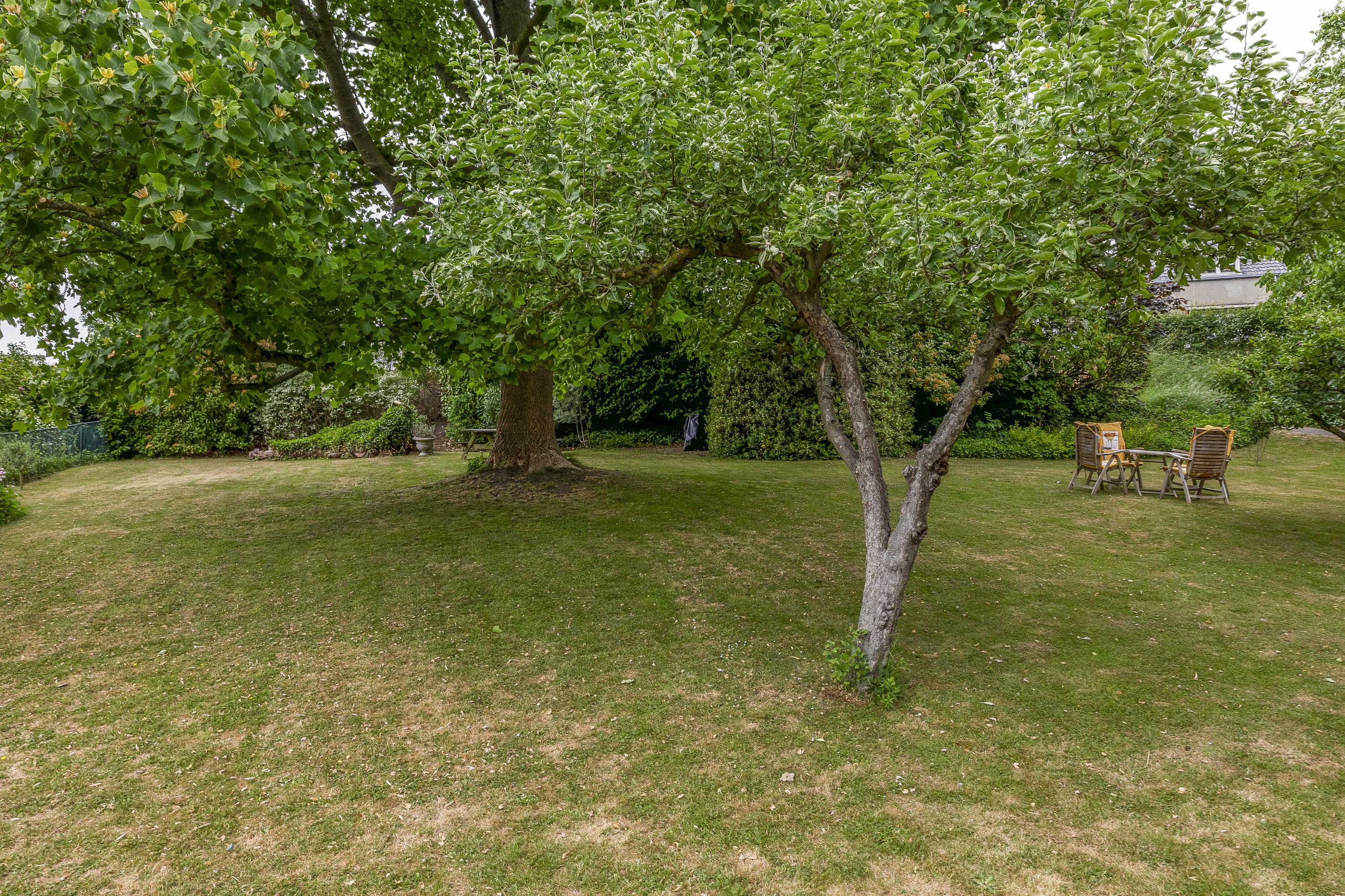 With a plot size of over 1,800 m², this home offers complete privacy. The garden features mature landscaping, a lawn reminiscent of an orchard, and multiple terraces. The main sun terrace faces south and is built on a solid concrete foundation from the former barn. The current garage, built in 2008, is well-insulated, heated, and includes a large storage loft.
