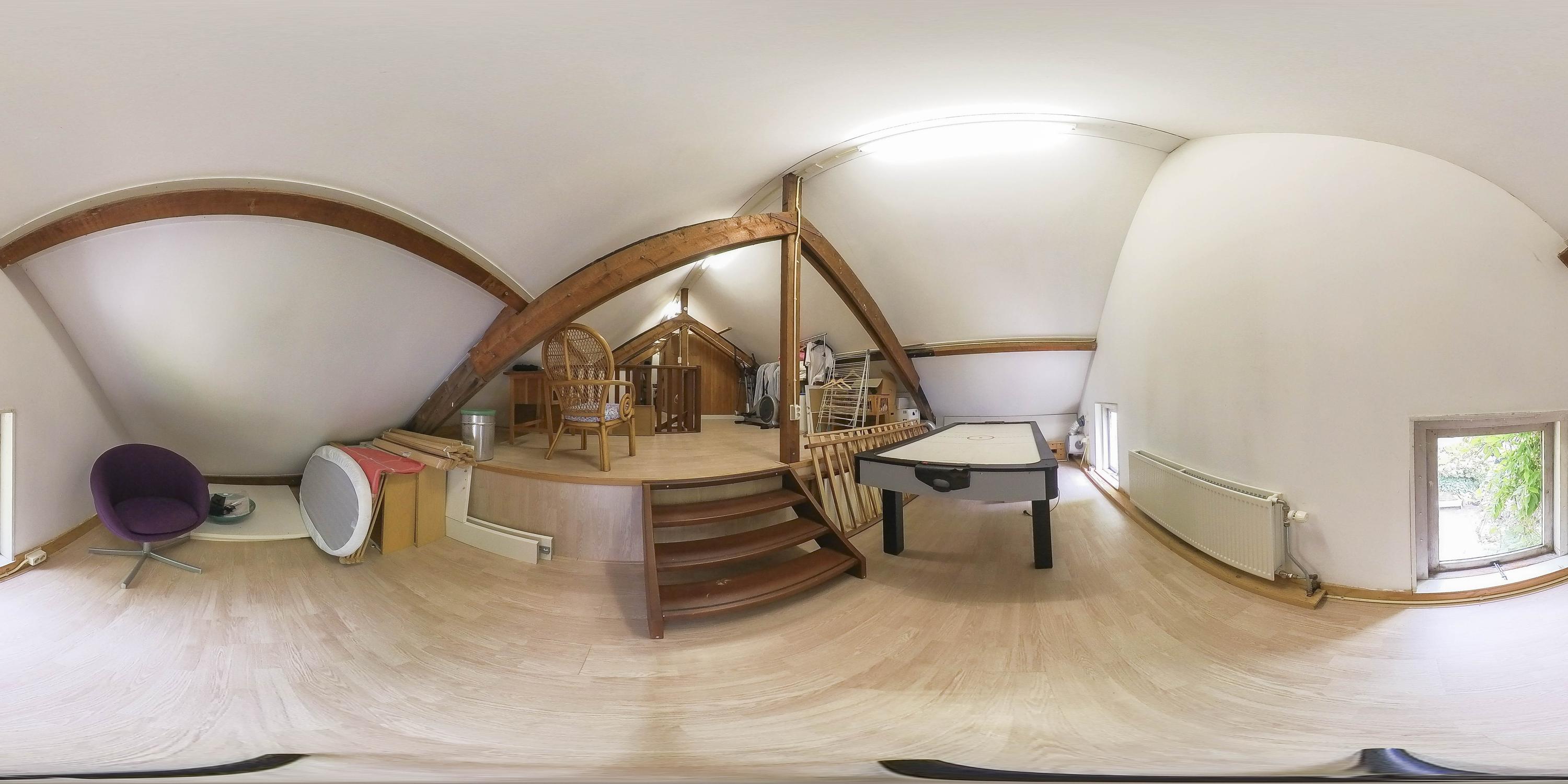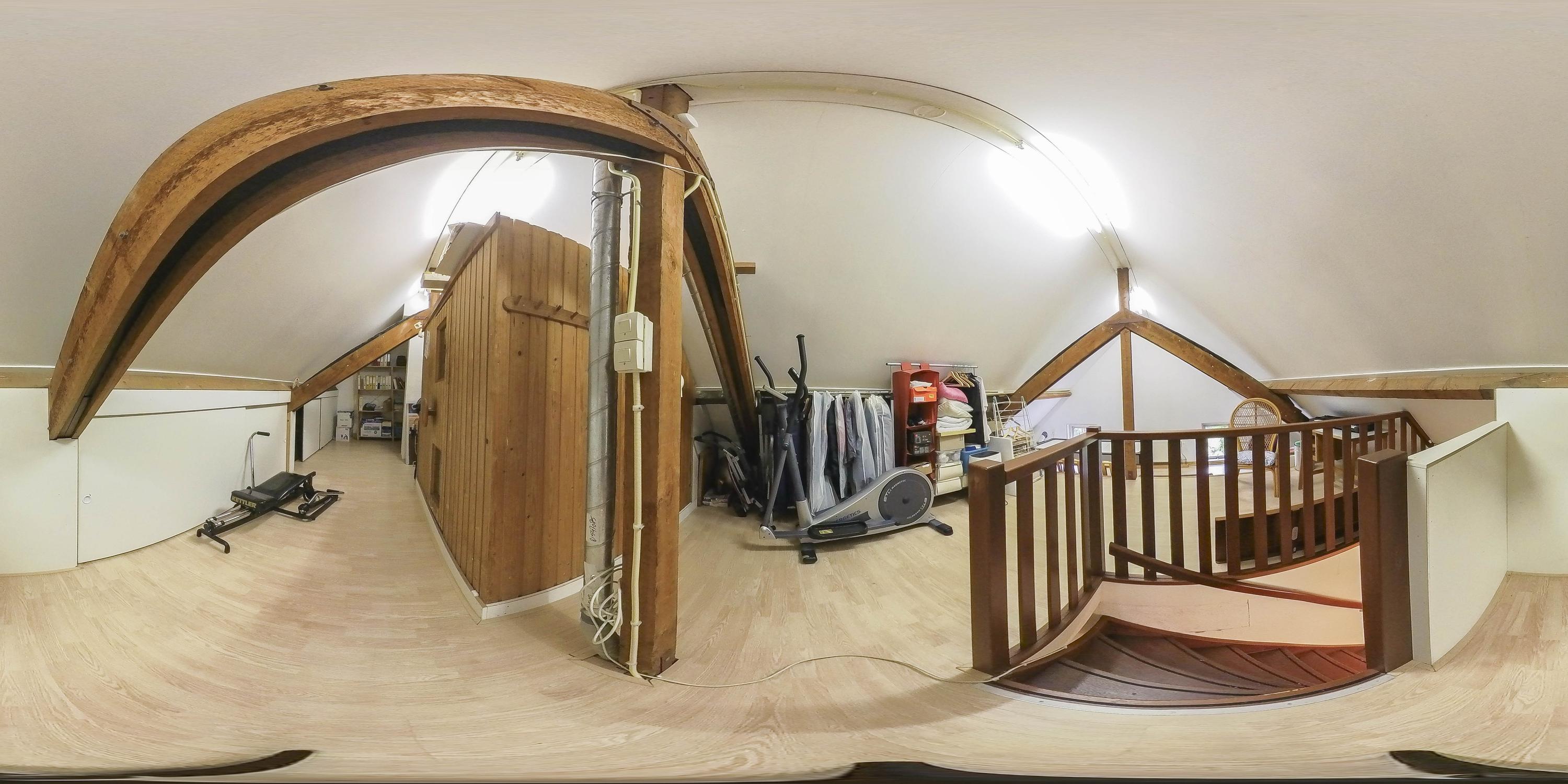 This floor also offers a second bathroom and a versatile space for hobbies or work. A fixed staircase leads to the second floor—a surprisingly spacious attic level with sauna, extra storage, and hobby room. Additional (bed)rooms can easily be created here!