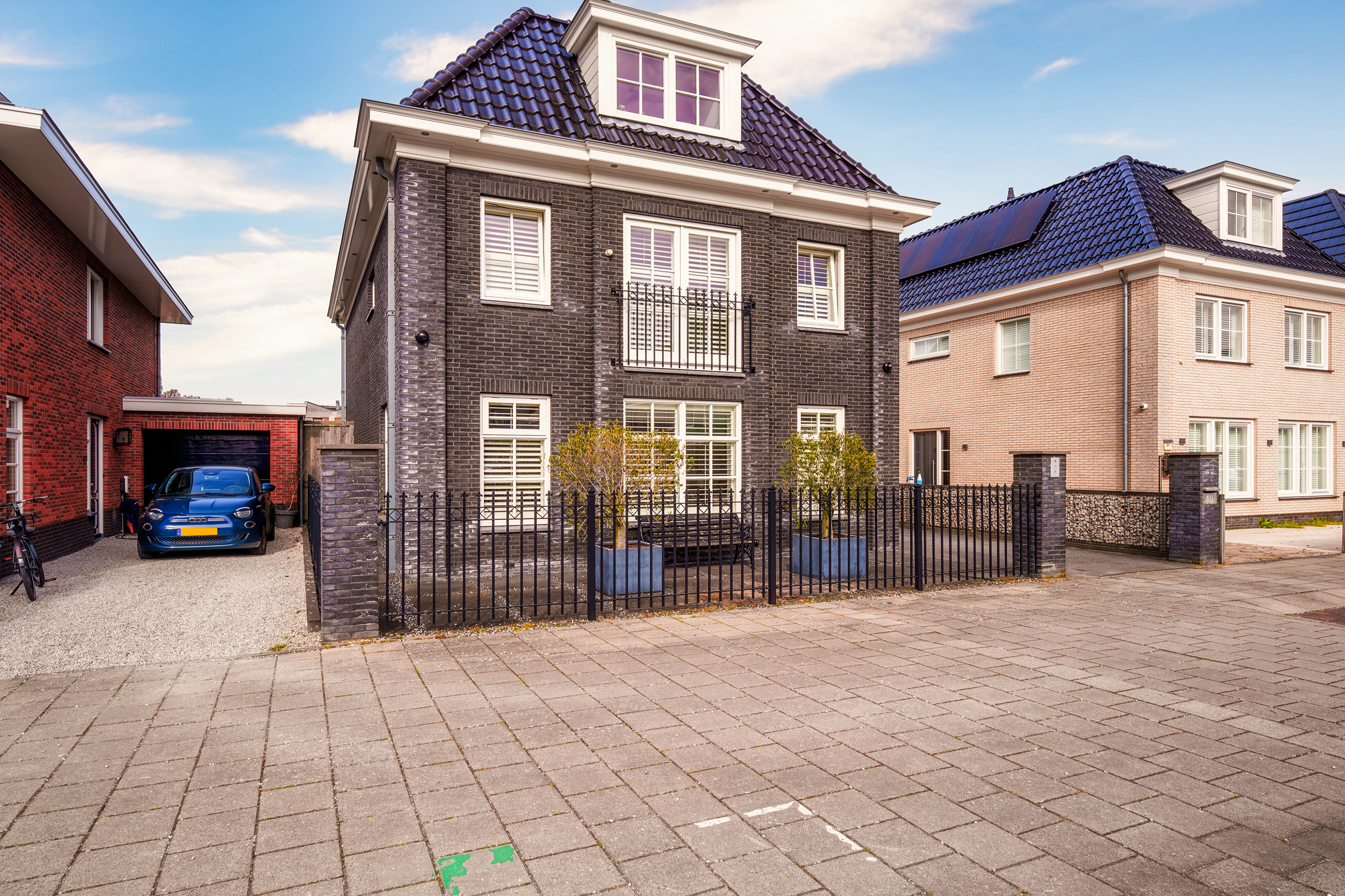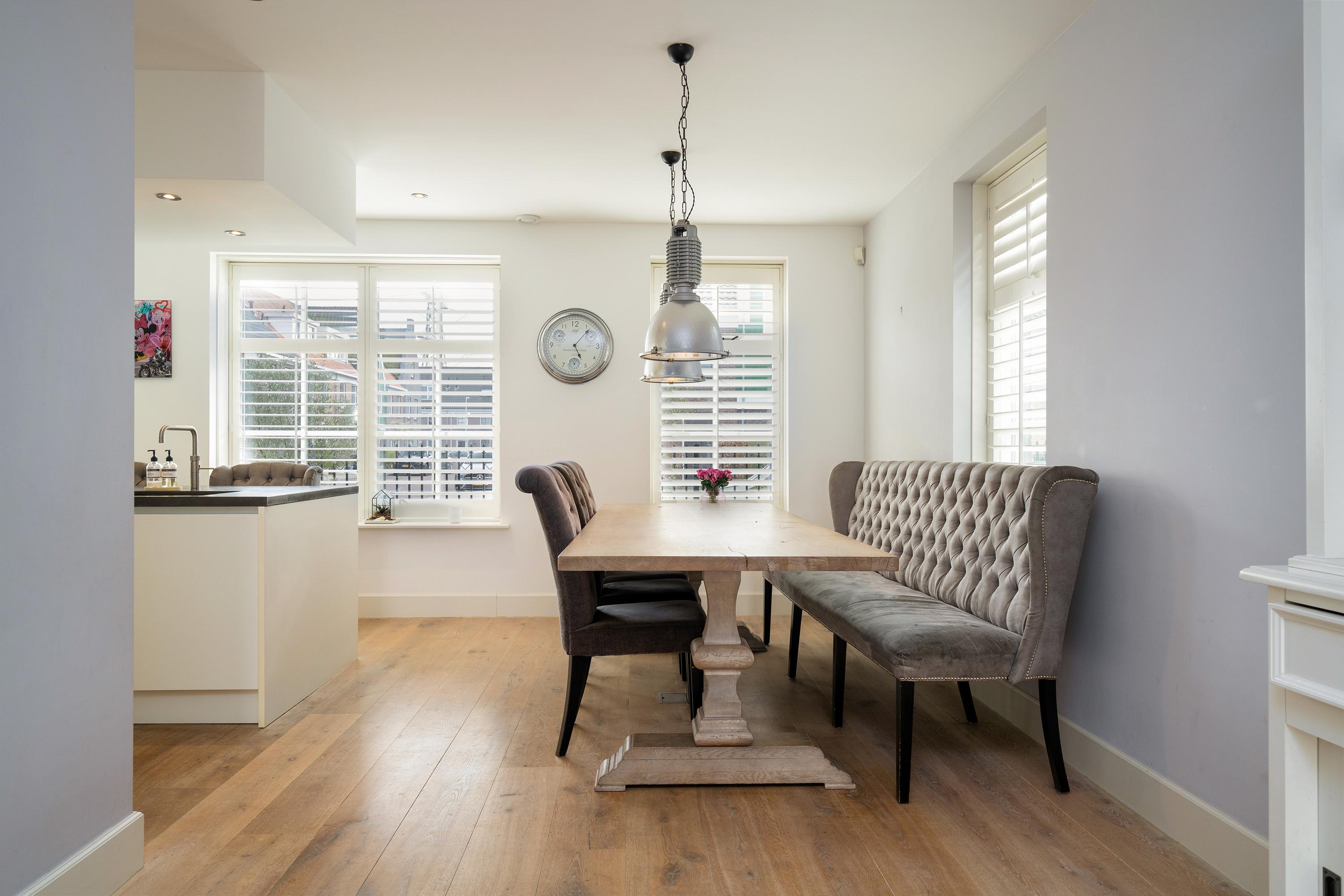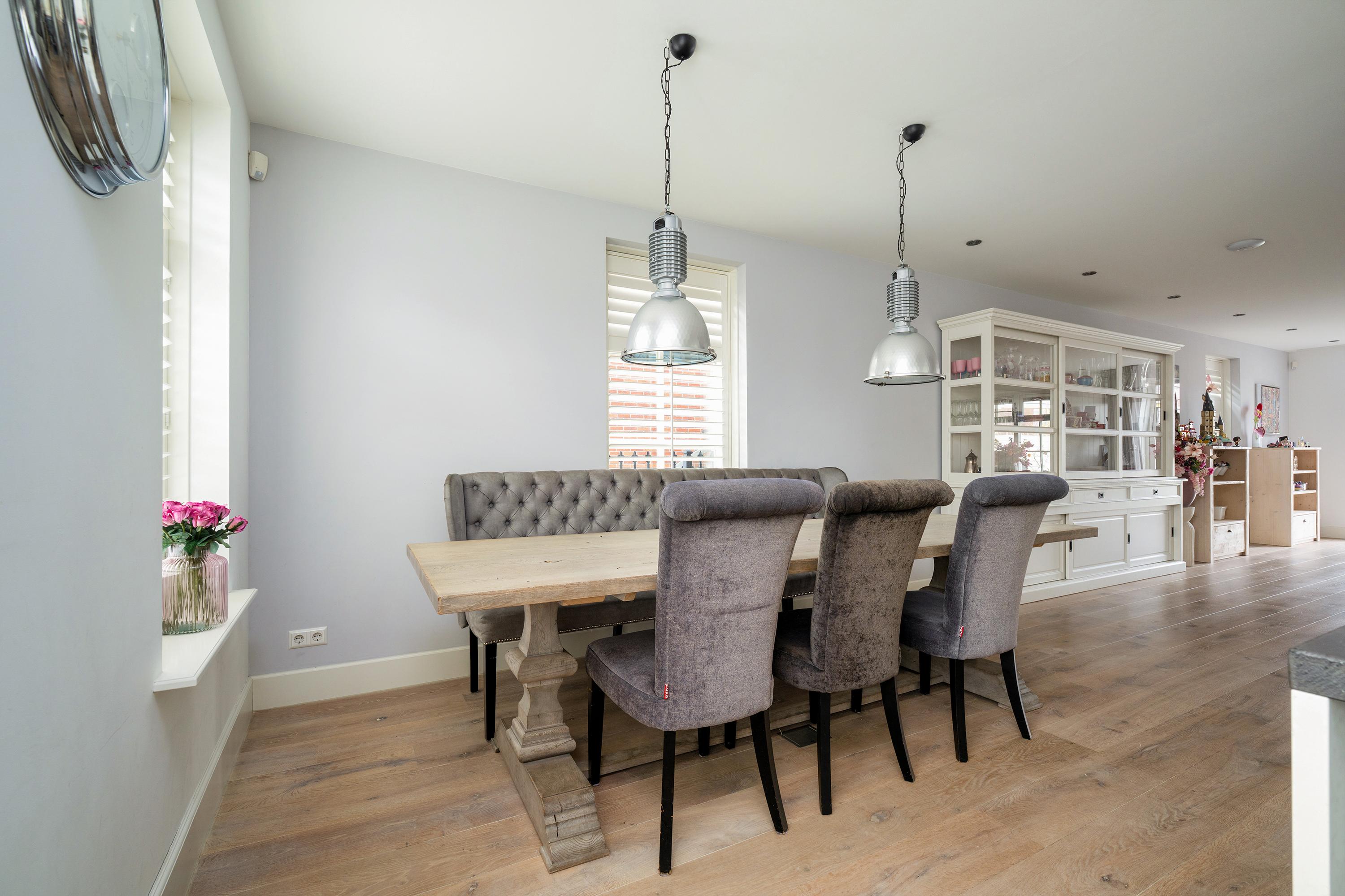 This richly detailed townhouse (2016) stands out with its high gutters, masonry pilasters, French balcony, and characteristic truncated hipped roof. Also striking is the space and pleasant layout on all floors, including 5 bedrooms and 2 bathrooms. Ideal for living with a (larger) family. This is also reflected on the ground floor in the generously sized kitchen-diner at the front of the house, featuring a large sink/cooking island and a wall with built-in appliances.