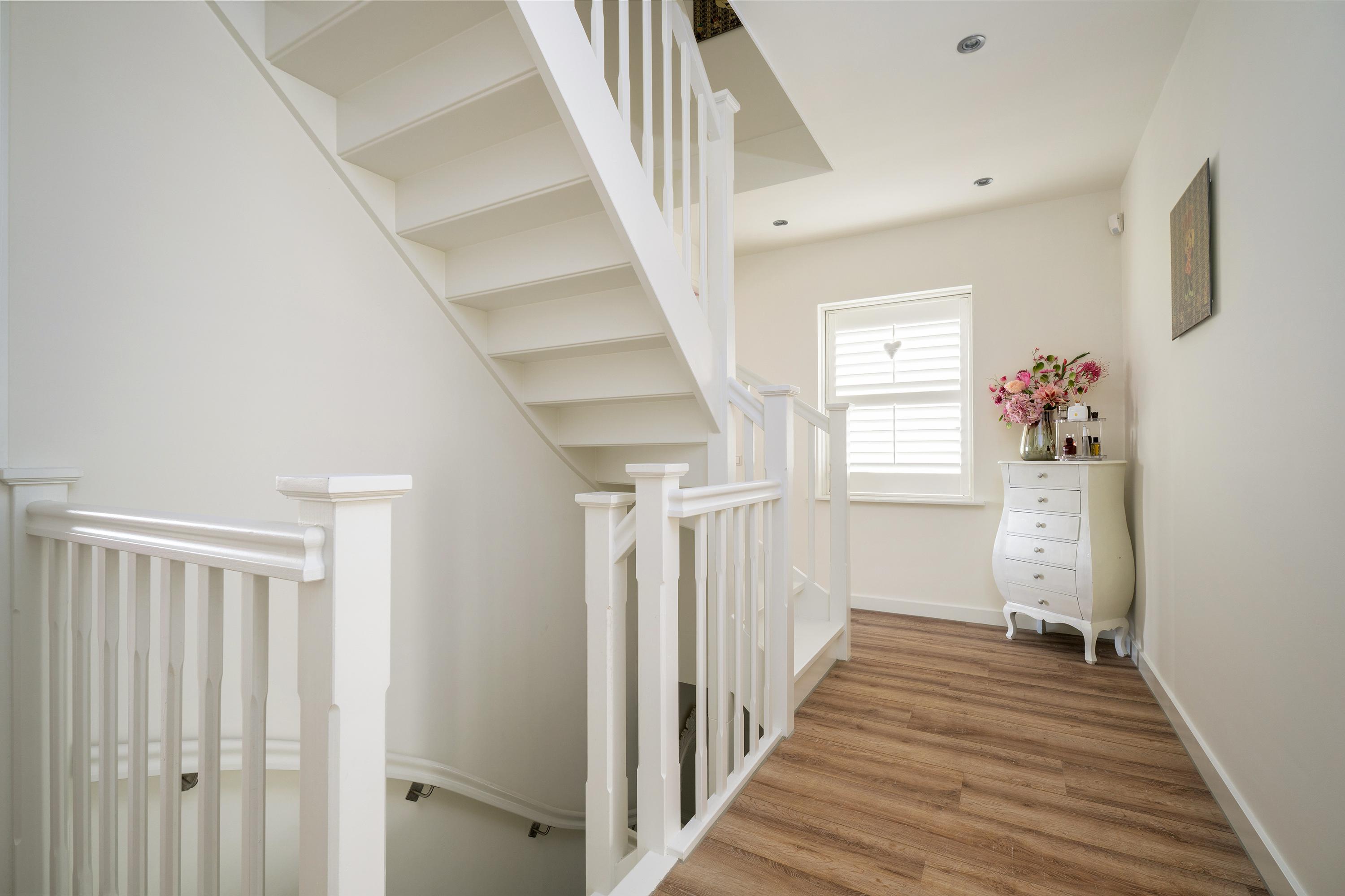 The landing provides access to three spacious bedrooms and the bathroom. Two bedrooms are located at the rear and one large bedroom at the front.