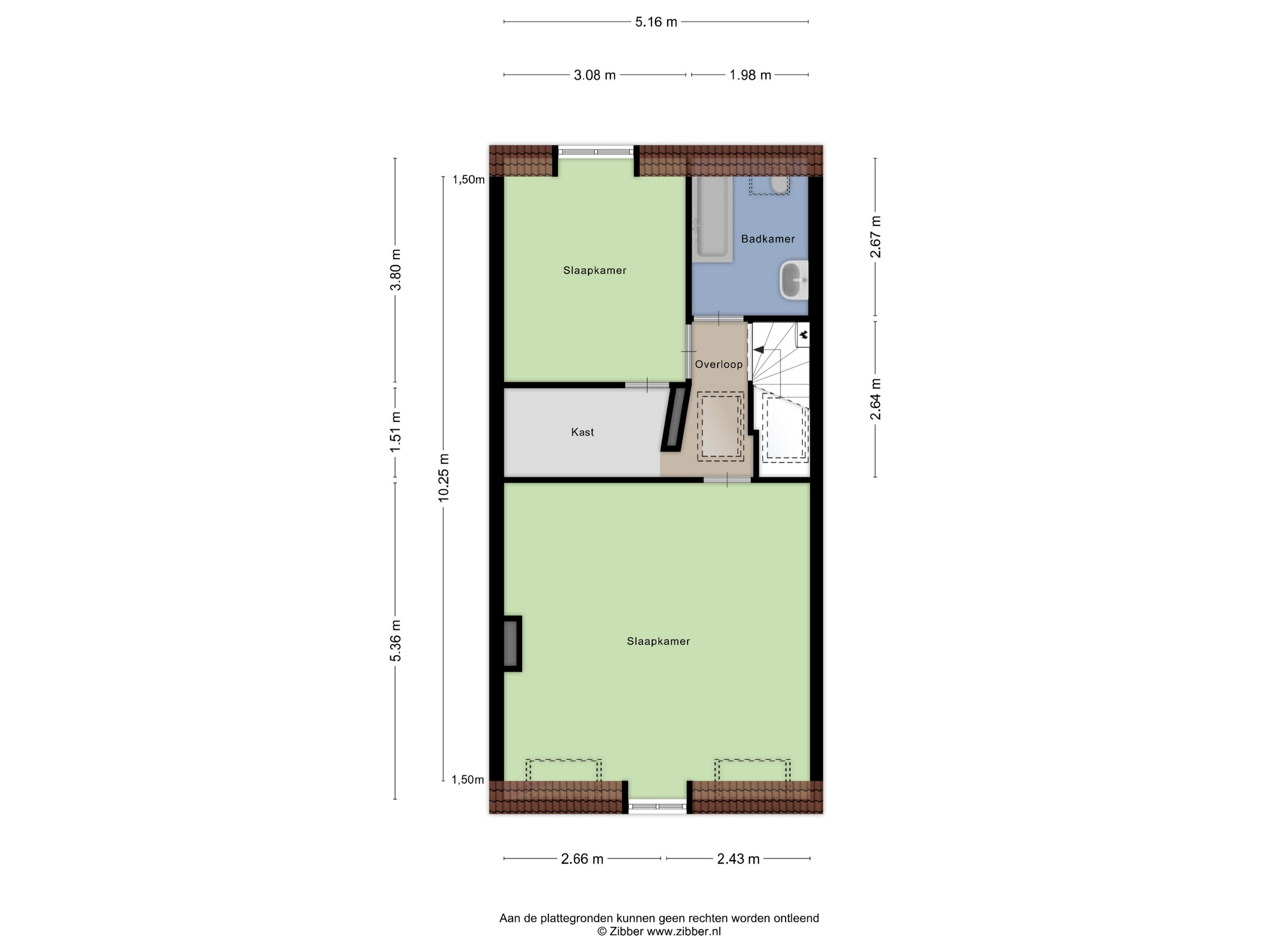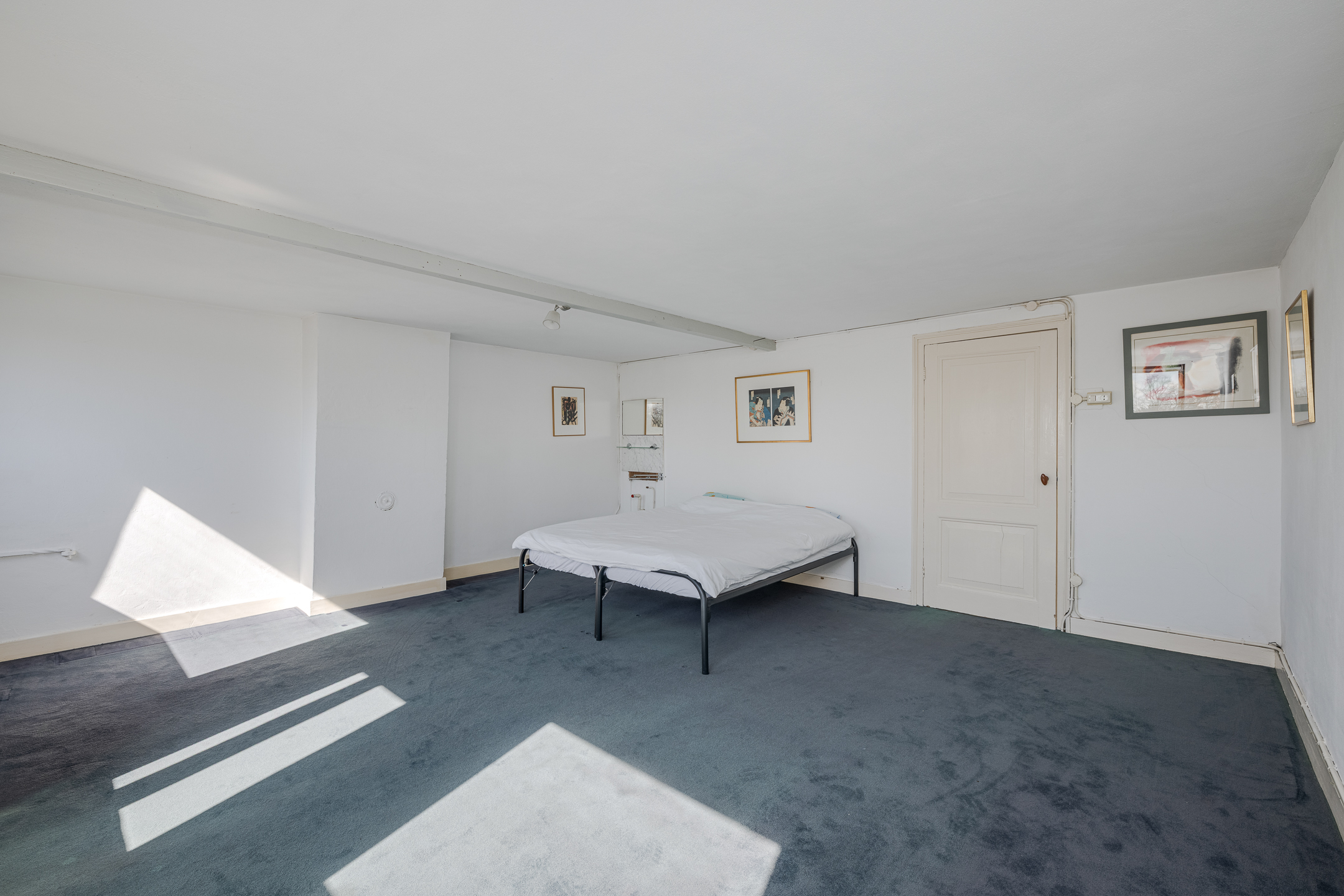Landing with stairs to the 3rd floor. Bedroom at the front over the entire width with a view of the park and ensuite closet. At the rear are a second bedroom and bathroom with shower, bath and toilet.
