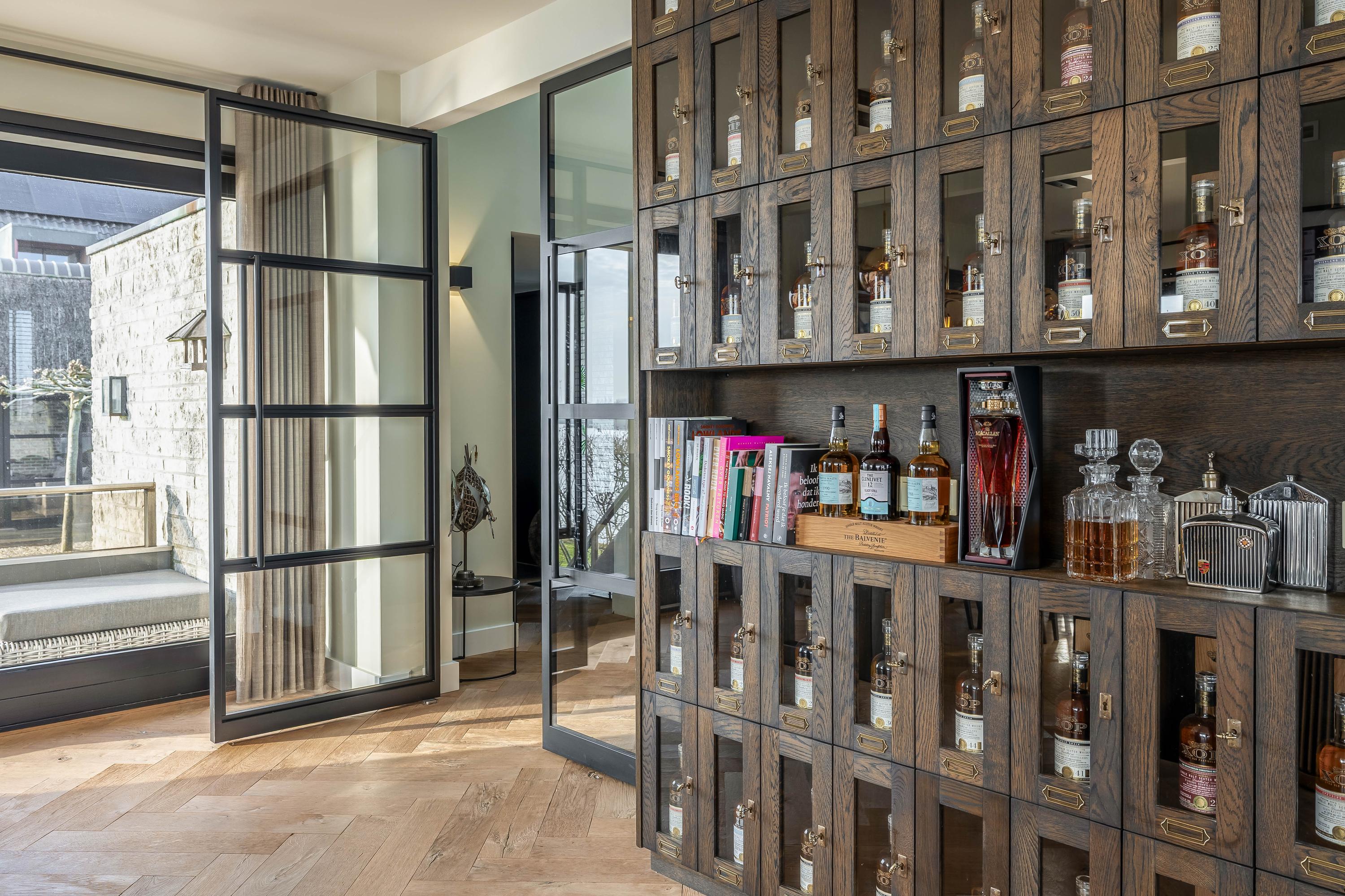 The garden surrounding the villa has been carefully landscaped and offers multiple places to enjoy outdoor living. An absolute highlight is the new outdoor lounge with bar and open fireplace. Here you can sit sheltered and in a cozy atmosphere, even when the evenings grow longer and temperatures drop. This is the perfect place for long dinners, drinks with friends and relaxing moments with a view of the Lek.