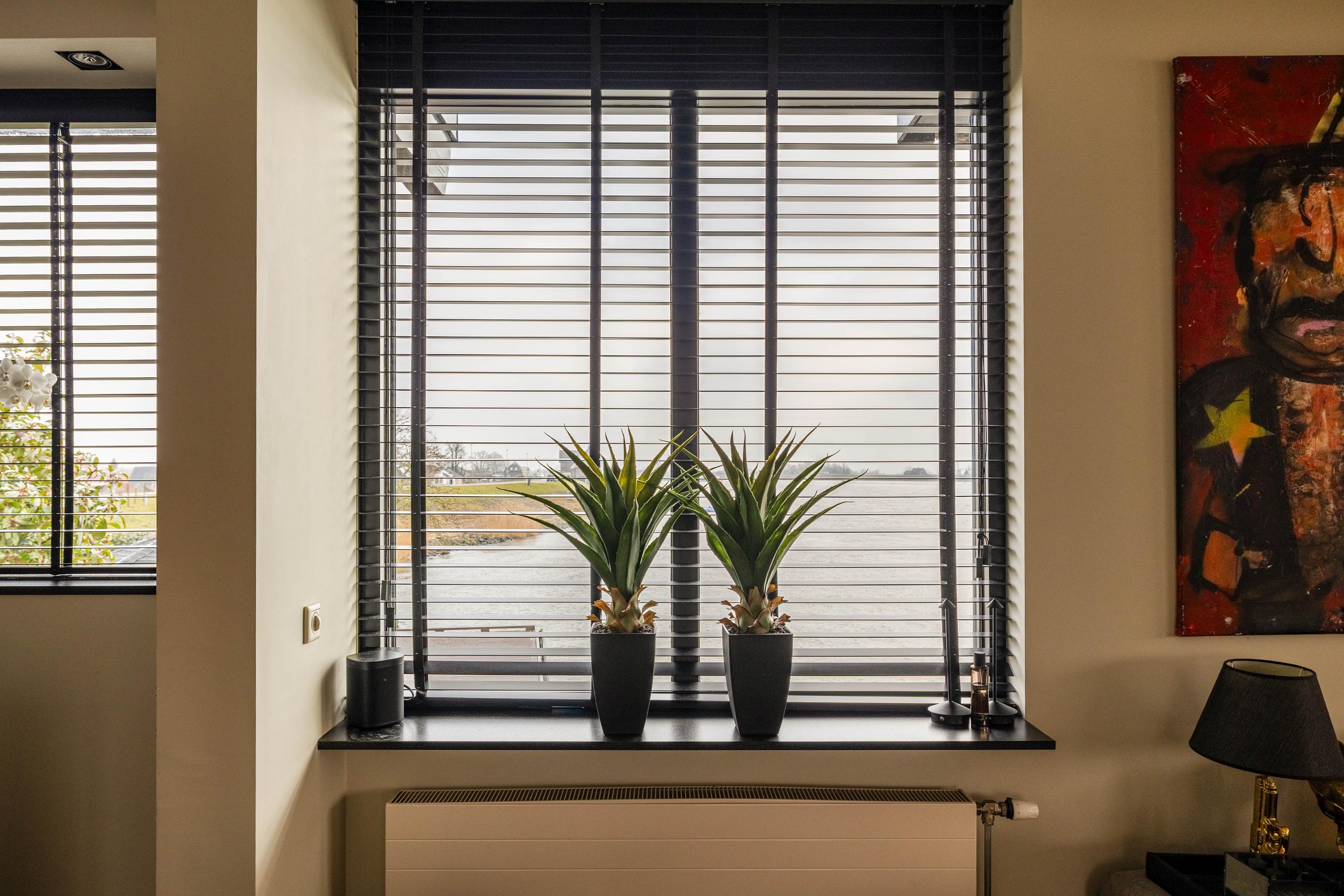 The living floor is spacious and immediately feels welcoming. Large windows provide plenty of natural light and make the view an integral part of the interior. The living room offers ample space for multiple seating areas, with the water always taking center stage. Whether you enjoy the tranquility during the day or watch the sun slowly set behind the dike in the evening, this home offers a different backdrop every day.