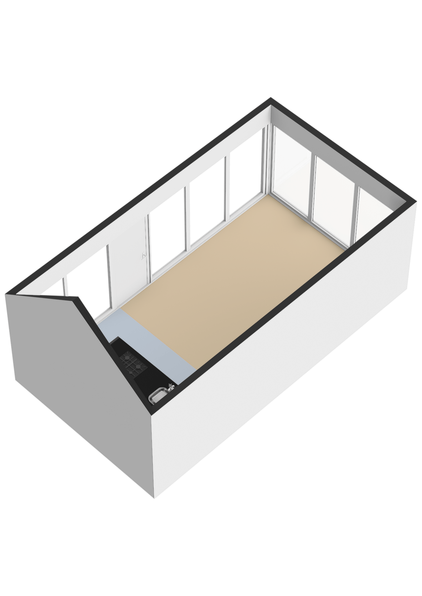 Adjacent to the kitchen and living area is the terrace, where indoor and outdoor spaces flow seamlessly into one another. On sunny days, you open the doors and the terrace becomes an extension of the living space.
