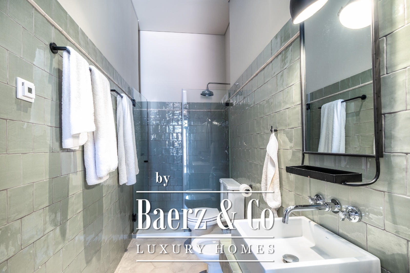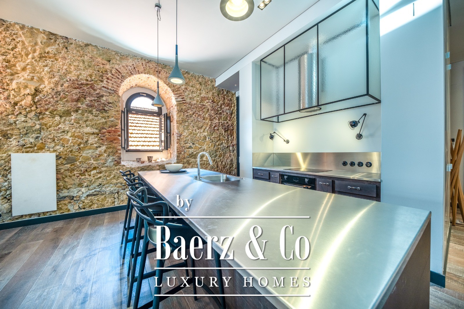 Located on a quiet cul-de-sac in Cais do Sodré, one of Lisbon’s most vibrant and historic neighborhoods, this 173 m² two-bedroom apartment offers a loft-style design with a distinct contemporary touch. Set on the second floor of a 19th-century building with elevator access, it underwent a full renovation in 2019 with meticulous attention to detail and high-quality materials.The generous living area impresses with 3.7 m high ceilings, a striking 14 m exposed stone wall, and large arched windows that fill the space with natural light thanks to its south and east orientation. The kitchen is seamlessly integrated with the living room, combining design and functionality with stainless steel countertops, oak cabinetry, and statement lighting.The living experience extends
