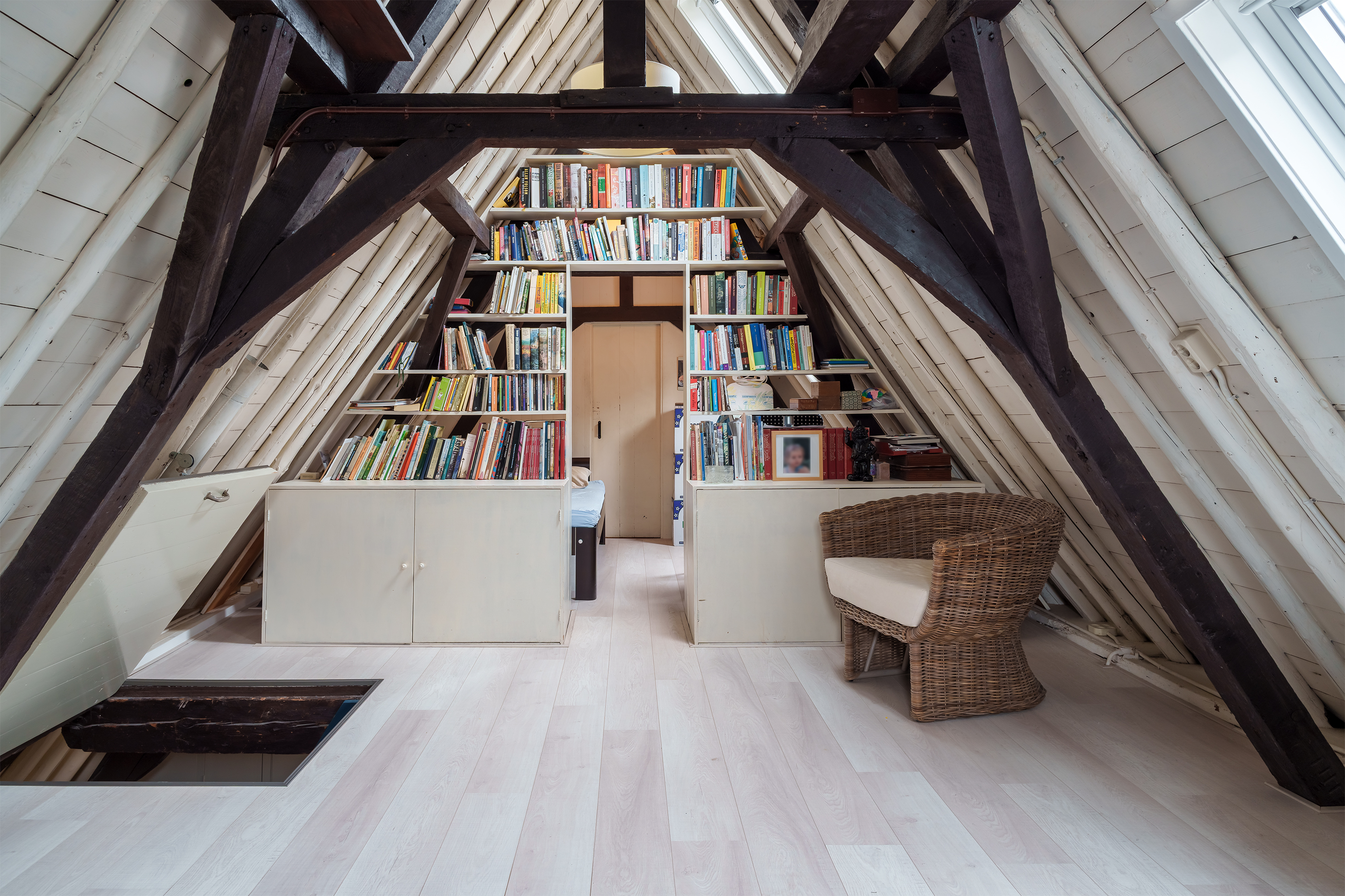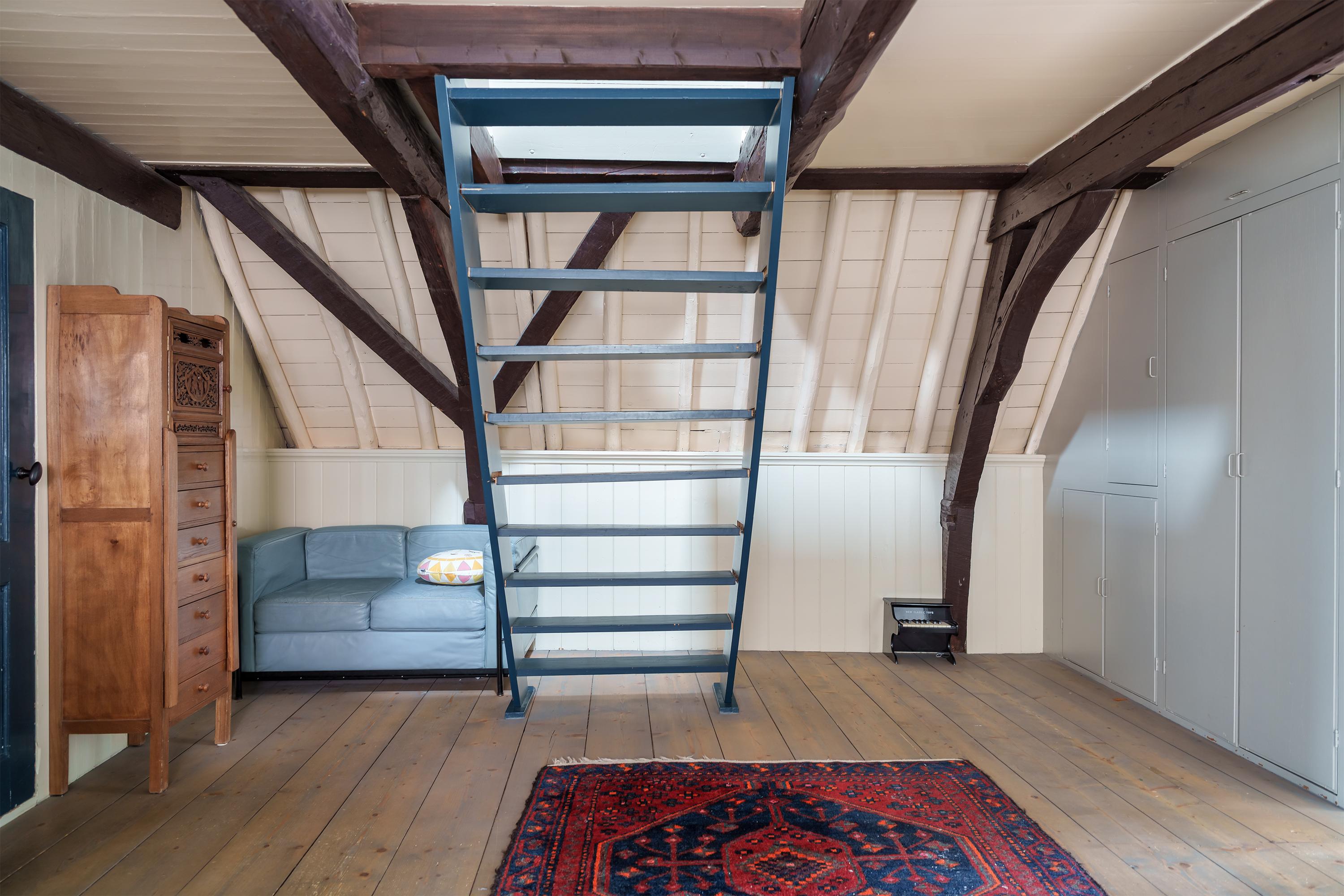 The characteristic beam construction is also clearly visible on this floor and underlines the historic character of the house. At the front of the house are two comfortable bedrooms, both with a view of the characteristic Dorpsstraat. Both have large windows and a skylight, allowing plenty of pleasant daylight to enter.