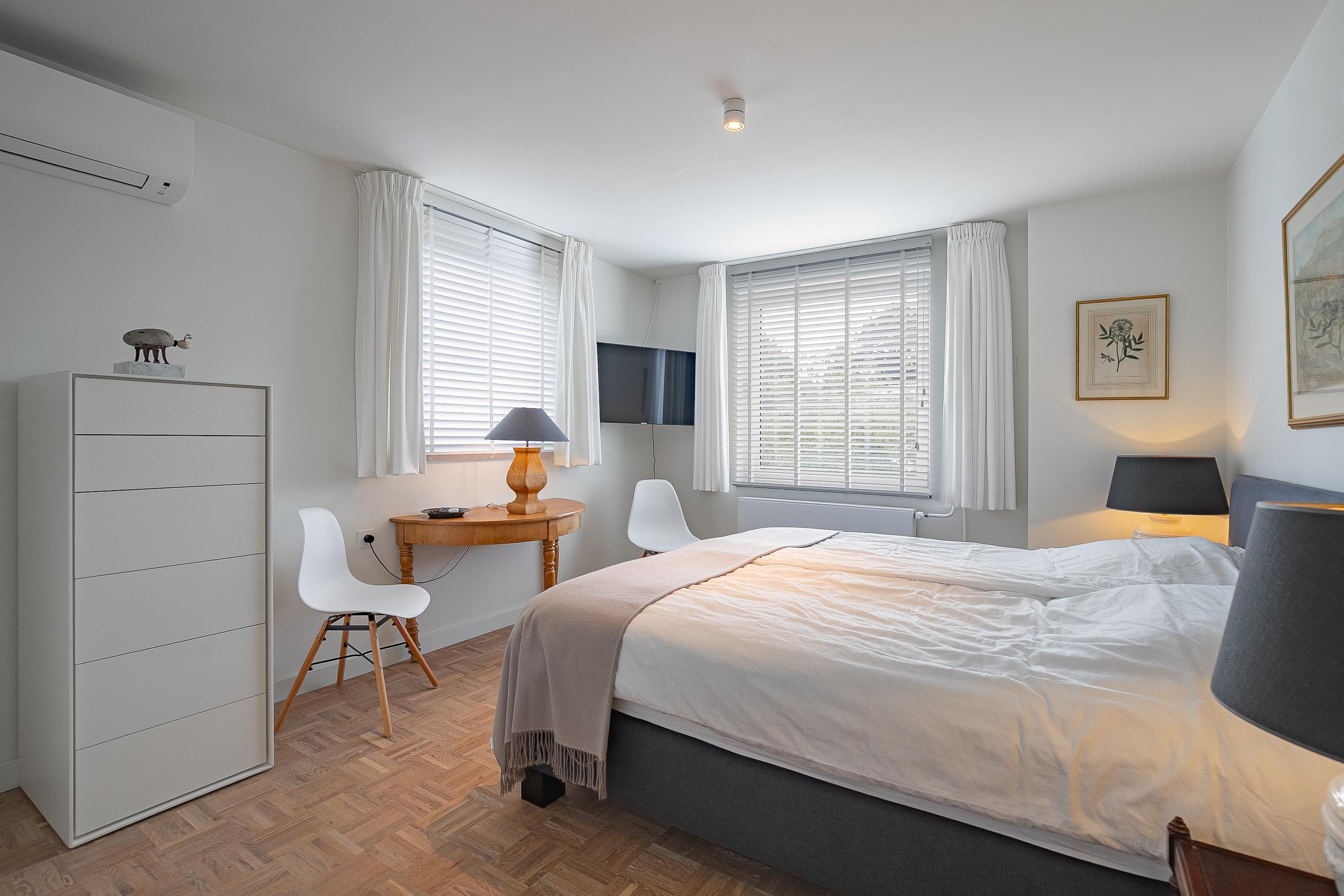 Upstairs, four bedrooms are complemented by bespoke cupboards from Slangen Interieurbouw and a mosaic parquet finish. The bathroom features both walk-in shower and bathtub, mechanical ventilation, and underfloor heating. The master suite benefits from air conditioning; storage solutions abound with a generous basement—hosting a 33m² garage and utility rooms—and attic storage above.