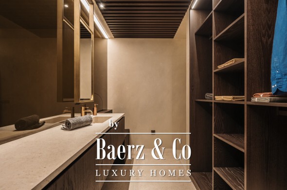 A cosy main living room boasts an integrated fireplace. Chic wood panels and exposed brick offer up an immaculate, healthy ambiance in the lounge. Another fireplace divides a magnificent Master bedroom and a luxurious bathroom, both with wooden floors and feature walls. Imagine waking up to awe-inspiring sunrises, savouring the tranquillity of the surrounding nature of Monte Mayor, and witnessing sensational sunsets from the comfort of your own home. In a sleek fully fitted kitchen and dining area space, modern accents steal the show. Cooking will be an art and fun in all 4 inspiring kitchens (of which one for a personal chef) equipped with superb Gaggenau appliances including gas, induction, teppanyaki and BBQ. A walk-in refrigerator of 6 m² provides fantastic access and ample storage space. Interior design by Signature Design concepts.