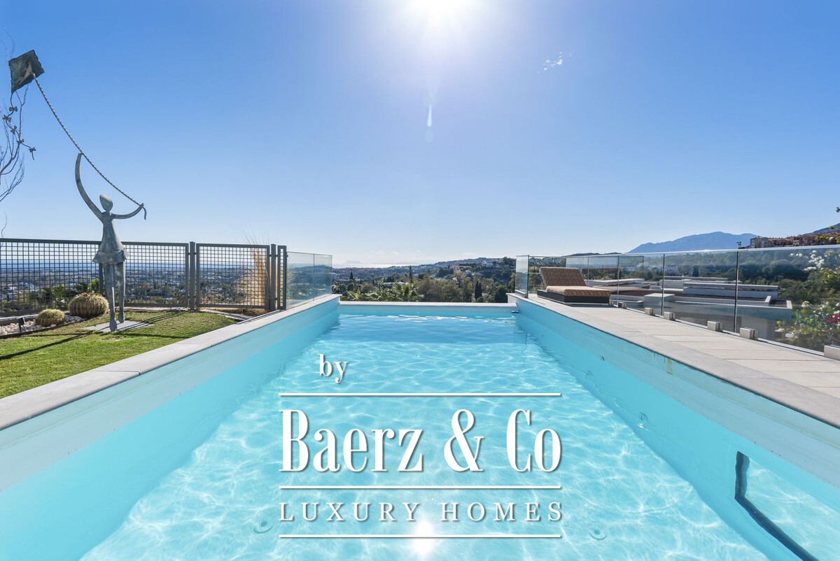 Villa Marbella anchors itself atop the heights of El Herrojo in La Quinta, distinguished by panoramic sea views and a sense of discreet refinement. This property, a villa Marbella, unfolds across 740 m² of living space on a 1,393 m² plot, bringing together contemporary architecture and an unhurried Mediterranean rhythm. Seven bedrooms and ten bathrooms are arranged within an open-plan layout, where soaring ceilings and expansive floor-to-ceiling windows create an atmosphere that is both luminous and poised. The interiors are considered, defined by sleek lines and an understated modernity that communicates lasting confidence rather than passing trends.