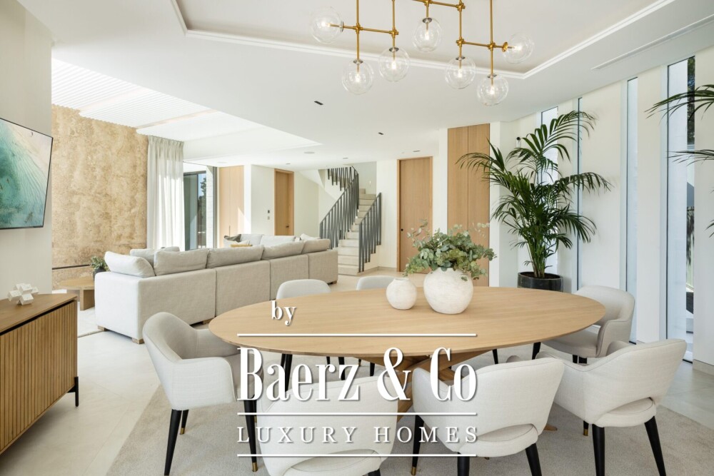 Villa Marbella Frontline Golf Las Brisas offers a rare synthesis of modern architecture and tranquil natural surroundings. Set on a 1,454 m² plot within the prestigious Las Brisas Golf Club in Nueva Andalucía, this newly completed villa spans 710 m² across three light-filled levels. The setting places you within easy reach of Marbella’s celebrated amenities, the luxury marina and dining of Puerto Banús, yet ensconced in privacy amid manicured landscapes.