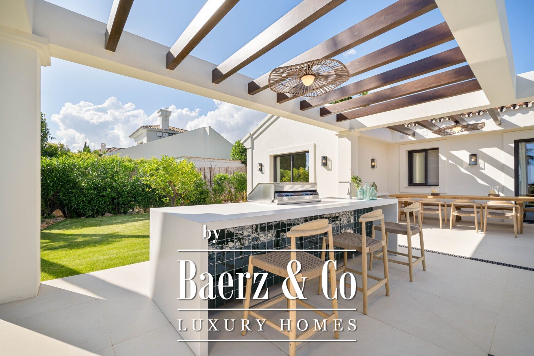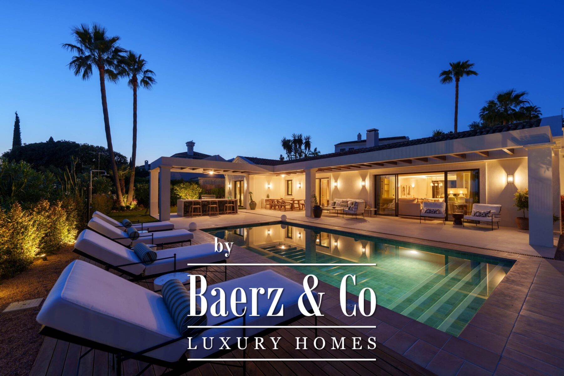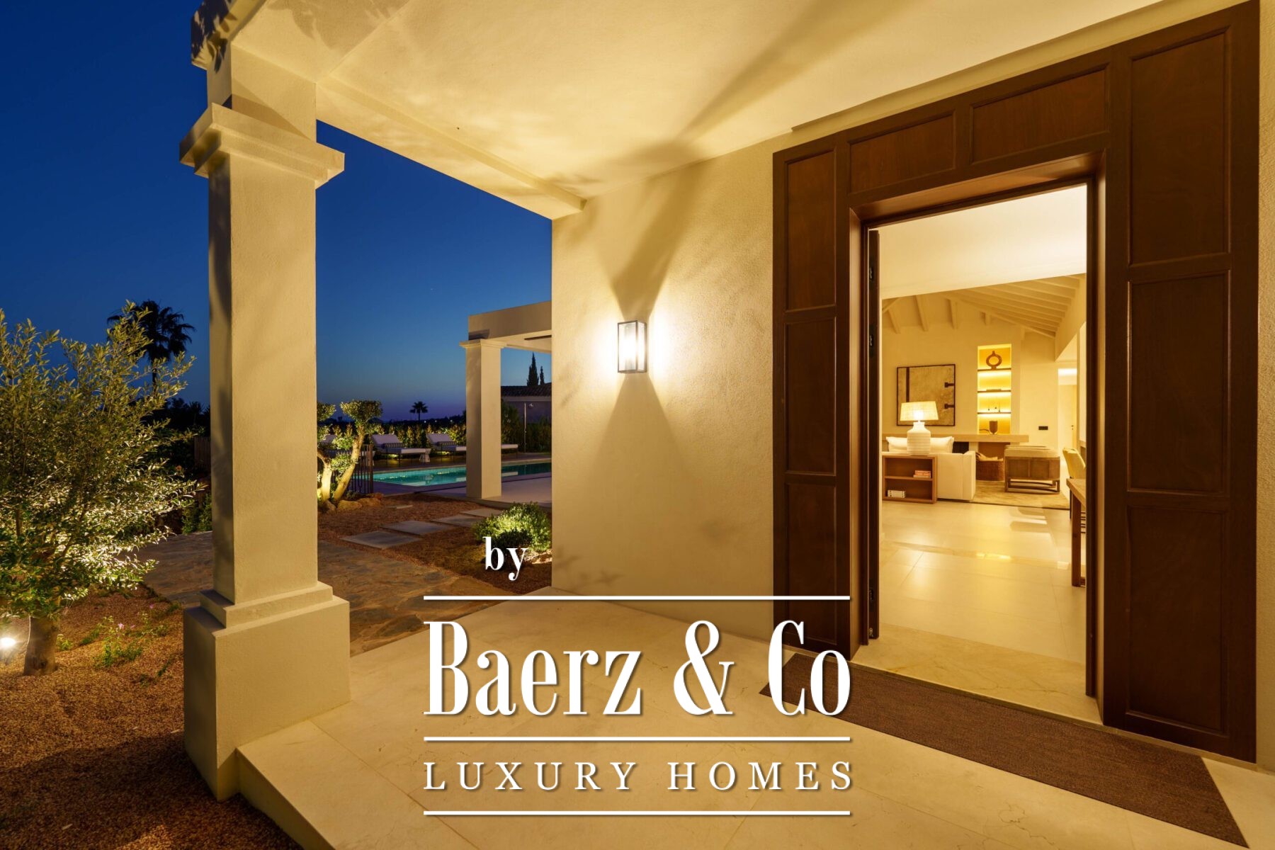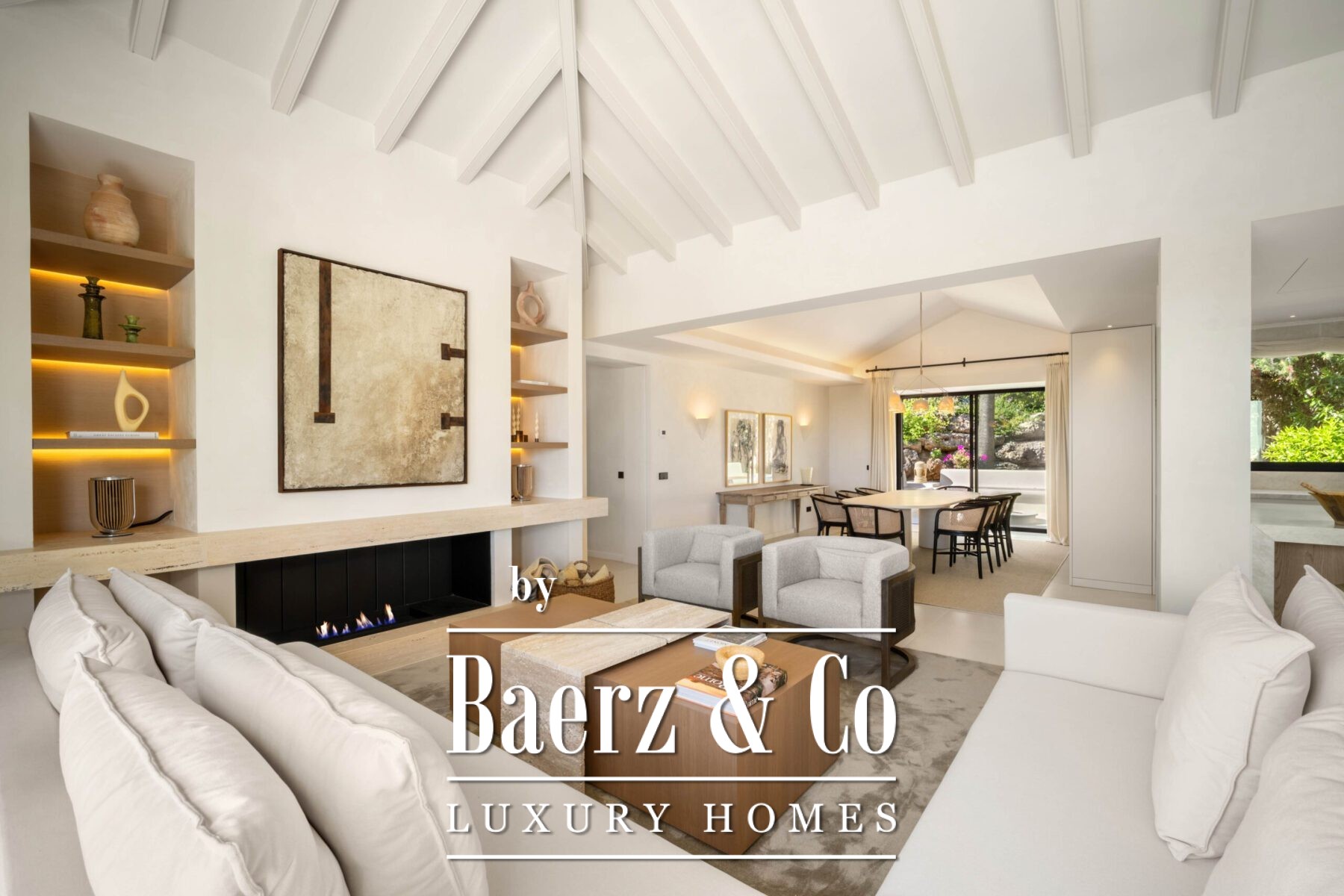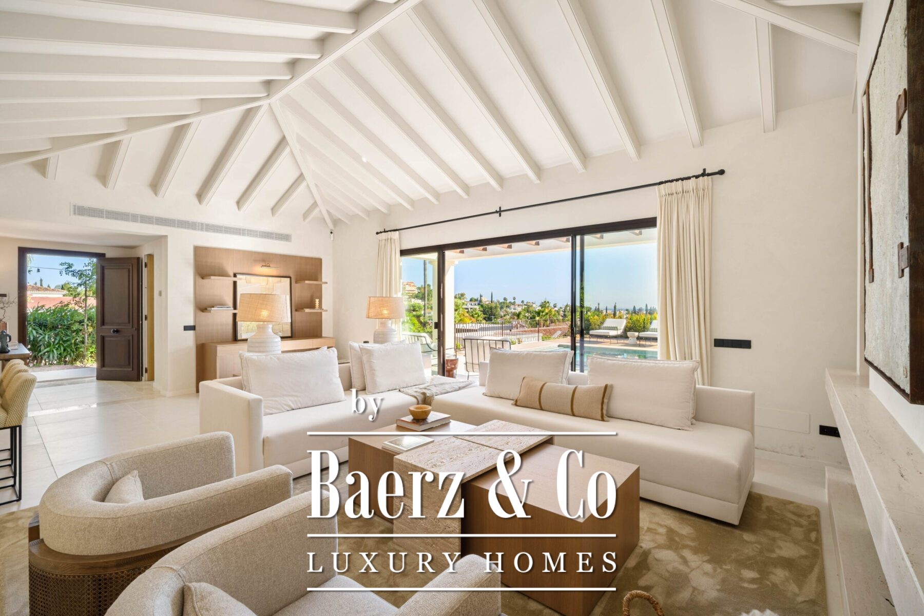 A beautifully reimagined single-level villa nestled in the heart of Nueva Andalucía, just minutes from the renowned Los Naranjos Golf Course. Designed and developed by known developers, this exquisite 4-bedroom home merges Mediterranean elegance with contemporary comforts. Set on a lush, elevated plot, the villa offers privacy, tranquillity, and breath-taking views across the valley to the sea, all while being moments away from Marbella’s best golf, dining, and beach experiences.