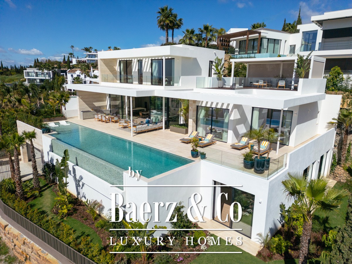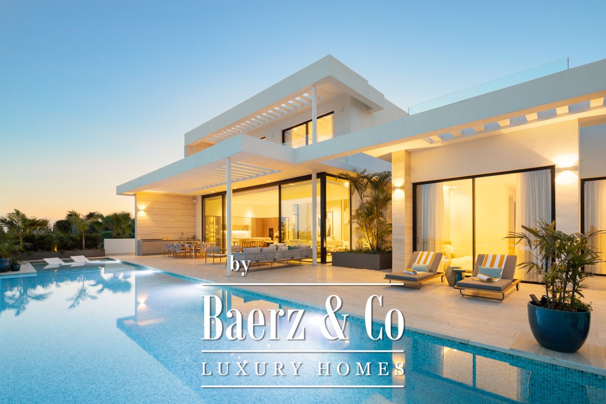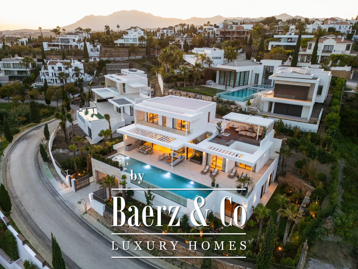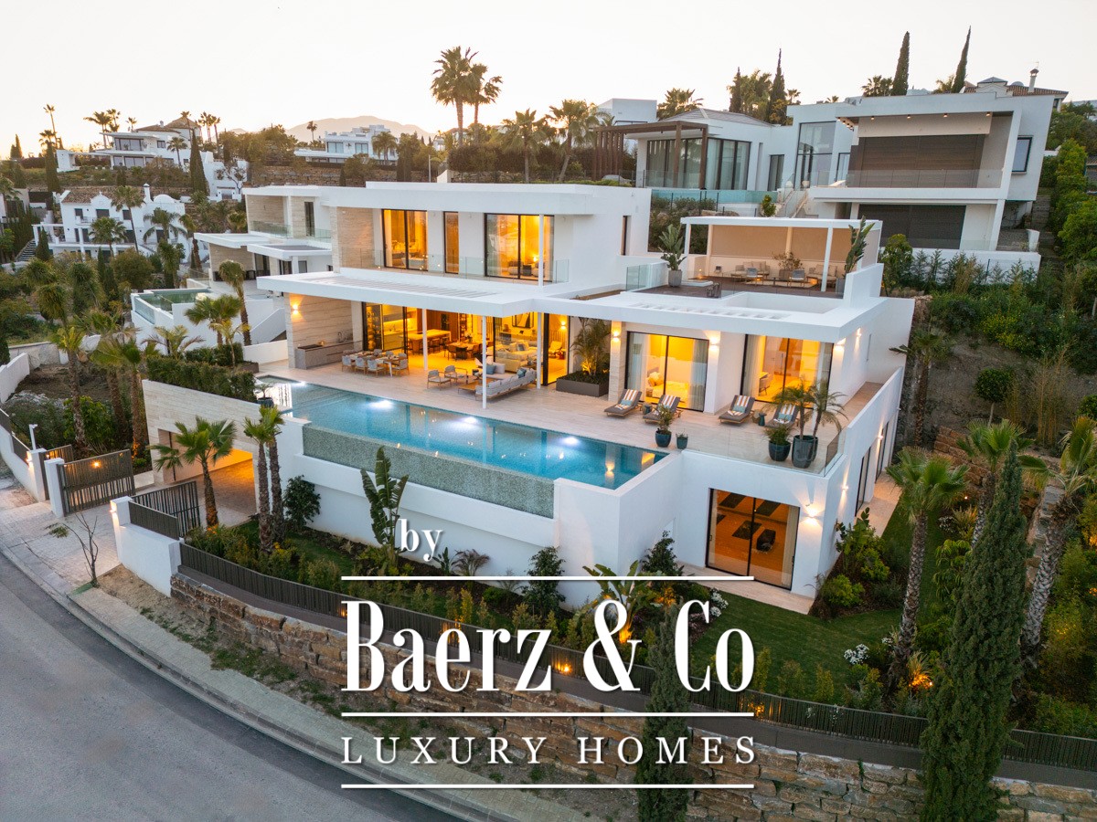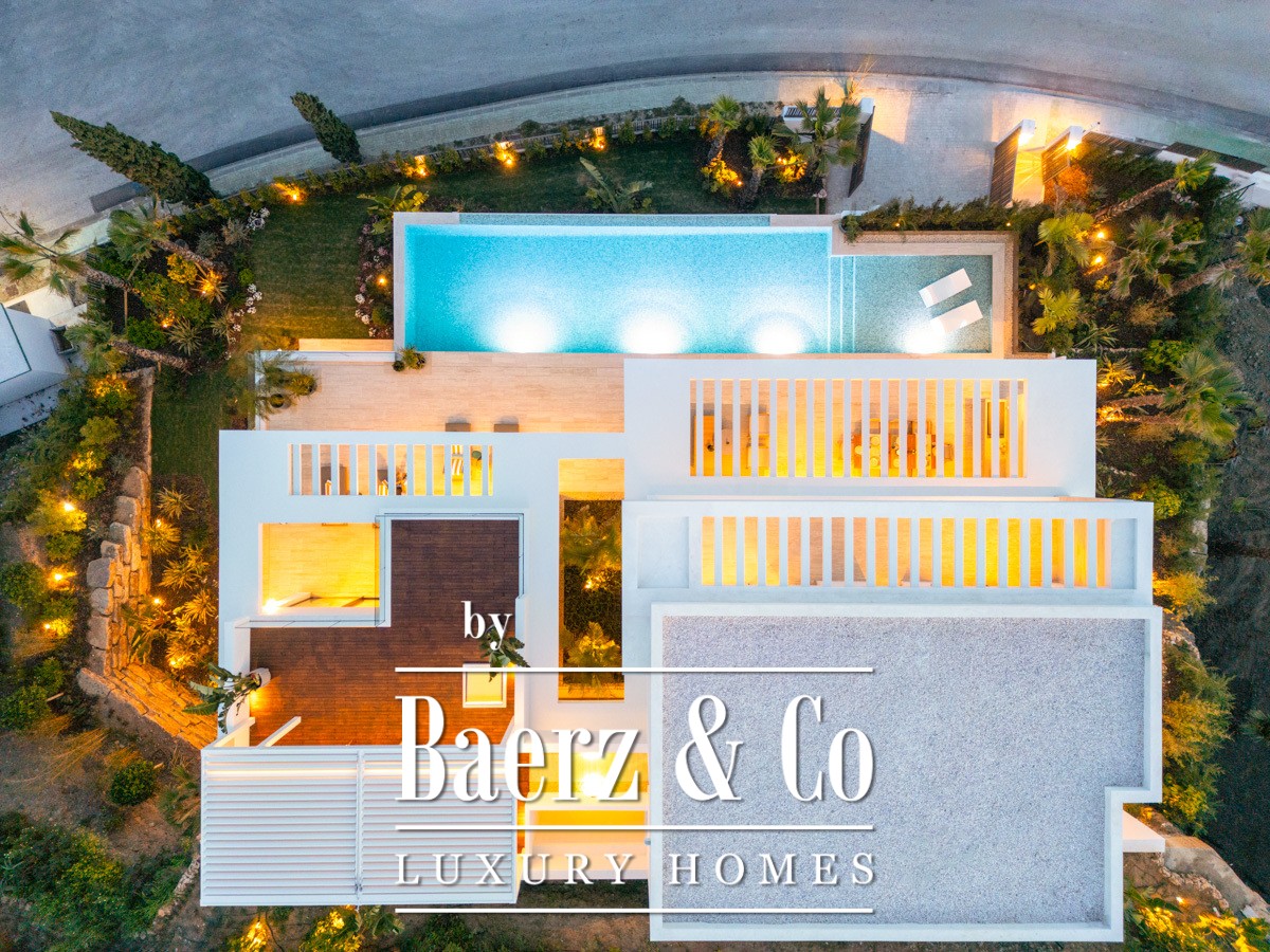 Introducing a brand-new modern villa located in the exclusive gated community of Los Flamingos, Benahavís. Set on an elevated plot, this home offers panoramic views and is part of a limited collection of four luxury properties. With its sleek geometric design and expansive terraces—partially covered for year-round enjoyment—this villa is built for stylish outdoor living. A striking zero-edge infinity pool adds to the home’s appeal, ideal for entertaining or relaxing under the sun.