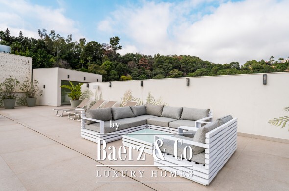 The main floor offers both flow and formality: a living salon, a 12-seat dining room, and a fully outfitted kitchen with a central island provide convivial zones for everyday life and entertaining. The seamless connection to terrace and lawns opens up an outdoor world shaped by a summer kitchen, al fresco dining, barbecue, and a private pool surrounded by curated gardens. Light traces each space through expansive floor-to-ceiling windows.