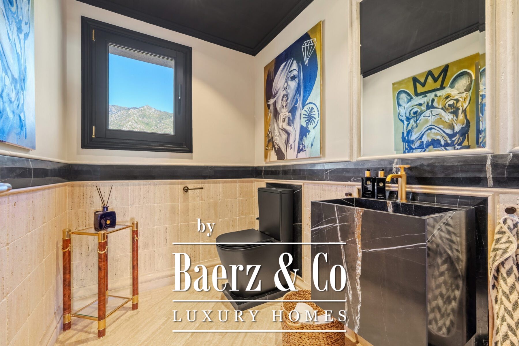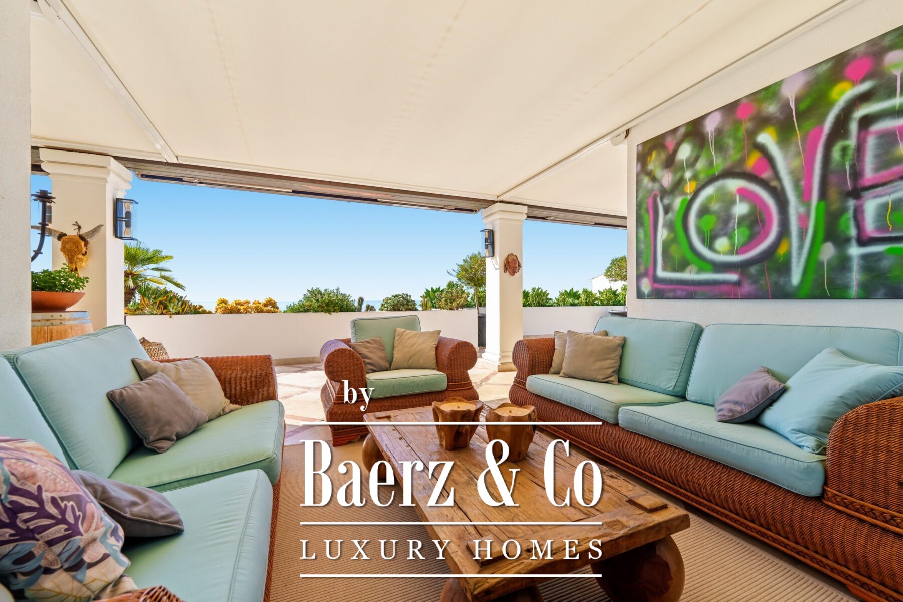 The home flows seamlessly onto generous terraces, ideal for outdoor living and entertaining while enjoying panoramic views of the Mediterranean Sea, Marbella’s coastline, and La Concha mountain. Multiple seating and dining areas allow you to embrace the Marbella lifestyle, whether lounging in the sun, hosting friends, or dining al fresco with a breath-taking backdrop.