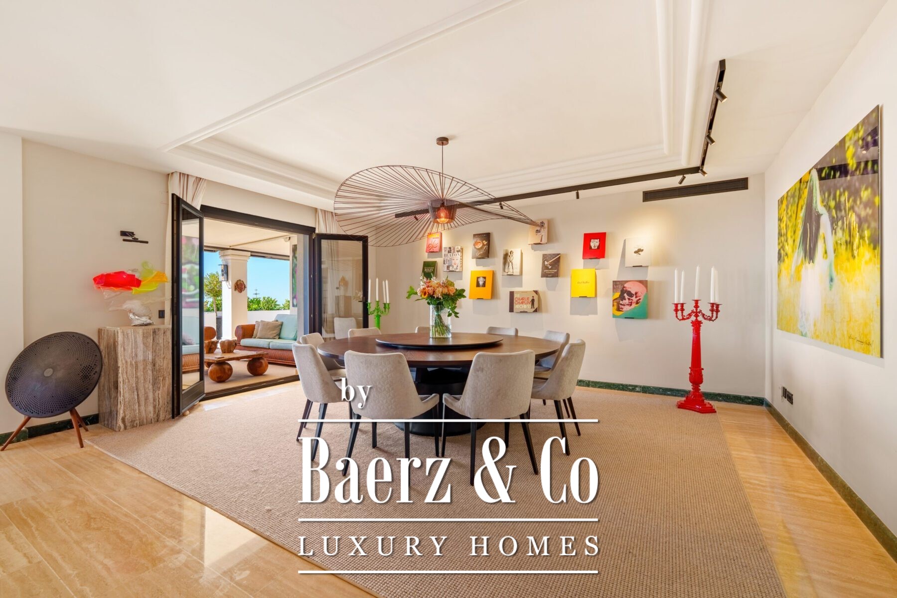 This stunning duplex penthouse is located in the prestigious Country Club, one of Marbella’s most exclusive gated communities on the Golden Mile. Combining elegance with modern design, the property offers expansive interiors filled with natural light, featuring spacious living and dining areas, a contemporary kitchen, and a private wine cellar. The refined décor and high-quality finishes create a perfect balance of comfort and sophistication.
