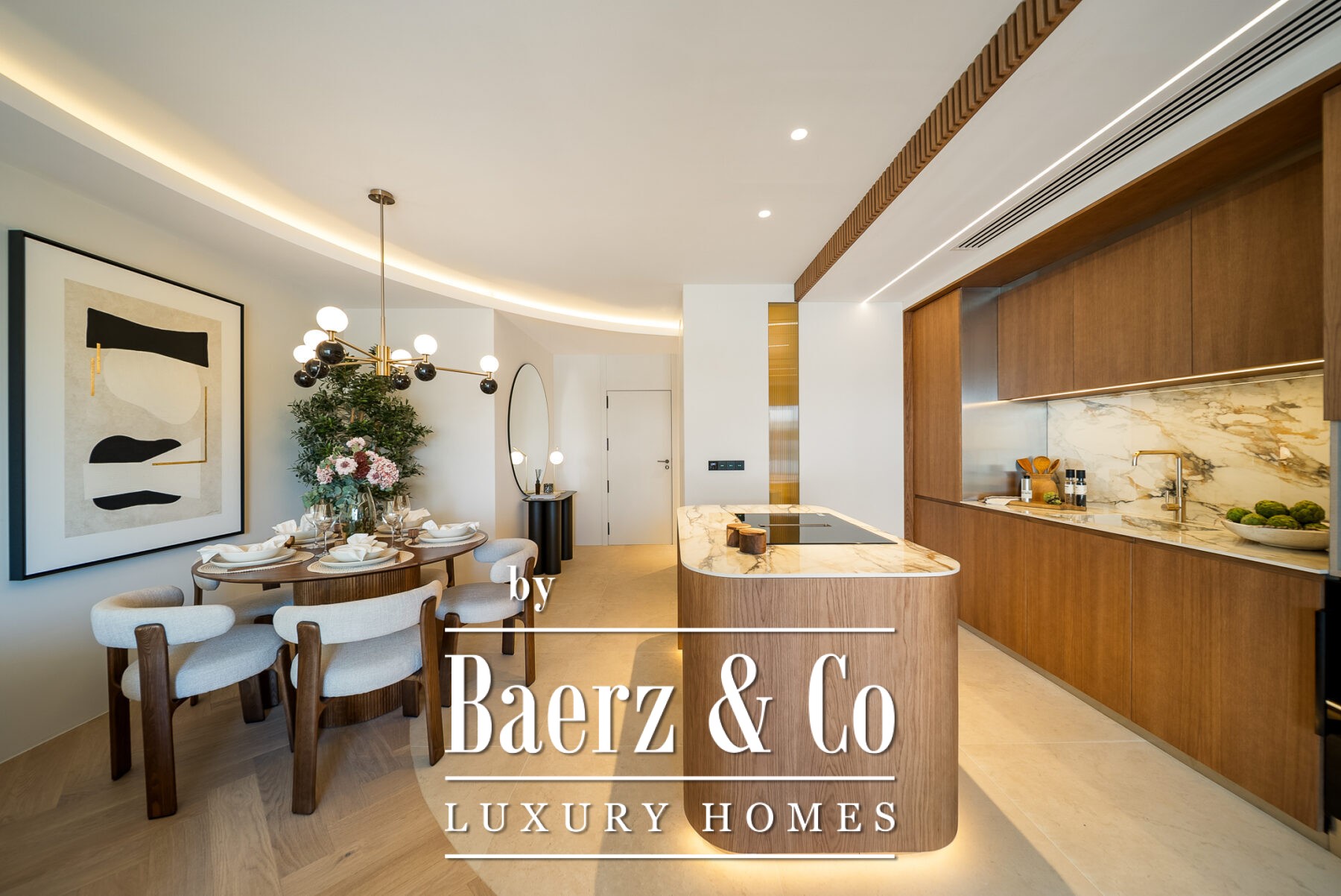 The architectural rhythm subtly honors the building’s iconic round forms, balancing Mediterranean character with current design clarity. Every detail, from underfloor heating to bespoke lighting, invites a sense of refined ease.