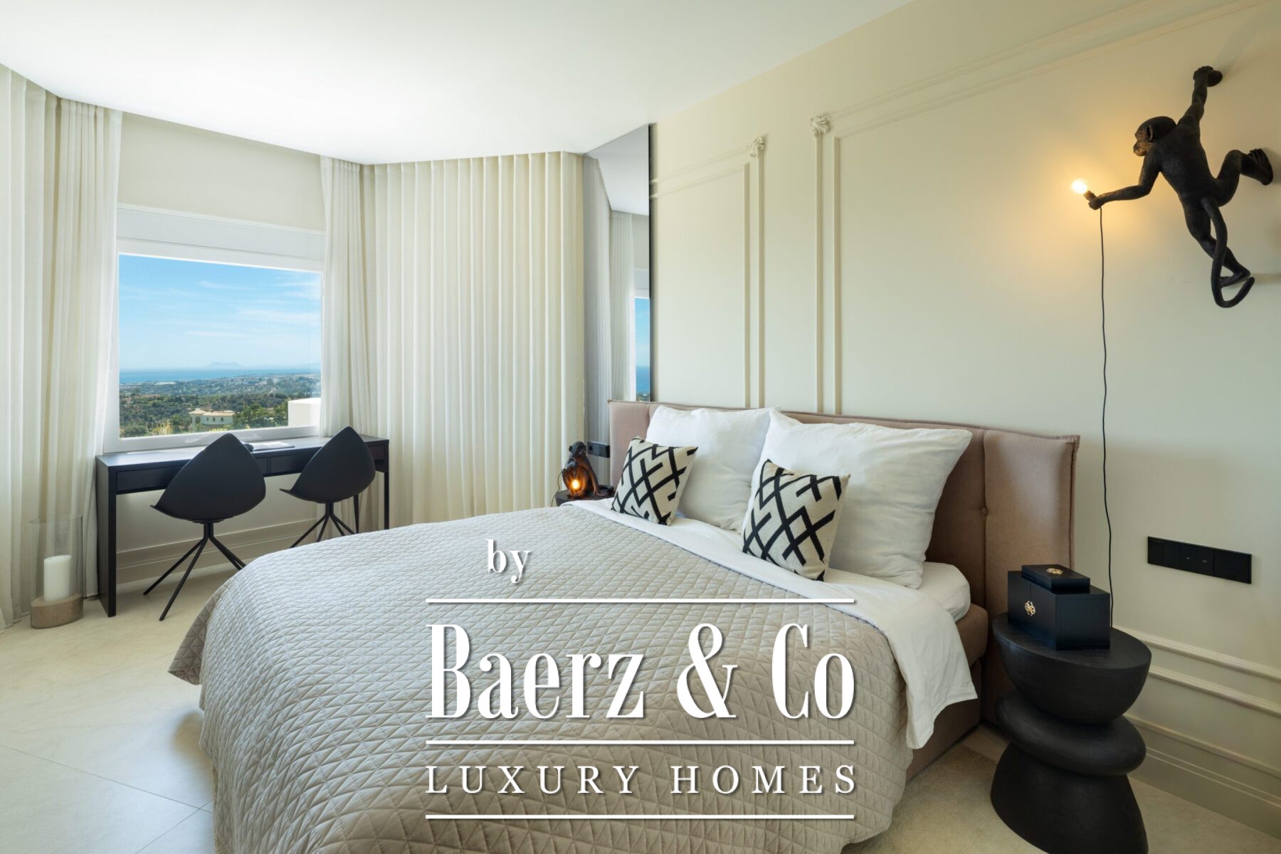 Terraces frame panoramic views of the Mediterranean and La Concha mountain, with sunlight illuminating both indoor and outdoor spaces from morning through evening. These outdoor areas, ideal for relaxation or entertaining, feature a private plunge pool, outdoor kitchenette, and BBQ, seamlessly extending the living experience in tune with the local climate.