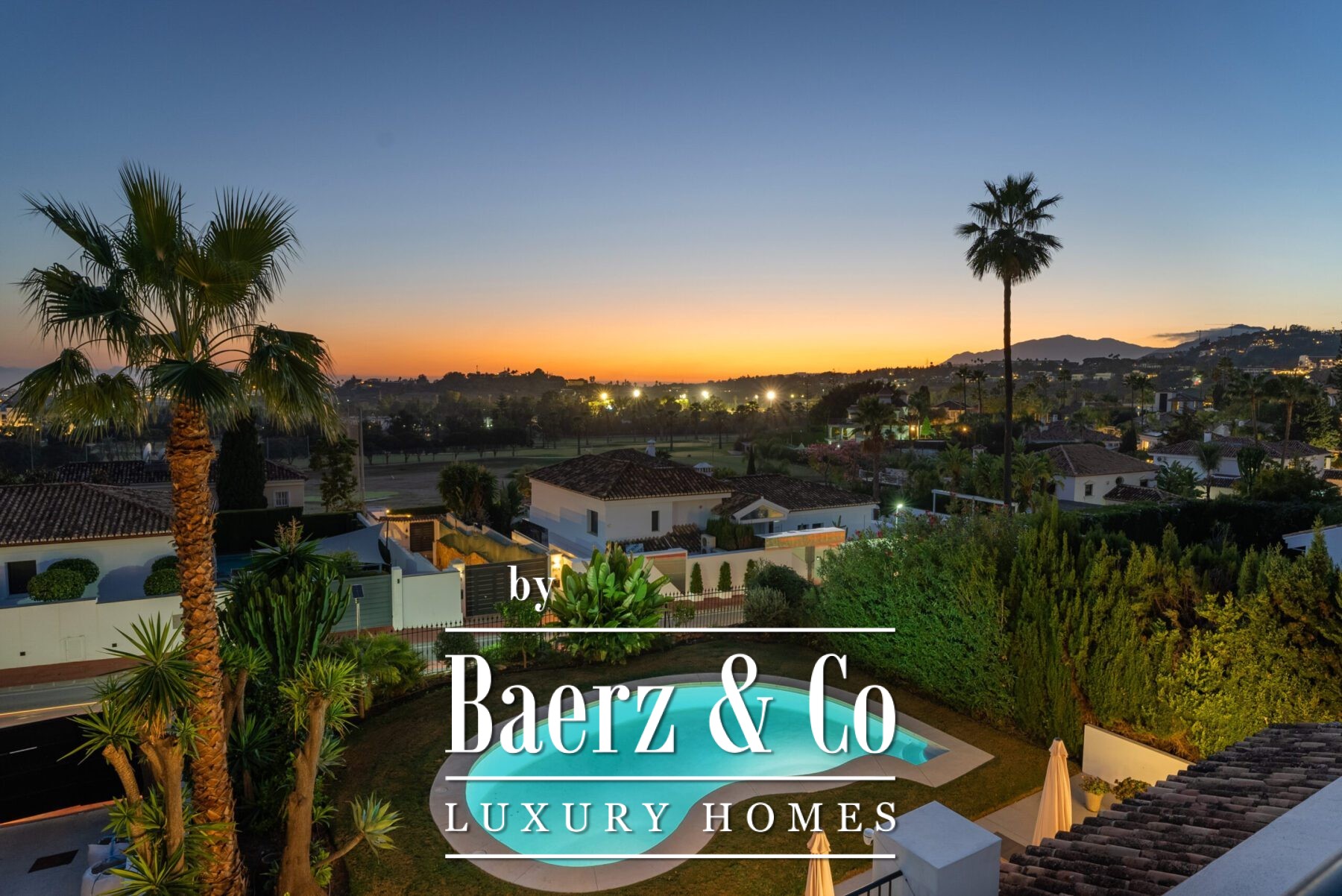 Scandinavian style villa Marbella is a study in modern elegance set within the heart of Nueva Andalucía. The residence is designed to offer a sense of spatial generosity, benefiting from an ideal southwest orientation, which bathes interiors in natural sunlight and frames panoramic views across the prestigious Golf Valley. Carefully curated gardens provide complete privacy, while the architectural lines evoke both warmth and restraint.