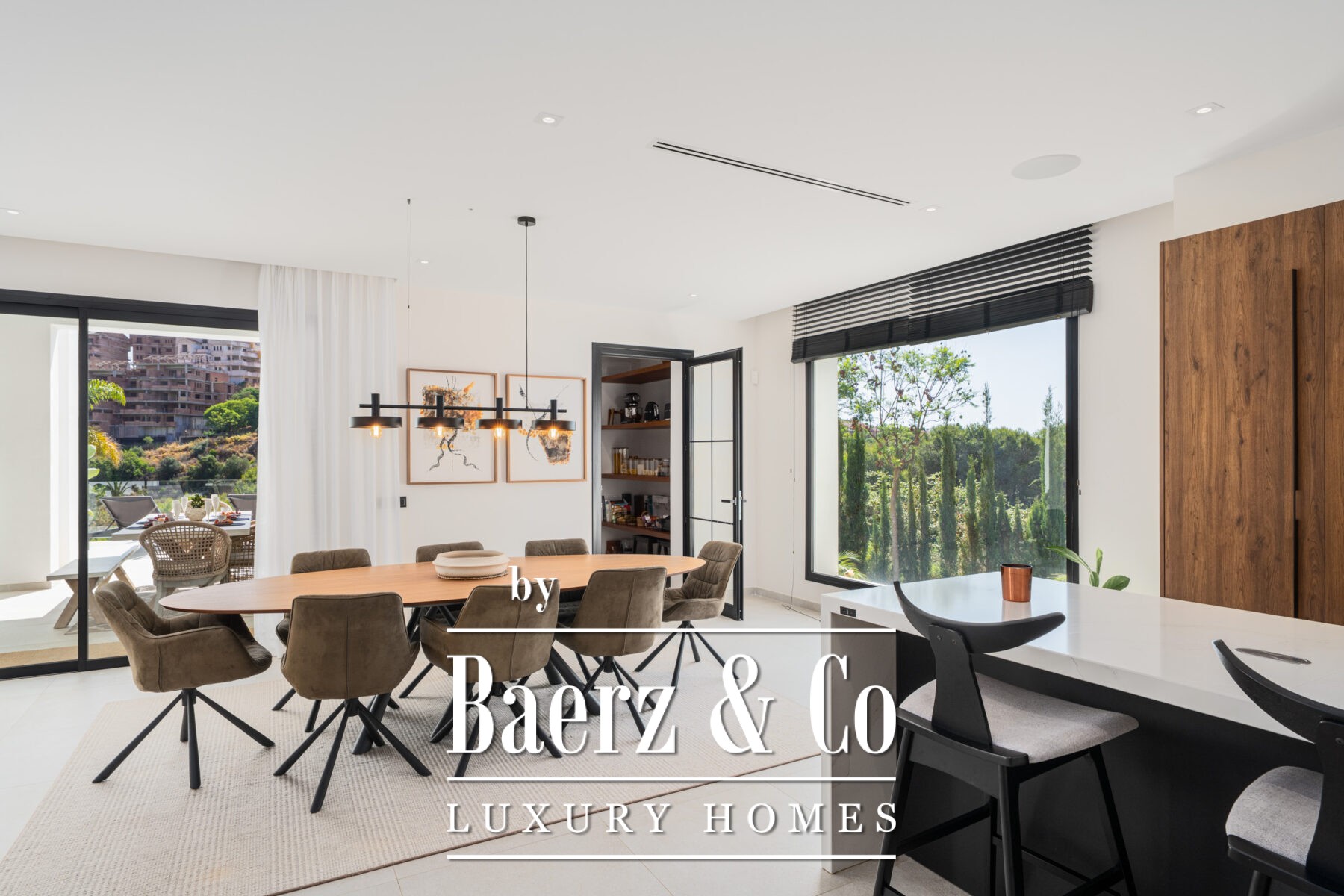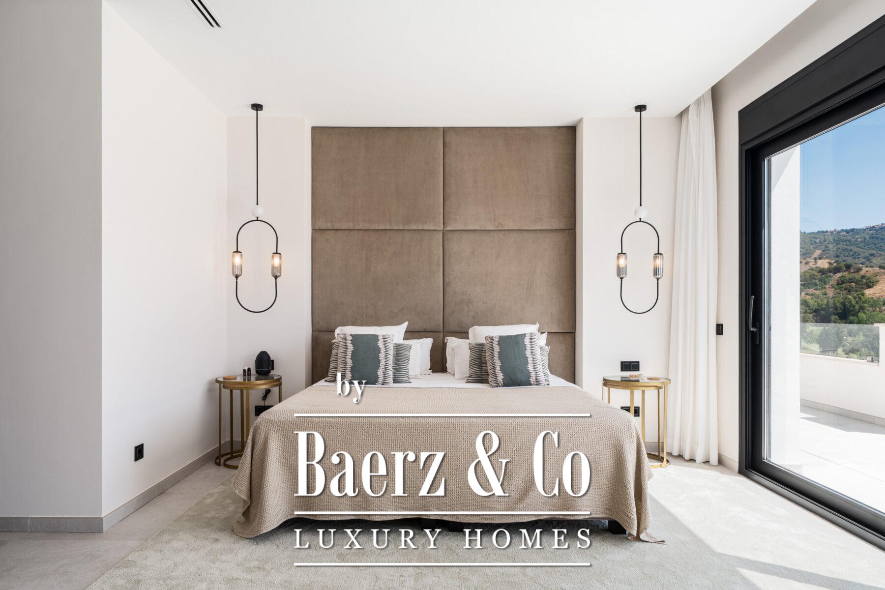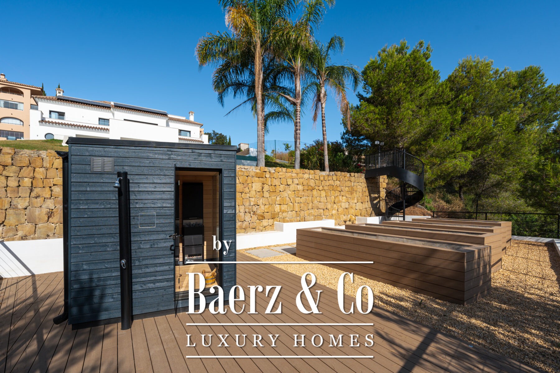 Frontline golf villa Marbella encapsulates the essence of elevated living within the renowned Golf urbanization of Elviria. Conceived in 2021 on a 1,743 square meter plot, this villa presents 902 square meters of constructed space, integrating 264 m² of expansive terraces that create an intelligent connection between interiors and the outdoors. Designed across three levels, accessible via a lift and generous staircase, five en-suite bedrooms provide both privacy and an effortless flow, with three suites conveniently positioned on a single floor.