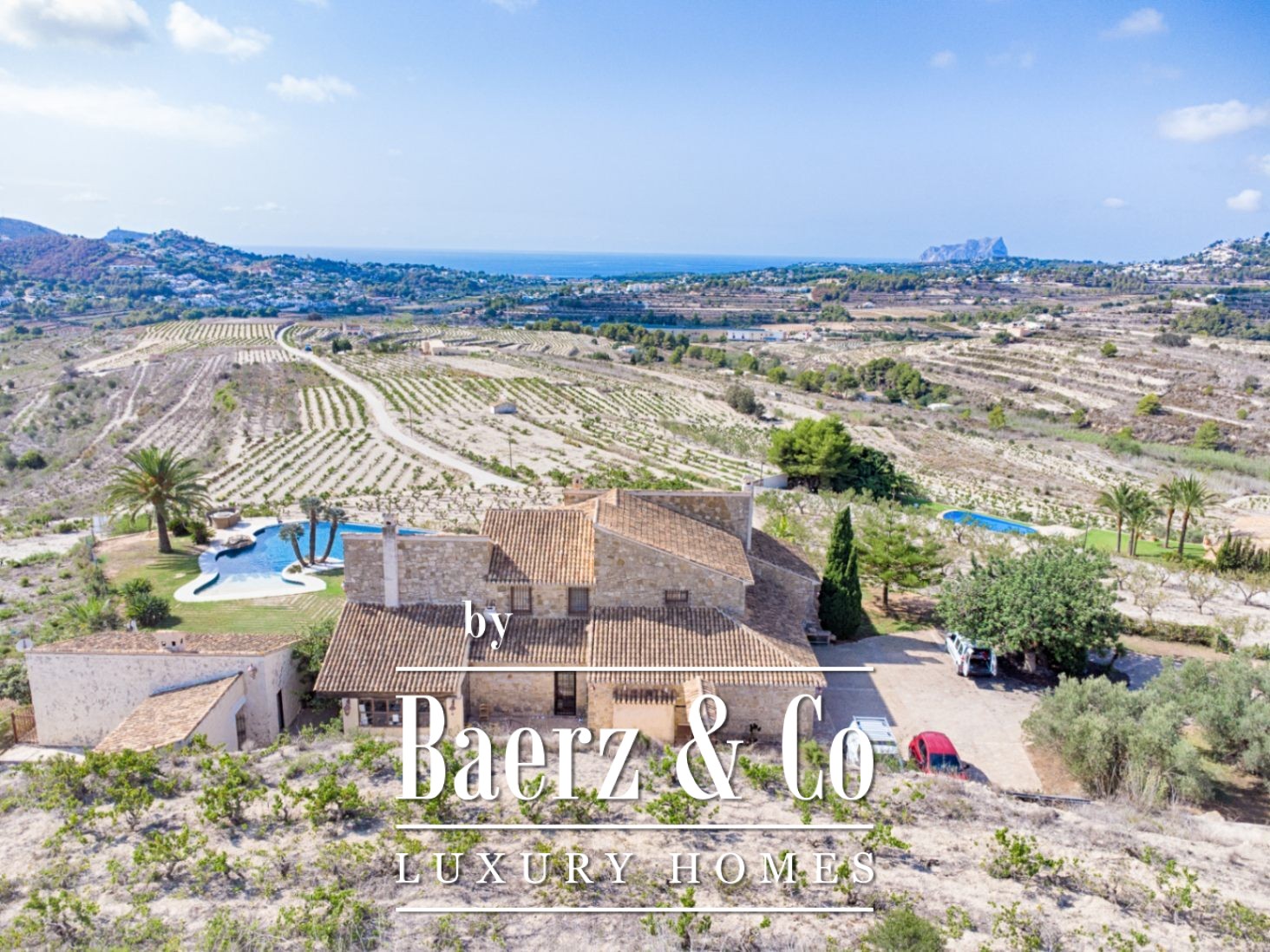 Step into a world of luxury and tranquility with this exceptional finca, built in 1998 and set on a spacious plot of 10,229 m² in the peaceful countryside. The property combines timeless elegance with modern comfort and offers stunning panoramic views of both the Mediterranean Sea and the majestic mountains, a breathtaking backdrop to enjoy every day. The finca is surrounded by nature and offers complete privacy. The 556 m² built area is distributed over three floors. On the ground floor, we find the living area with a bright living room, a formal dining room, and an elegant kitchen. There is also a garage (for one car). The upper floor features four spacious bedrooms and three refined bathrooms with high-quality finishes, two of which are en-suite. Lastly, there is a lovely bodega in the basement for