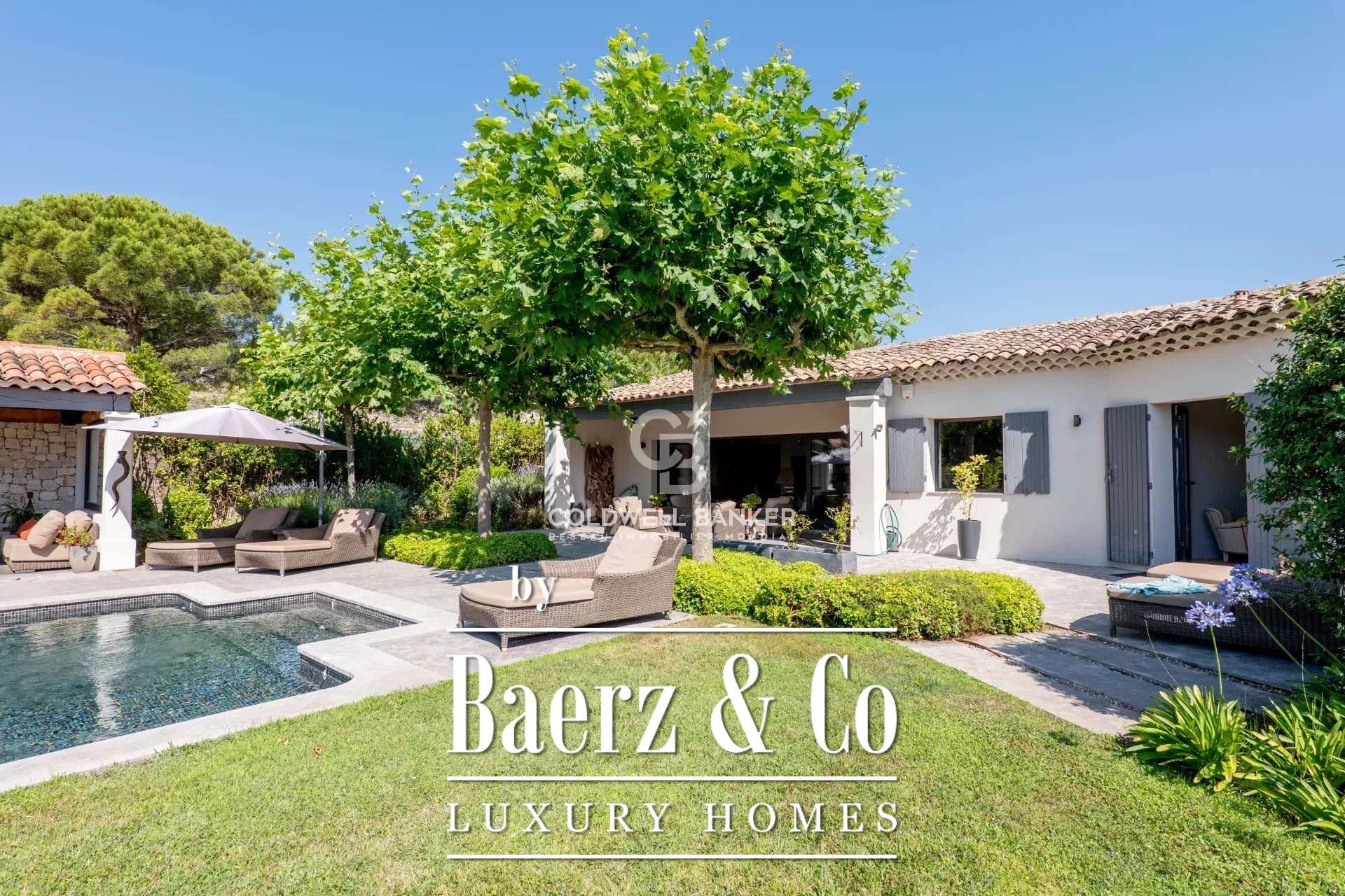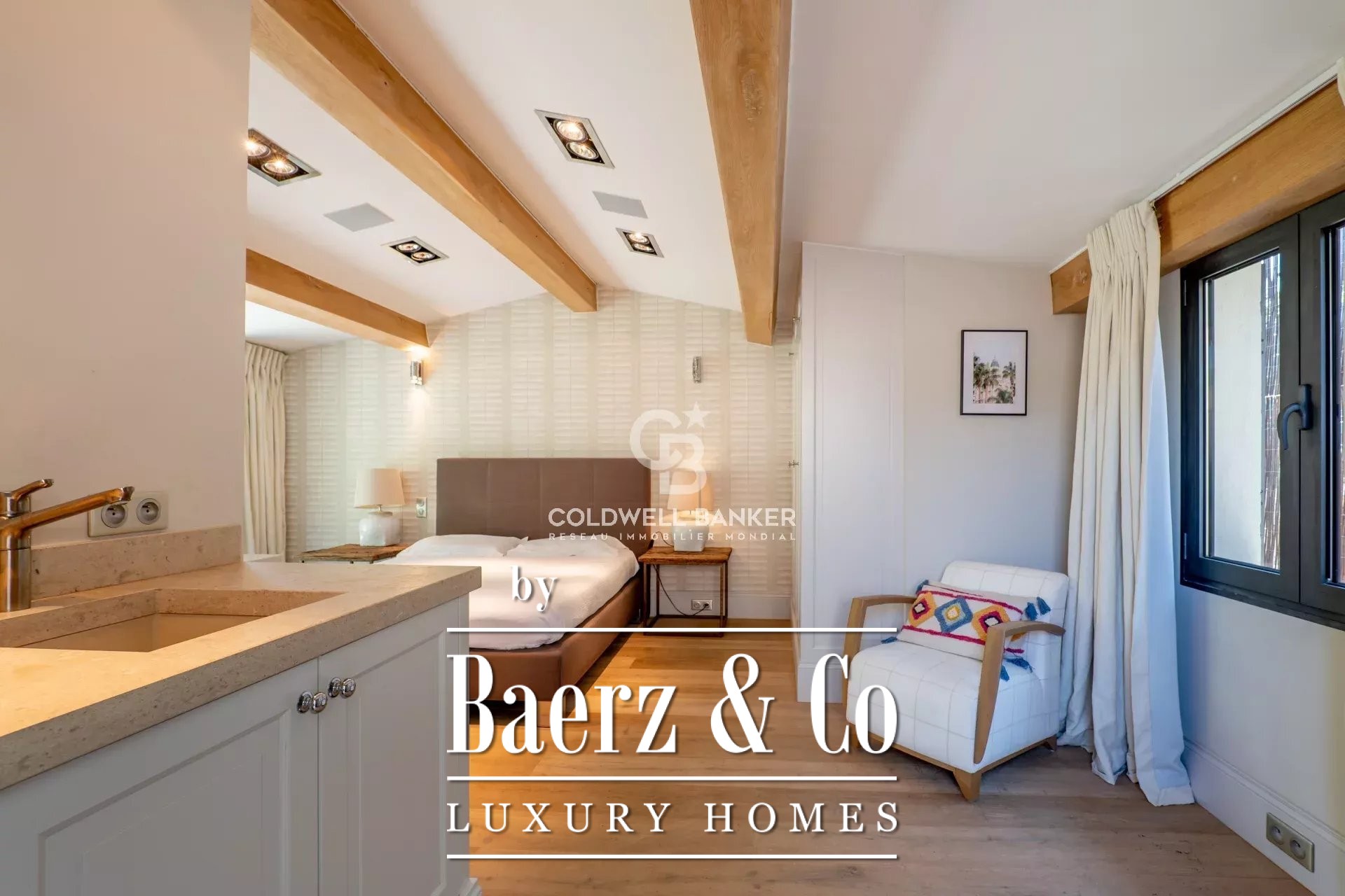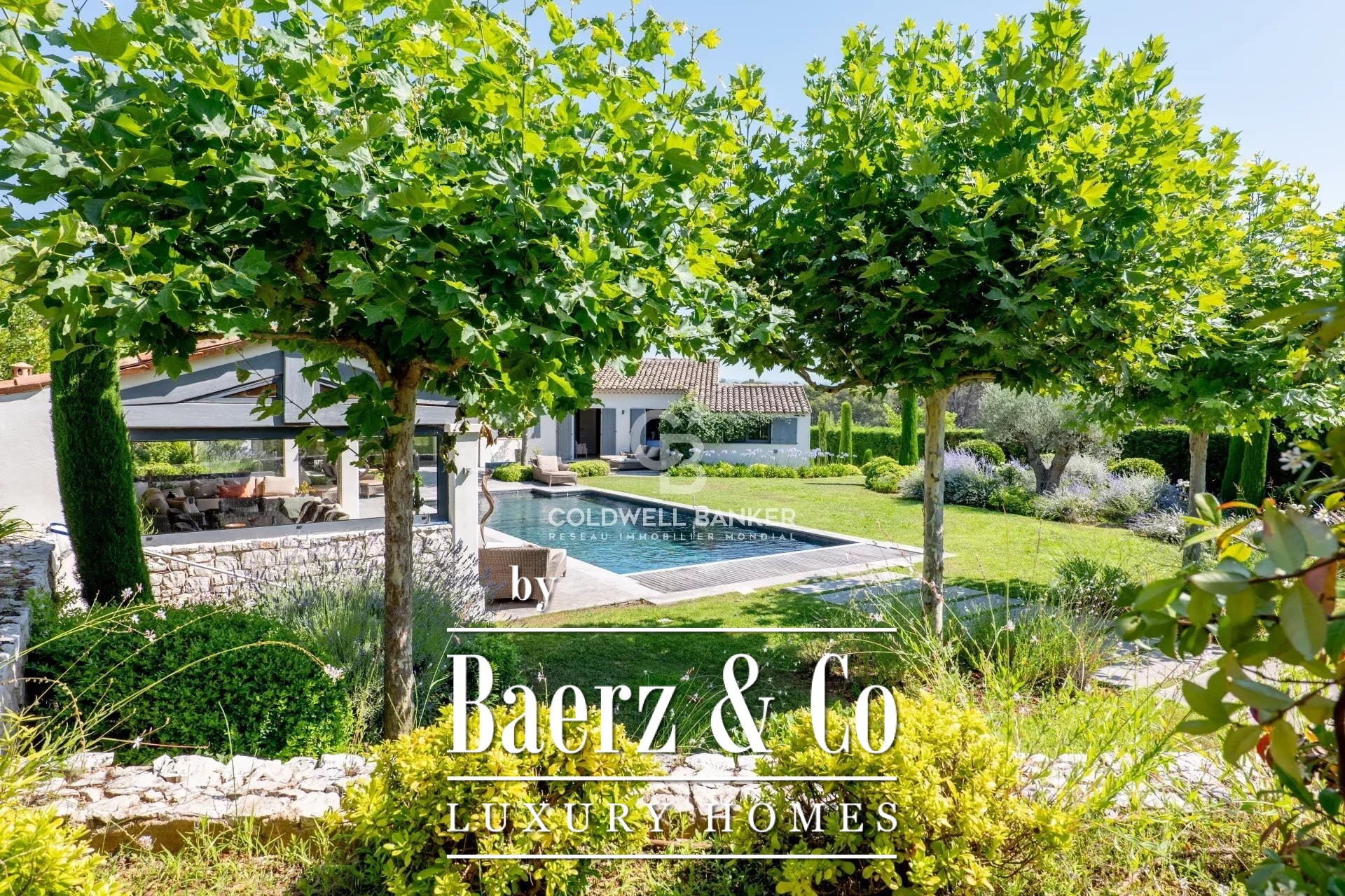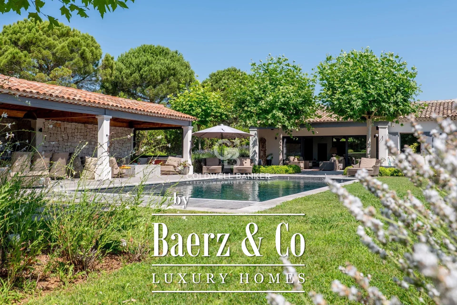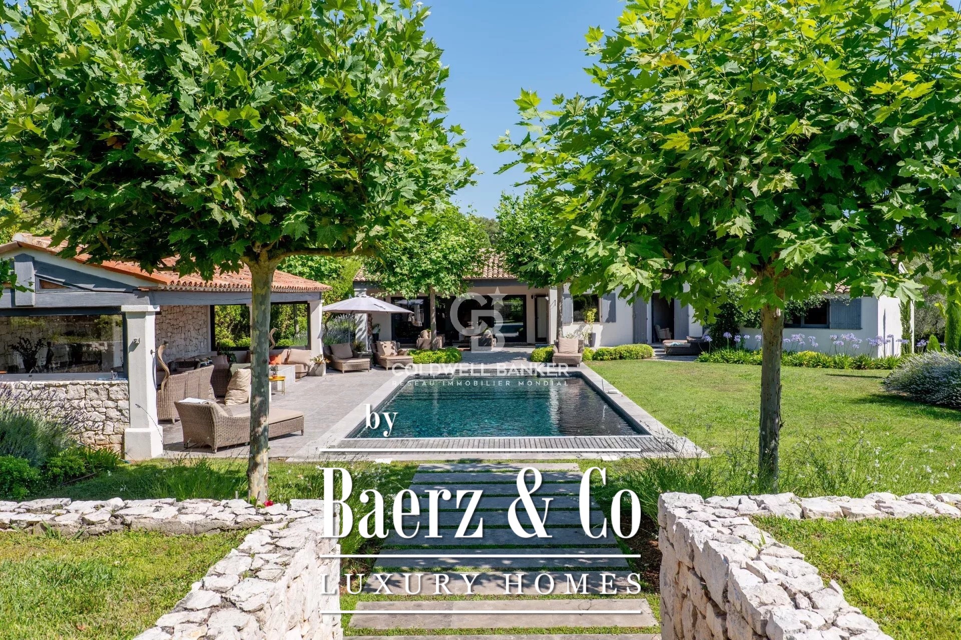 Outdoors, the atmosphere evokes calm social gatherings: a striking swimming pool, 130 m² pool house with brazier and summer kitchen, framed by mature gardens. Facilities including air-conditioning, fireplace, carport for two cars, and enhanced security. This villa for sale in Mougins invites a life at ease, in discreet proximity to local culture and global connectivity.