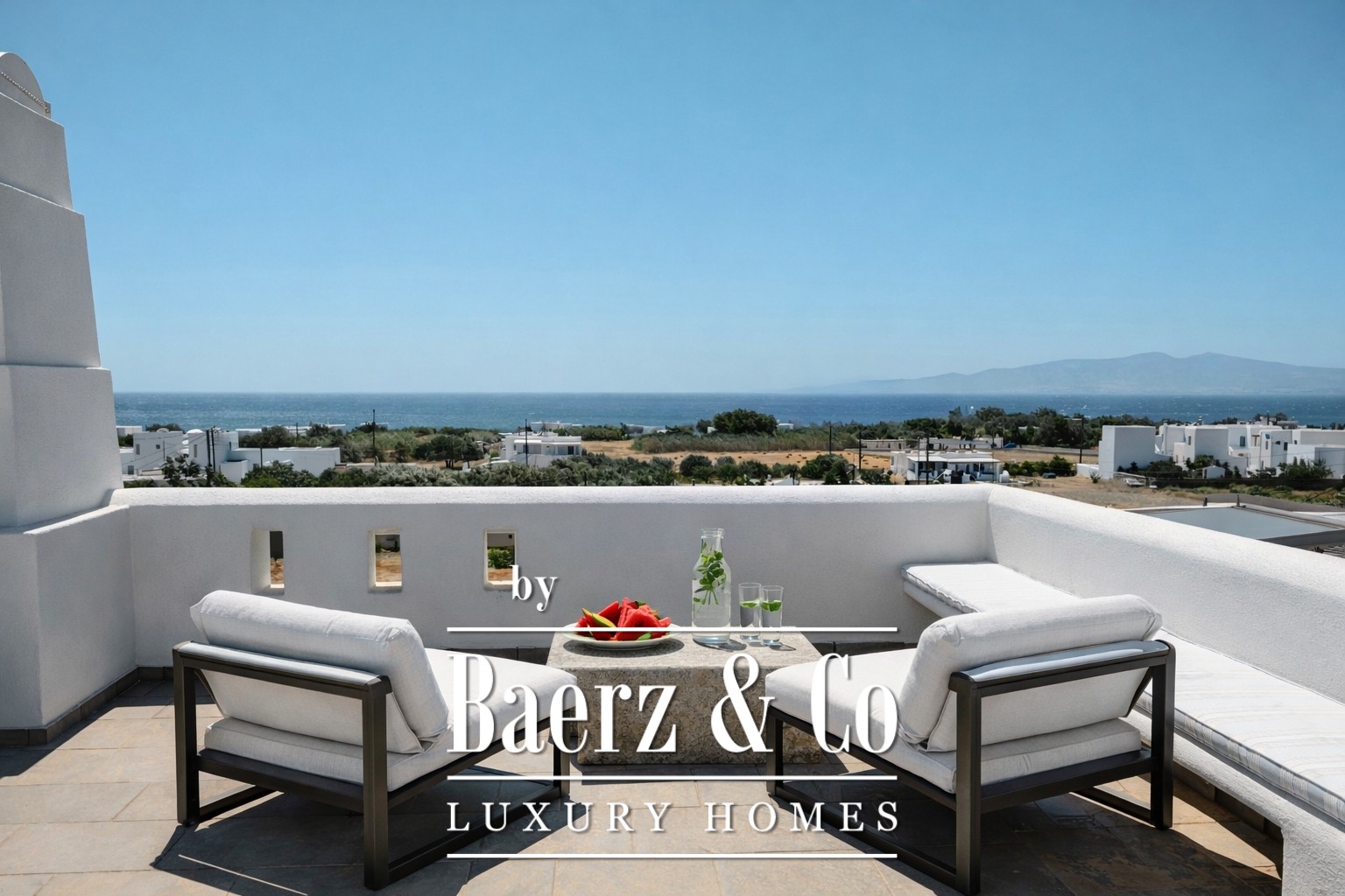 Carefully designed to make the most of the setting, the house enjoys sweeping sea views, open horizon vistas, and a sunset orientation, immersing residents in the natural beauty unique to Naxos Island. Moments from the coastline and accessed via an asphalt road, the property embodies understated coastal elegance and a distinct sense of place.