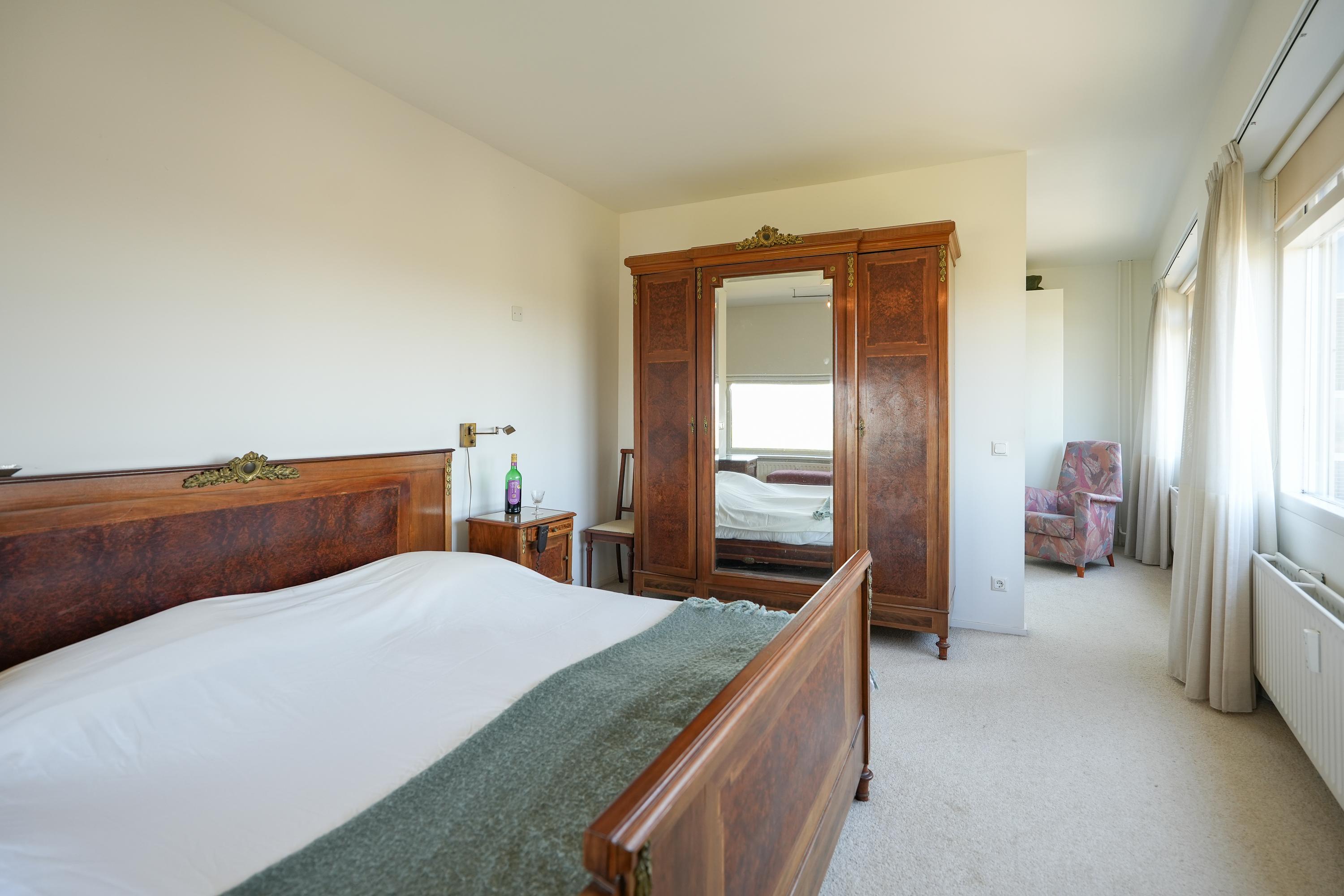 The kitchen is equipped with various built-in appliances and provides access to the first, south-facing balcony. Adjacent to the kitchen is an internal utility room offering additional storage and workspace. From the living room and the balcony there are beautiful views over the city of Nijmegen and Radboud University. A gas fireplace separates the dining area from the television/lounge area on the south-west side. The west-facing balcony offers lovely views towards the River Waal and the iconic Waal Bridge.