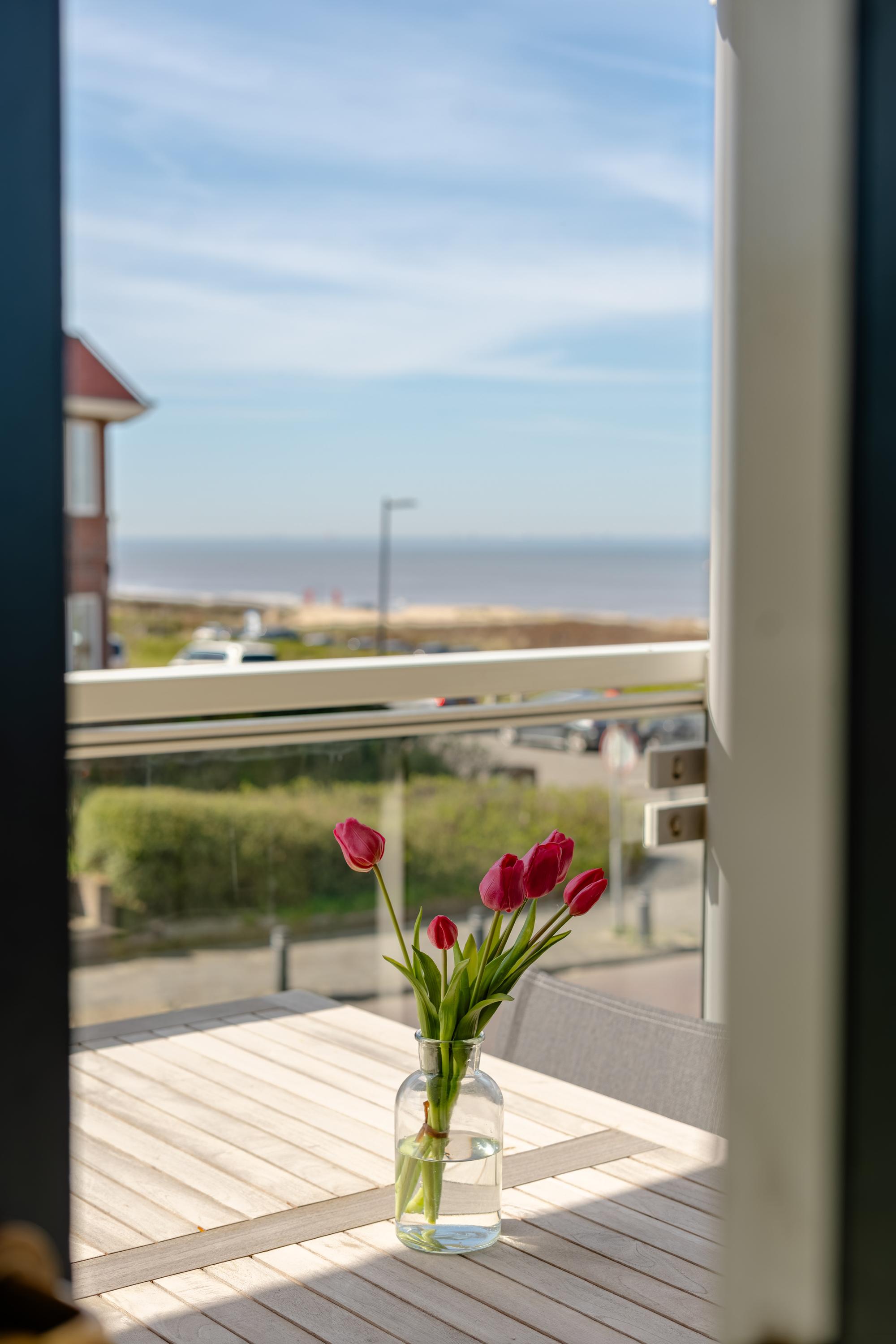 In this refined apartment at Residence Astrid, everything revolves around light, views, and location. The spacious south-facing balcony is the true statement piece. Measuring approximately 2.13 x 6.09 meters, it offers ample space for both a comfortable lounge area and a dining table – the perfect setting to enjoy the sun all day long, with unobstructed views over the beach and the sea.