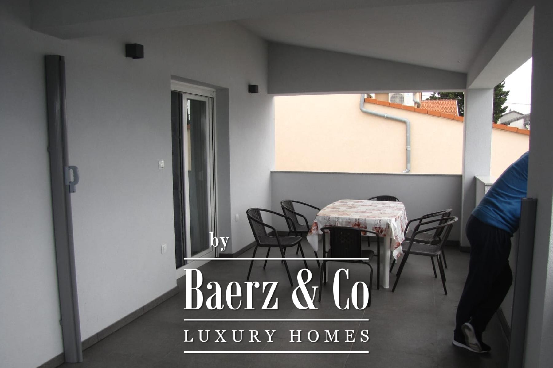 The property includes four bedrooms and four bathrooms across 121 m² of living space. Situated on a 580 m² plot, it is thoughtfully divided into three distinct residential units, creating flexibility for family living, tourism rental, or a harmonious blend of both. Large windows frame panoramic sea views, filling the interiors with natural light and an immediate sense of openness. The outdoor space offers the potential for a Mediterranean garden, sunbathing area, or even a swimming pool, reinforcing the seamless indoor-outdoor atmosphere.