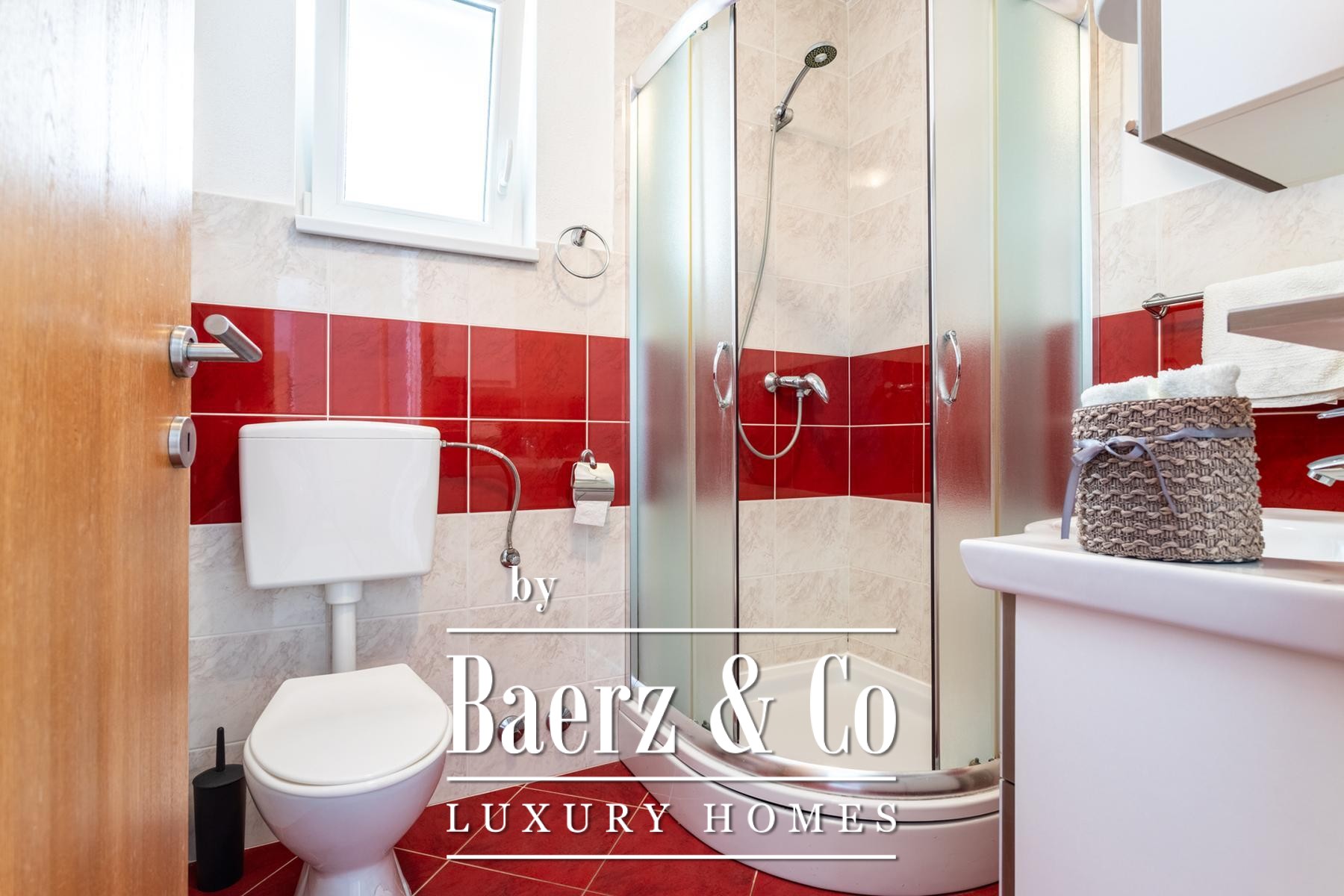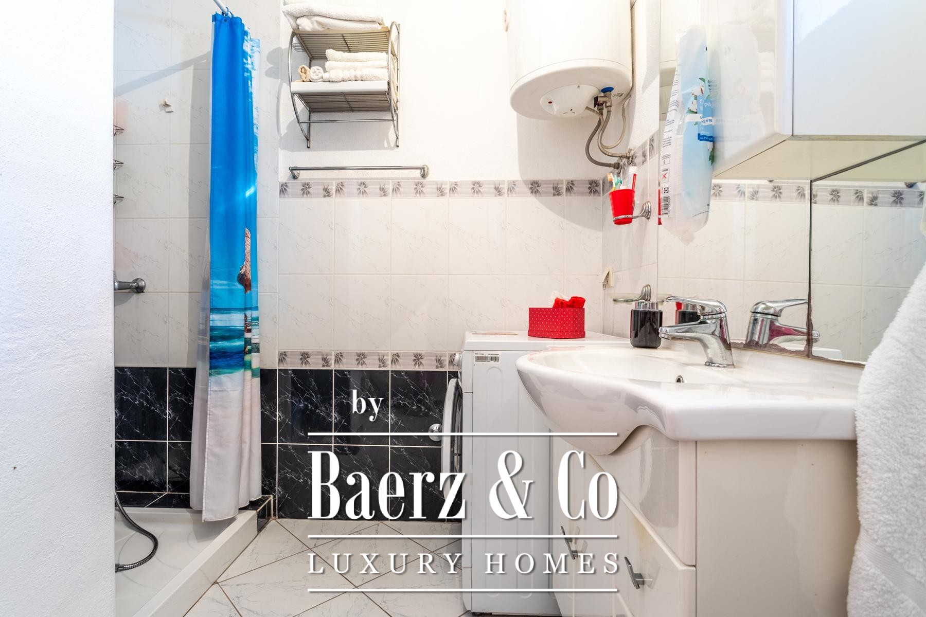Ground floor: comprises a spacious one-bedroom apartment and a beautifully landscaped yard. The apartment includes a living room, kitchen with dining area, a large bedroom, bathroom, and a covered terrace with a dining table.Outdoor space features a well-maintained Mediterranean garden with olive trees, rosemary, grapevines, palms, and a variety of flowers, creating an ideal setting for relaxation. There is also an outdoor kitchen equipped with a fireplace, sink, and oven - perfect for gatherings in the shade of the grapevine.The apartments face east, south, and west, ensuring plenty of sunlight throughout the day, while the higher floors offer beautiful sea views.Five parking spaces are available directly next to the house.Further information available upon request.