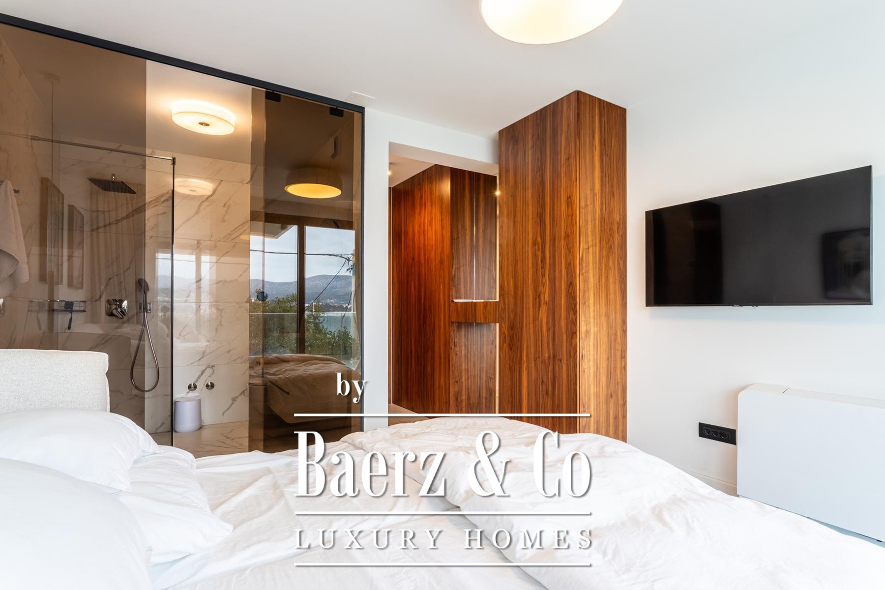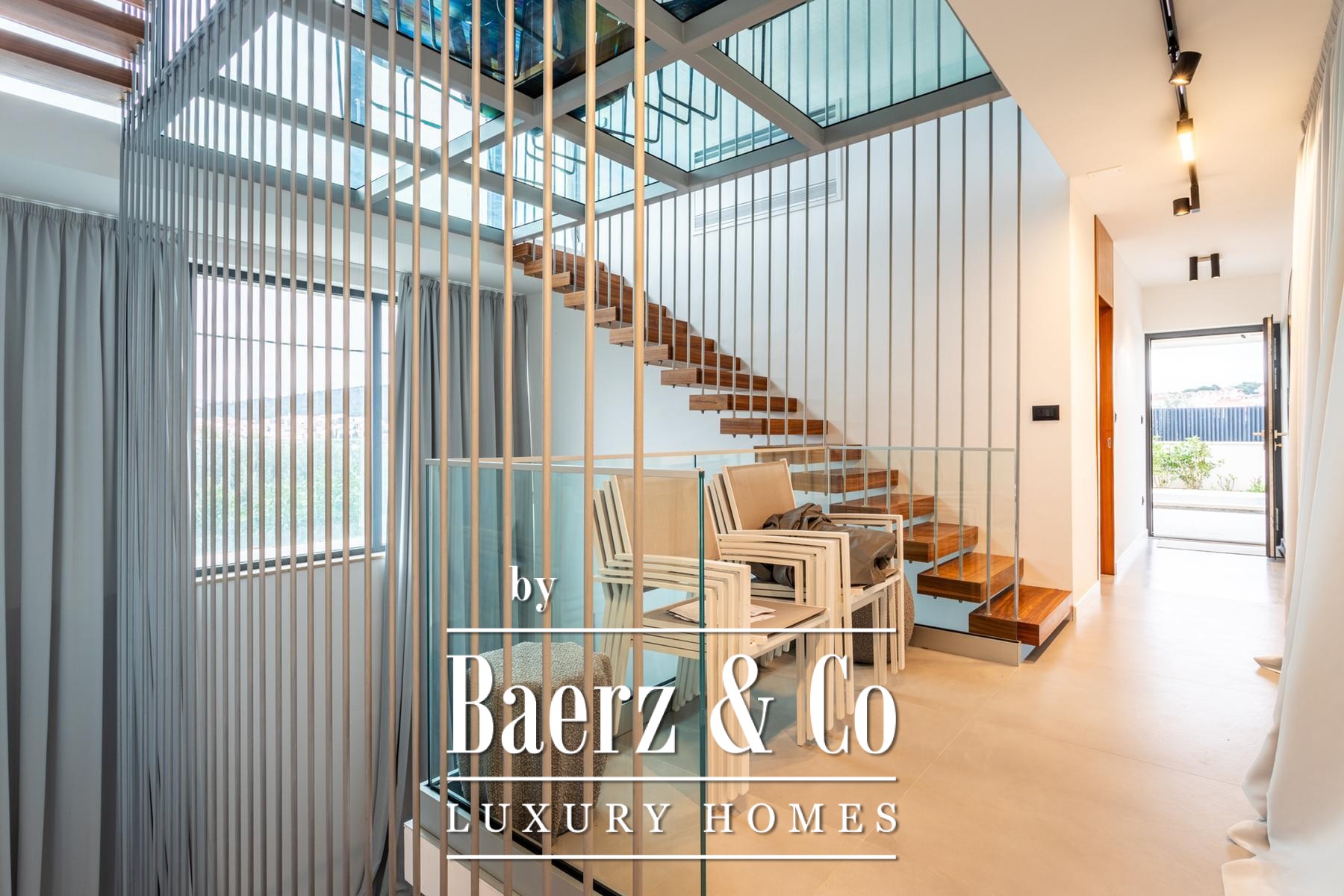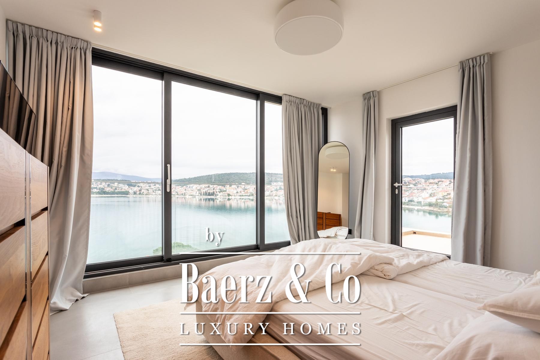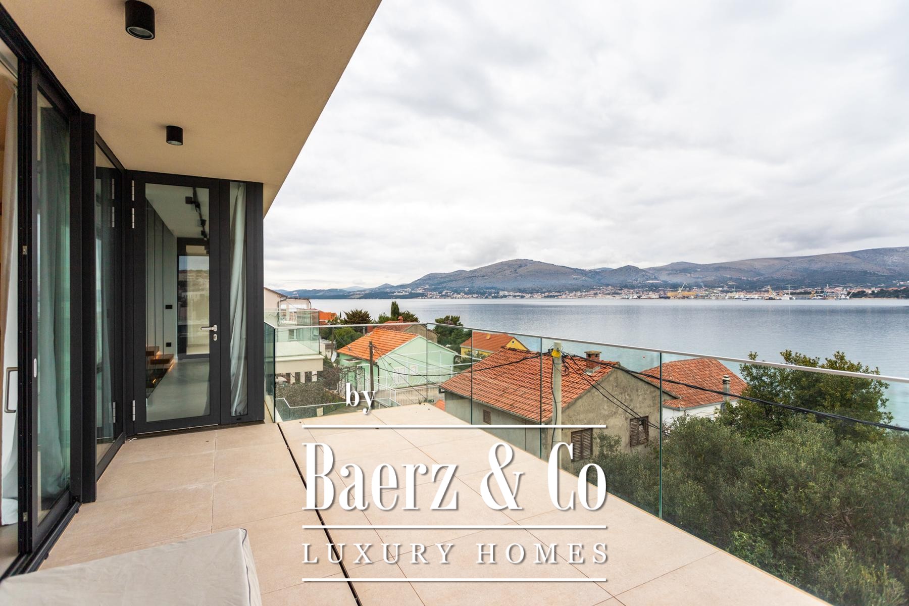 Villa Okrug with panoramic view stands just fifty meters from the pebble beach, offering both serenity and elegant living in Croatia. This modern villa features 400 m² of curated space and sits on a 470 m² plot, with architecture that embraces light, openness, and continuous flow.
