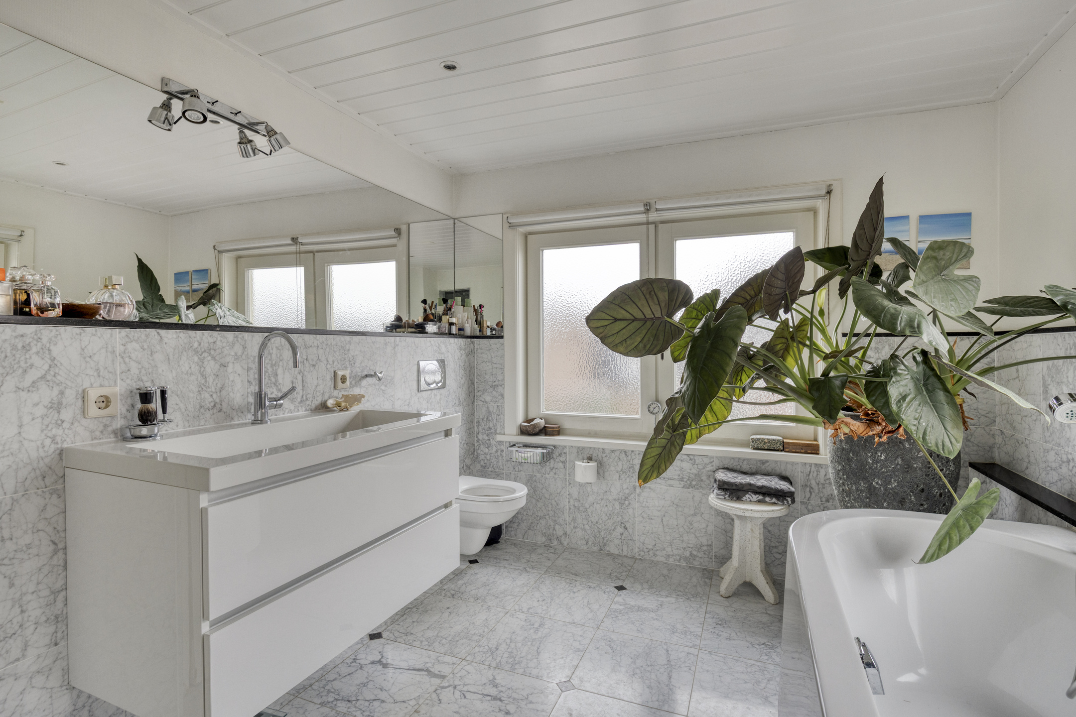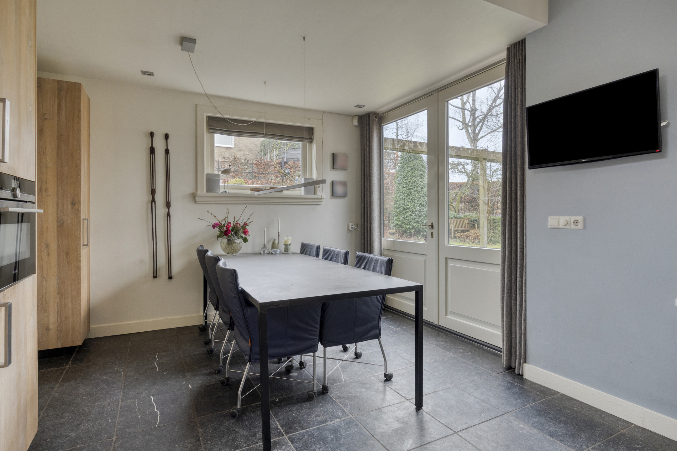 Life along Hoge Haerlaan means enjoying tranquility and space, with daily amenities close by. The ground floor welcomes you via a covered entrance and spacious vestibule, leading to a home office framed by an elegant bay window. The living room’s expansive windows and conservatory invite daylight and open outwards into the serene south east-facing garden, enriched with multiple terraces and layered greenery. A fireplace-warmed kitchen features high-end appliances and opens onto a covered terrace. Practical spaces extend to a larder-height cellar, utility room, and ample garage.