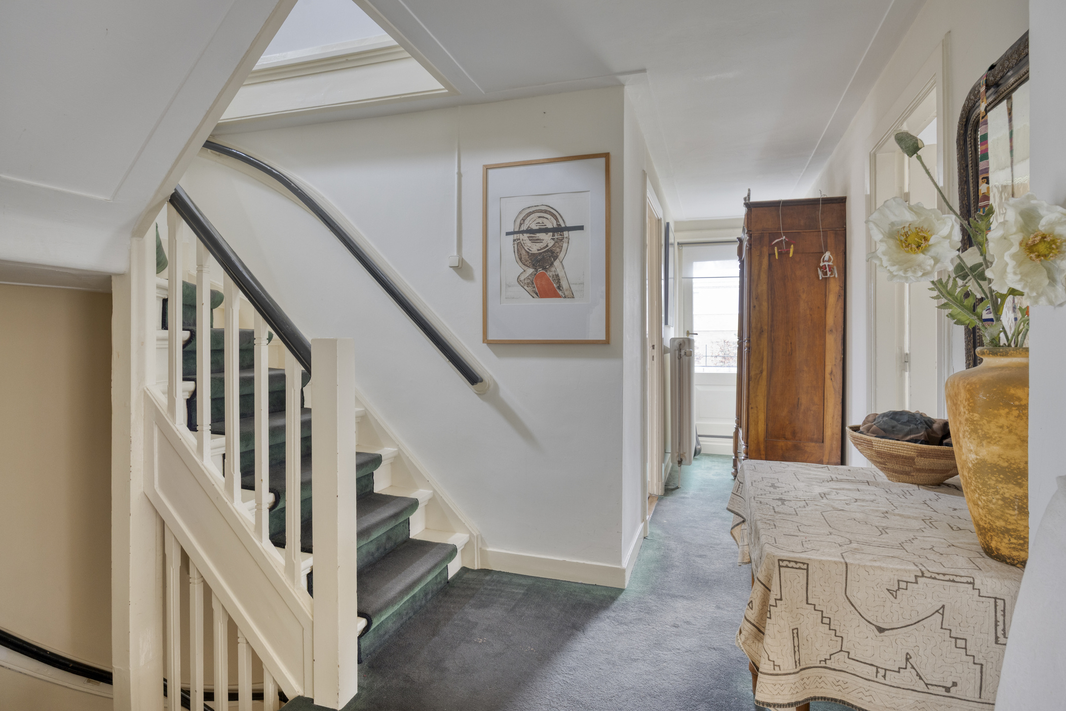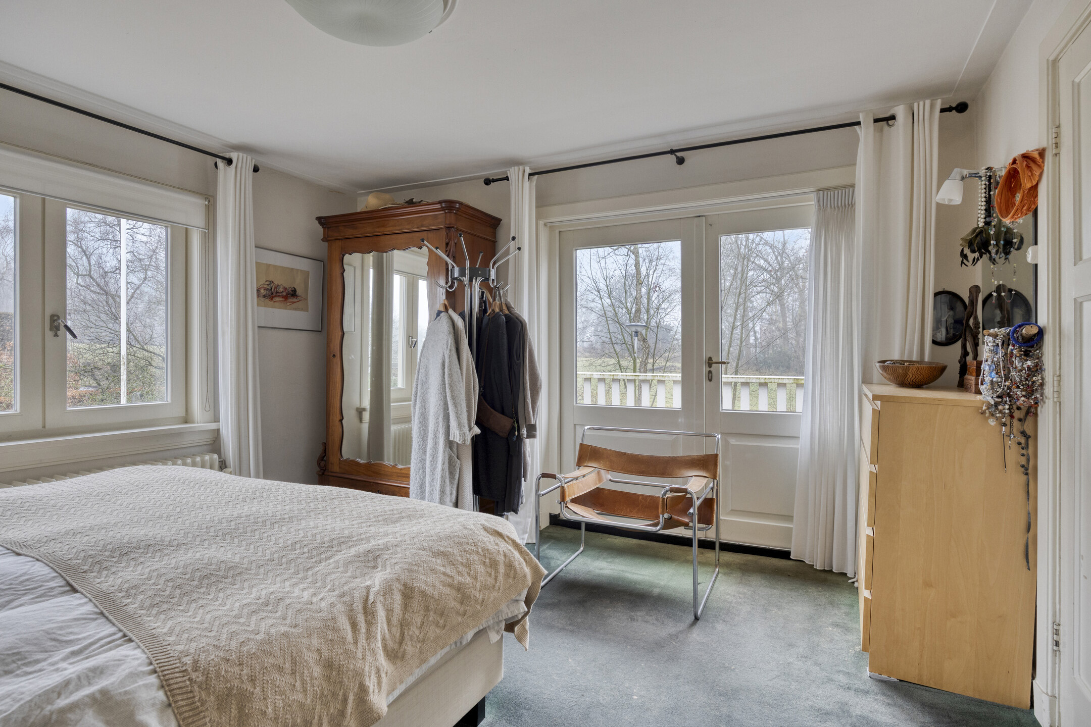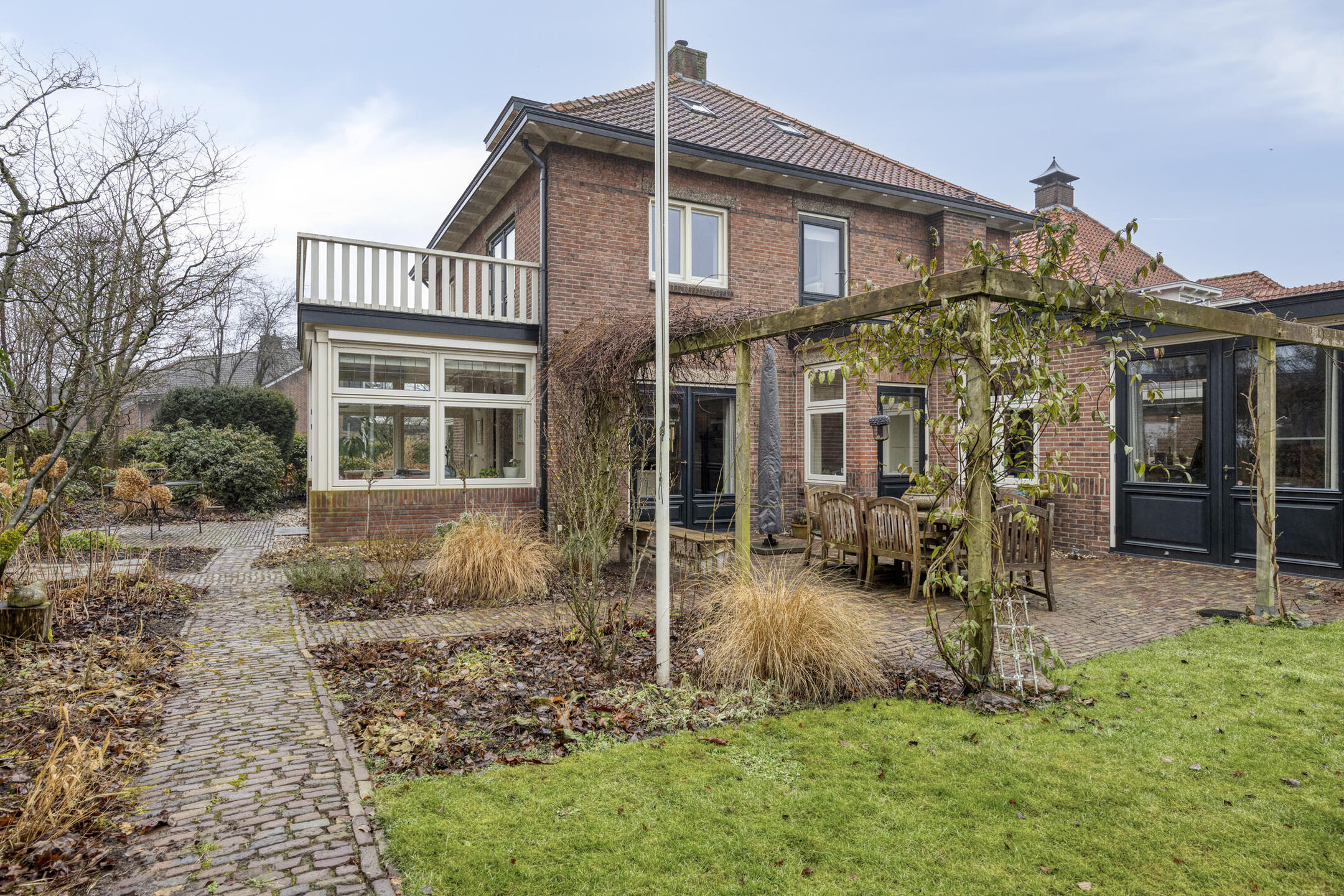 Detached house Oldenzaal provides five bedrooms across three levels, including a master suite with balcony views onto the surrounding countryside. Two bathrooms offer comfort, while original joinery, partial underfloor heating, solar panels, comprehensive insulation, and energy class C add further appeal. A sense of privacy, architectural quality, and continuity is felt in every space.