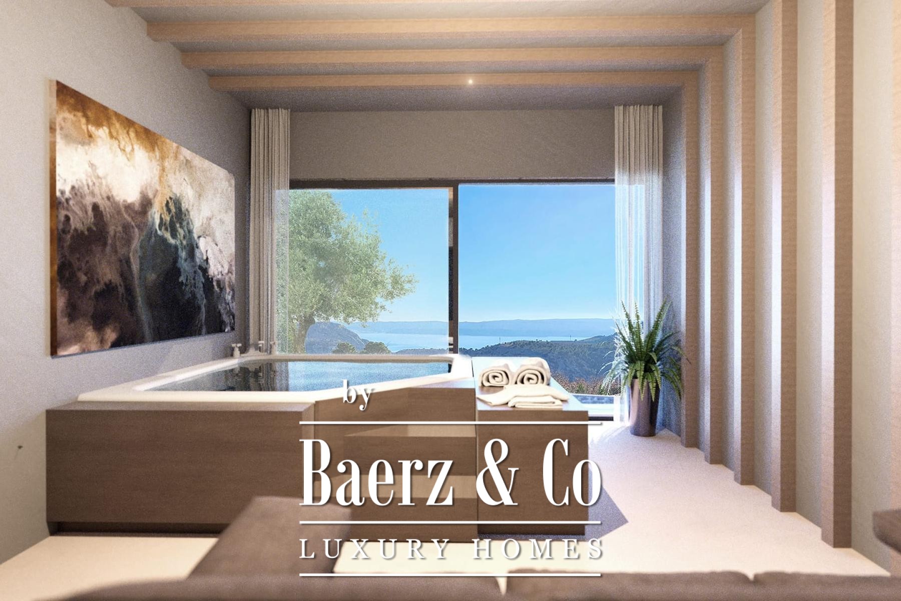Two master bedrooms feature serene en-suite bathrooms, elegant walk-in closets, and direct access to private terraces oriented towards the Omiš Dinara and the shifting blue horizon beyond. On the ground floor, a flexible multipurpose room is tailored for wellness, guest accommodation, or refined gatherings.