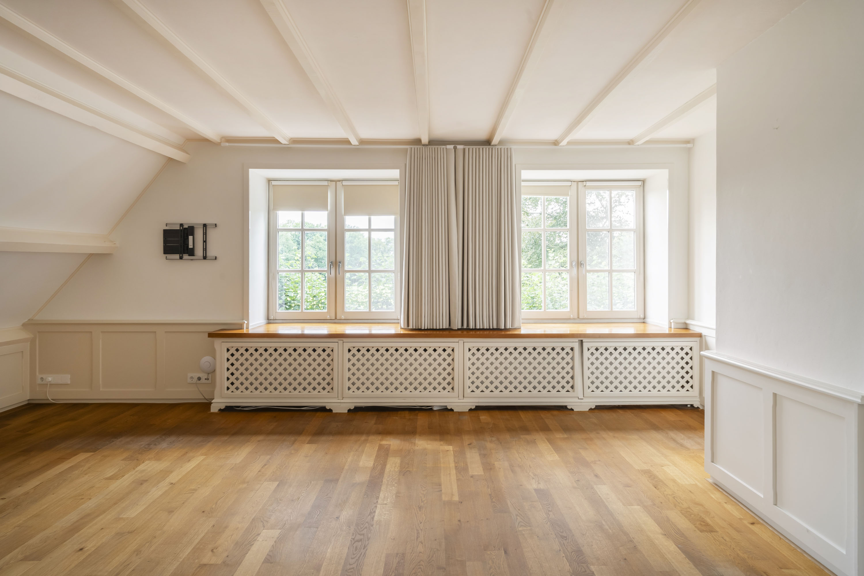 Een karakteristiek bijgebouw vormt een oase van ontspanning. Hier treft u een royaal zwembad, luxe sauna, exclusieve douche- en kleedruimte. En als klap op de vuurpijl een jacuzzi op het aangrenzende buitenterras. De perfecte plek om in alle rust tot uzelf te komen of gasten op exclusieve wijze te ontvangen. De verdieping van dit gebouw leent zich er zelfs voor om een gastenverblijf te realiseren.