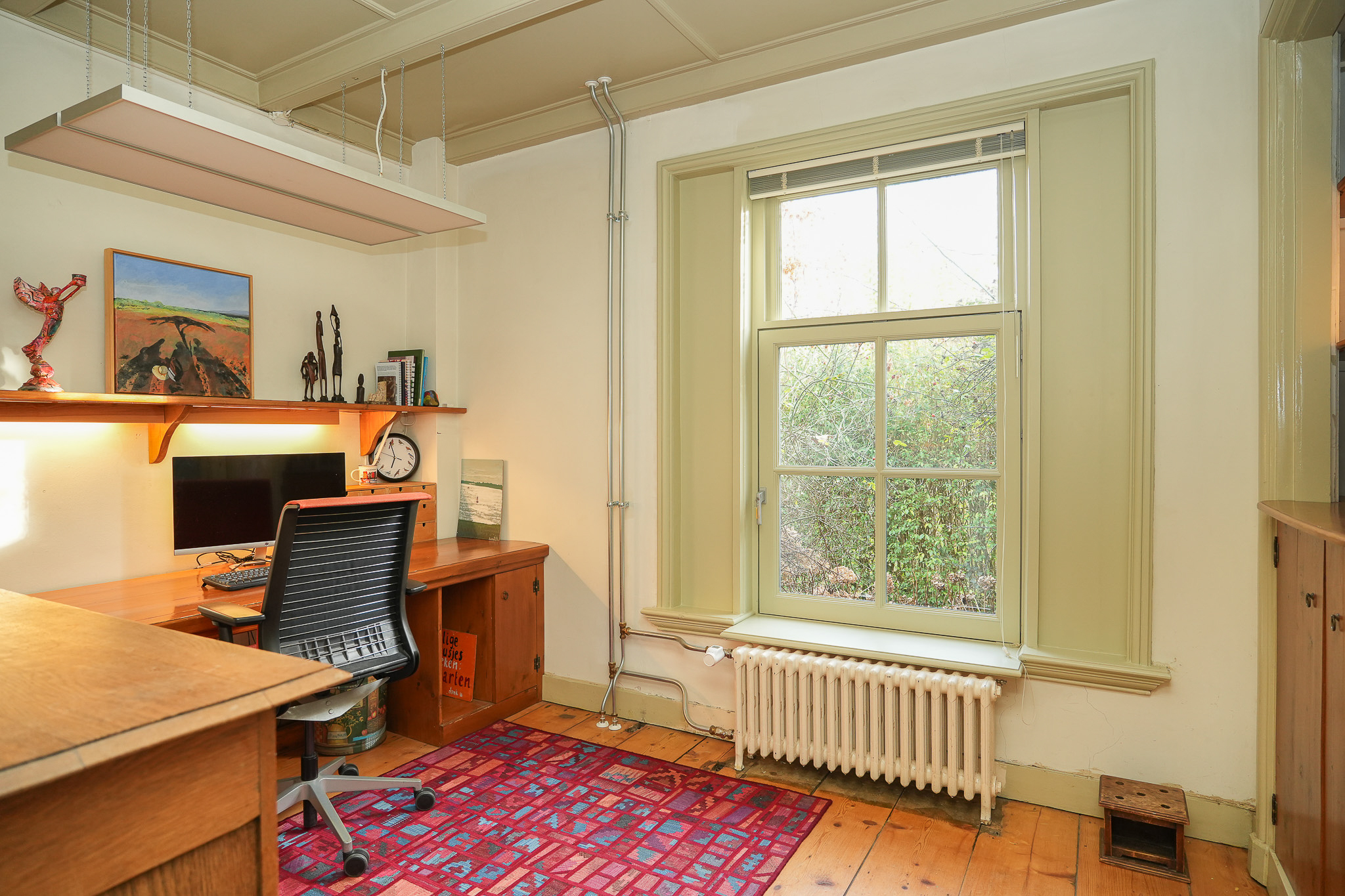 Aan de achterzijde van de verdieping is een ruimte ingericht als atelier. Hier bevinden zich tevens de vierde slaapkamer en een lager gelegen technische ruimte, die door de huidige eigenaren ook wordt gebruikt als praktische droogruimte voor de was.