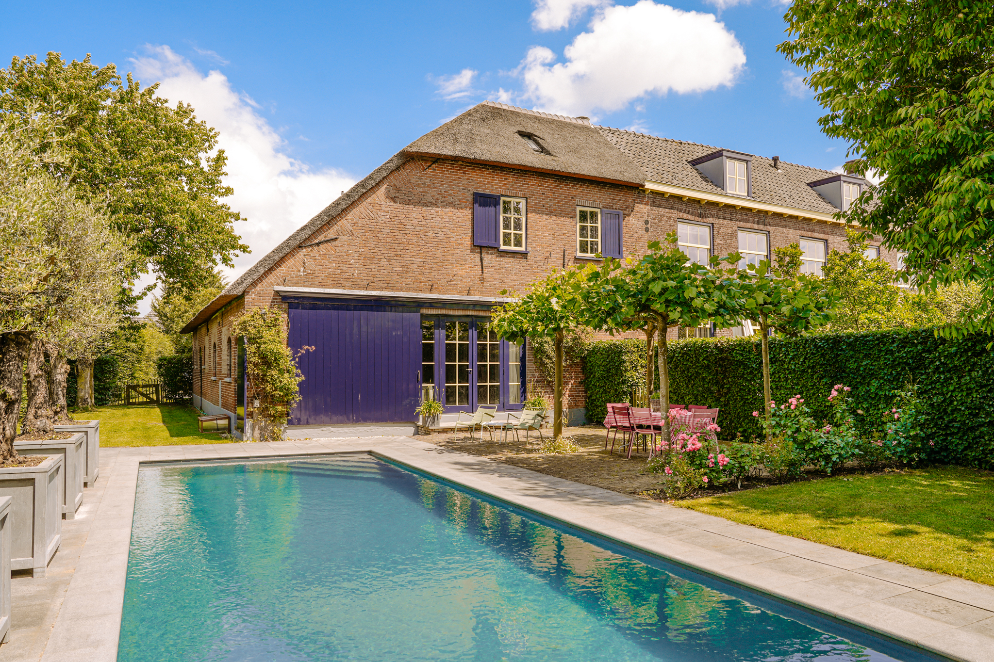 Dating back to 1794, this well-maintained and highly energy-efficient (energy label A+) estate sits on a spacious, hedge-enclosed plot that ensures absolute privacy. With numerous rooms, including a guesthouse and office space, this estate is ideally suited for those seeking to combine living and working in one inspiring setting. The heated swimming pool, nestled in the lush, leafy garden, completes the idyllic lifestyle this home offers.