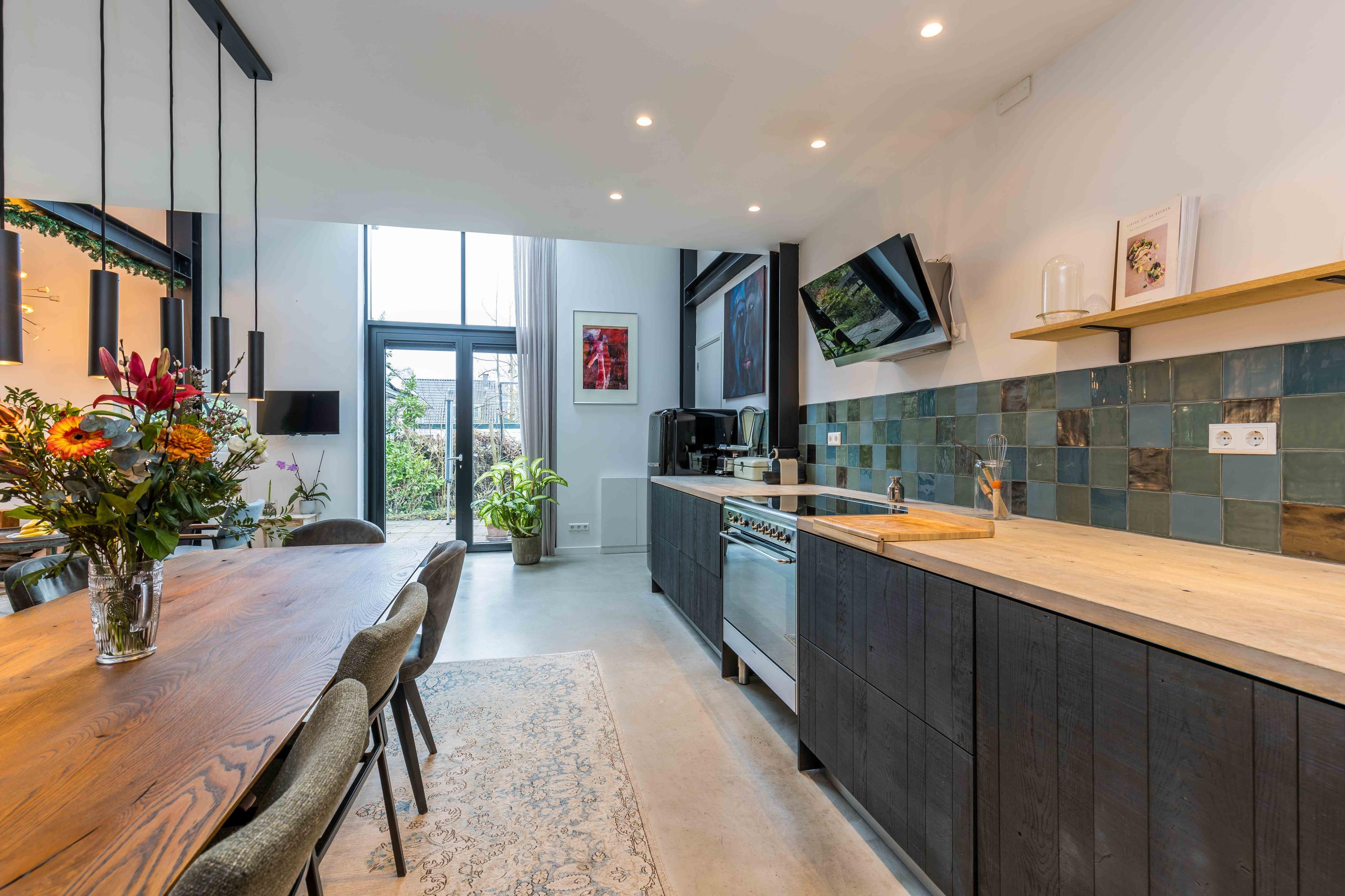 A unique addition to the house is the completely renovated former barn, which was transformed into a full-fledged living space in 2019. This 'back house' is connected to the original house at the front via passages on both the ground floor and the first floor. On the ground floor there is a beautiful, bright open plan kitchen, perfect for cozy dinners and get-togethers. A spacious bedroom has been created on the first floor, which can also serve as an ideal office or office. The back house is also suitable as a separate living space.