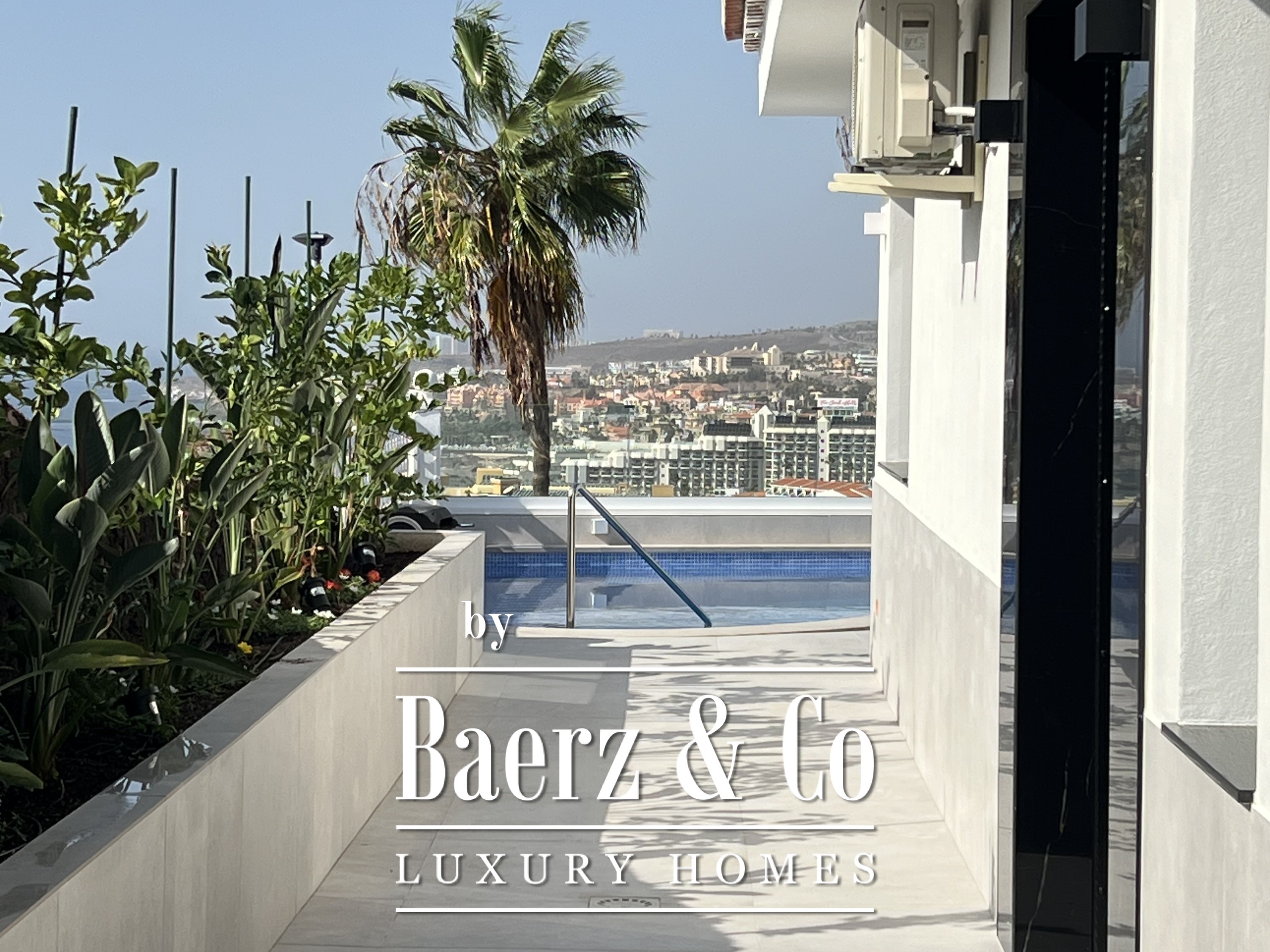Essential features include air conditioning, double glazing, fitted wardrobes, an alarm system, and a private garage for two cars. The rooftop terrace, at 85 m², offers elevated privacy, an ideal setting for gatherings or quiet reflection above the coastline. Nearby, Costa Adeje’s beaches, international school, golf course, and luxury shopping are within easy reach, with Tenerife South airport a brief drive away. This luxury villa for sale in San Eugenio is a statement of comfort and position for those who value space, privacy, and an assured connection to the island’s finest offerings.