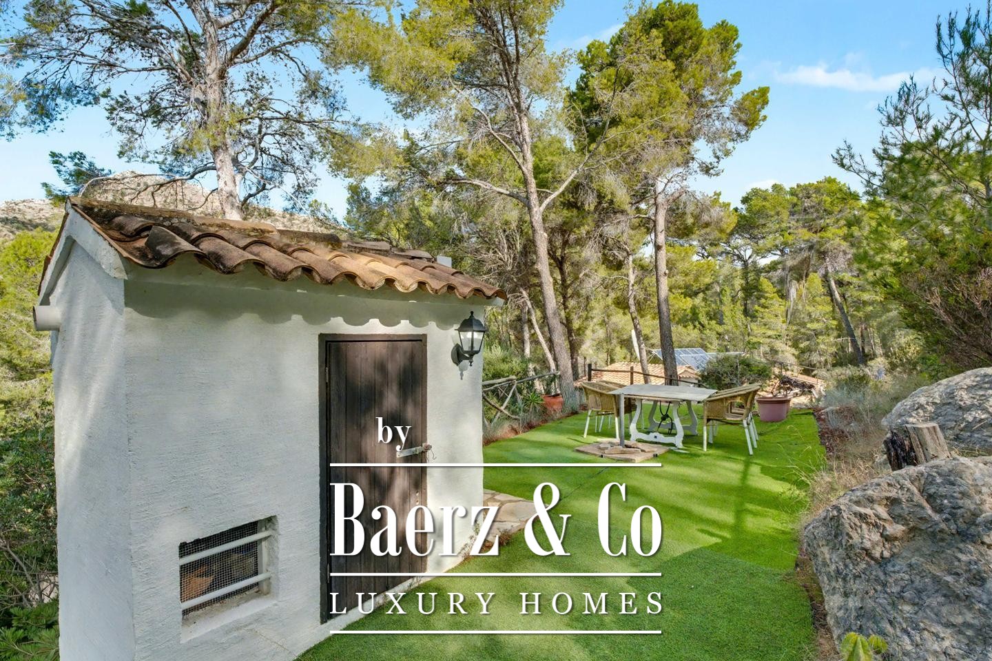 On a gentle hillside surrounded by Mediterranean woodland, this rustic finca, built in the 1980s and lovingly maintained by its owners, offers a sense of authenticity and serenity — a place where nature and the blue of the sea blend on the horizon.