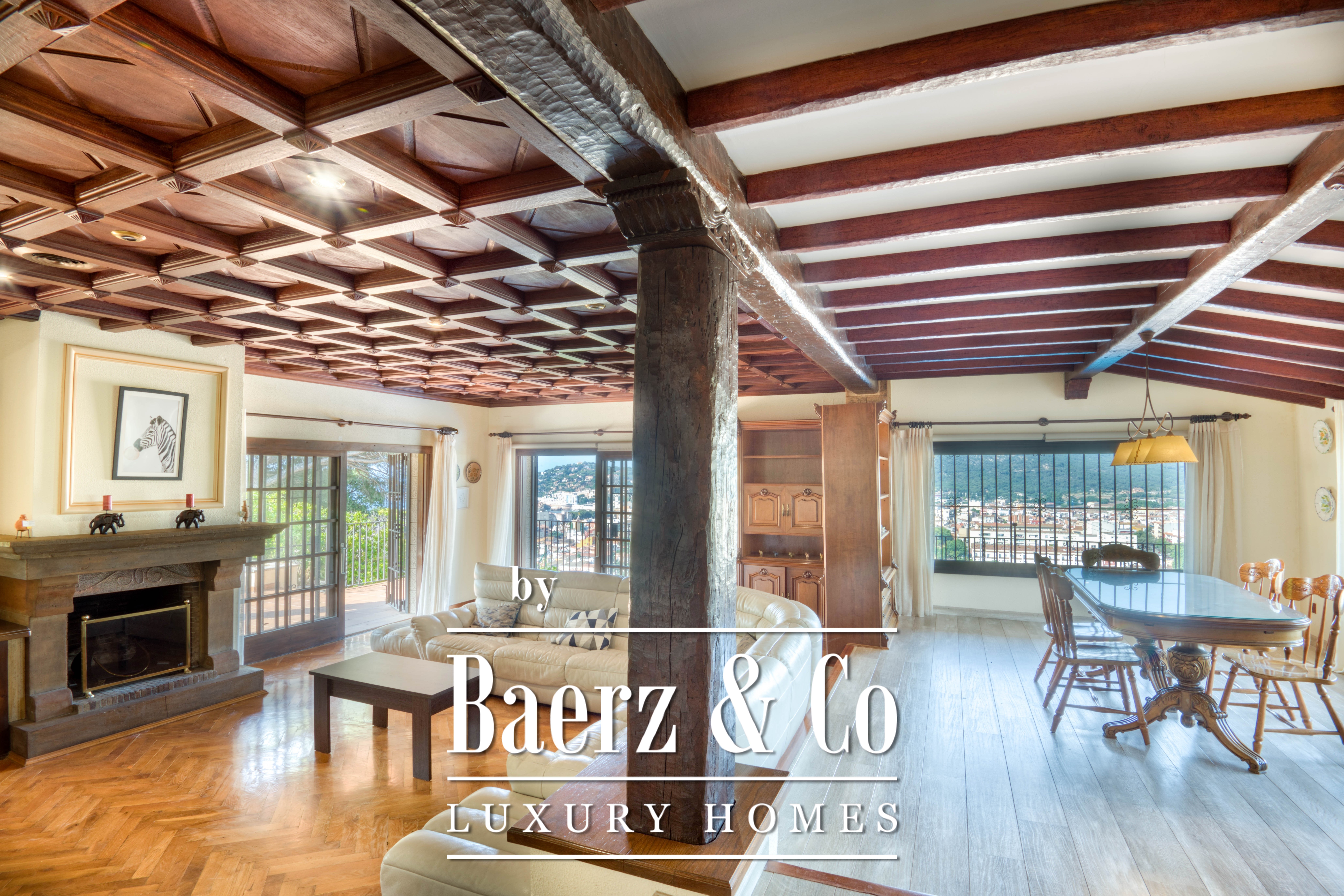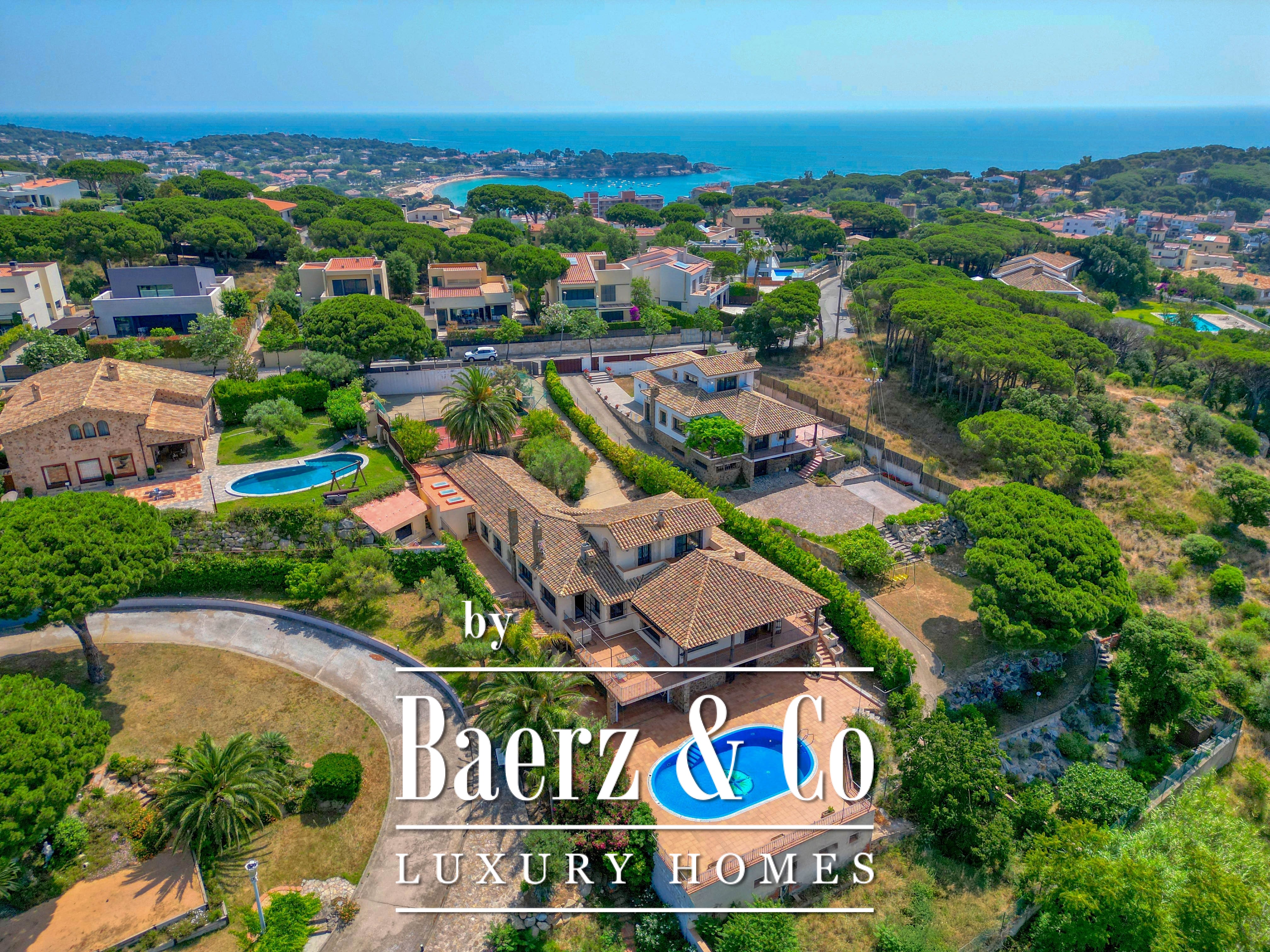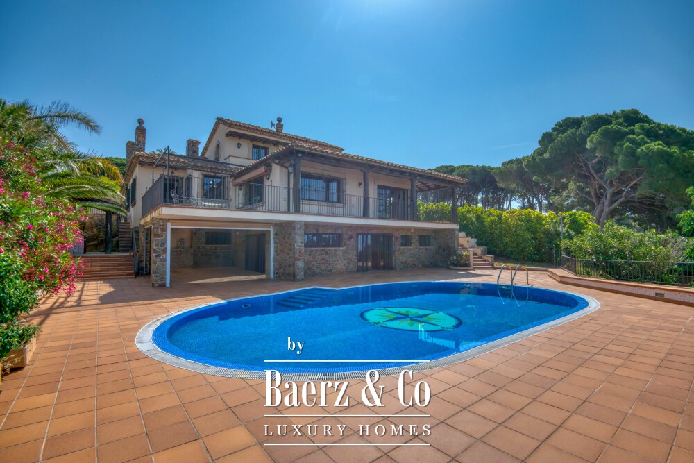 Outdoors, a sizeable pool and private tennis court invite relaxation and activity, sheltered by mature greenery. Endless views reach across the Mediterranean Sea, Sant Feliu Monastery, Sant Elm Mountain, and the Ardenya cornice, shifting with the changing light. Featuring a garage, air conditioning, BBQ area, and games room, this luxury villa for sale in Sant Feliu de Guixols articulates understated luxury and rare authenticity, suited for year-round living or as a treasured retreat.