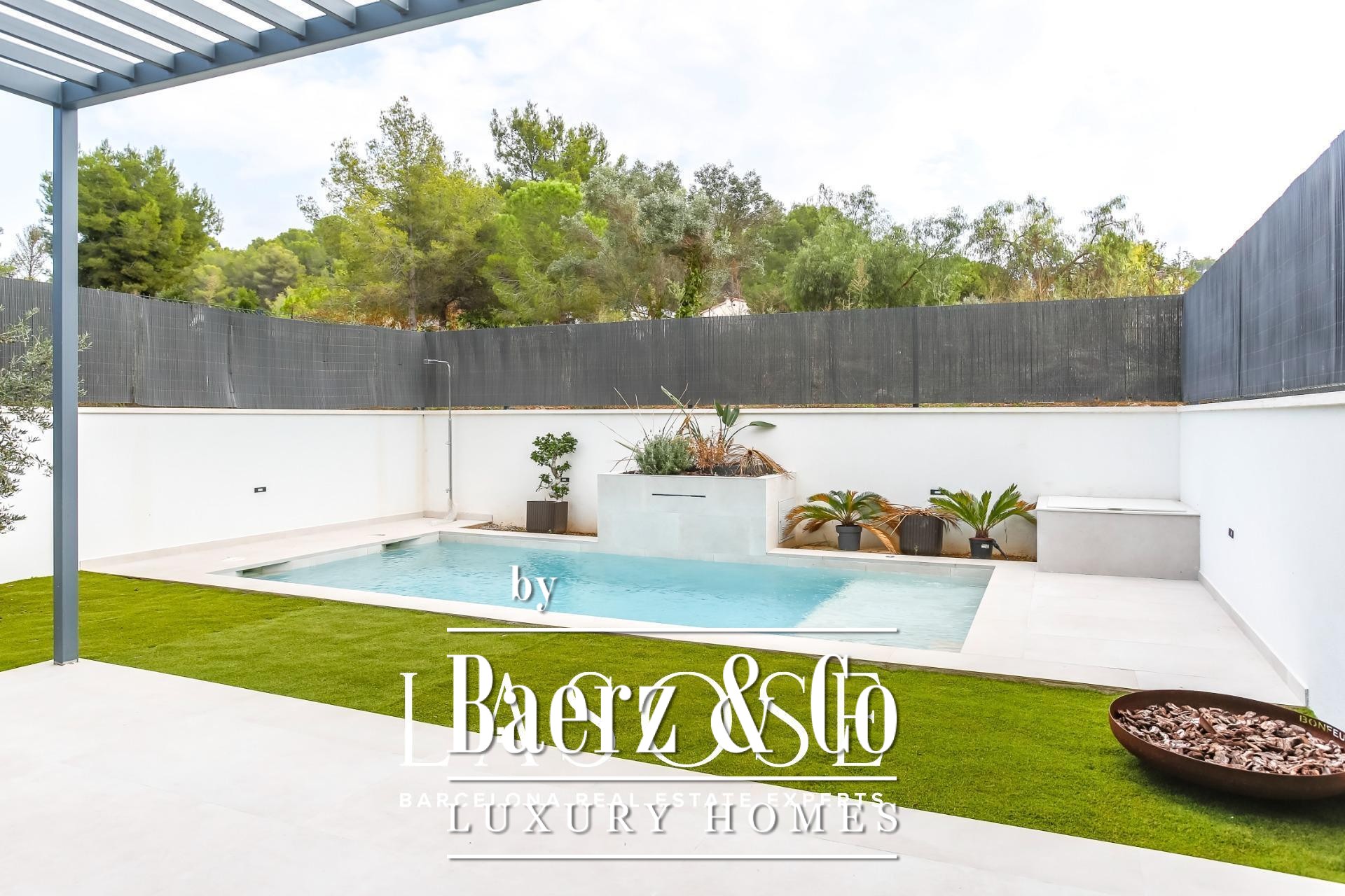 LASOSE PROPIEDADES are delighted to present this modern villa, where your dream Mediterranean lifestyle can start. It is perfectly located just minutes from the center of Sitges and close to international schools, all essential services, and transport connections. Designed for comfort, functionality, and family living, this home offers a peaceful retreat with everything you need within easy reach.. Over 200 m² of built area, the property features 5 bedrooms and 3 bathrooms, offering plenty of space for every member of the family. The open-plan kitchen and dining area create a bright and welcoming space to enjoy daily life together, while the spacious living room opens directly to the garden, filling the home with natural light throughout the day.. . Step outside to your private outdoor space — a garden, terrace, and swimming pool that invite you to enjoy the Mediterranean climate year-round. Whether you’re relaxing by the pool, hosting a barbecue, or watching the kids play, this home provides the perfect setting for both quiet moments and lively family gatherings. The property also includes a garage and ample storage space.. . Built with contemporary architecture and high-quality finishes, the house stands out for its clean lines and modern design. Thanks to its energy-efficient construction, solar panels, and aerothermal system, it combines comfort with sustainability — reducing energy costs while contributing to a more environmentally friendly lifestyle..