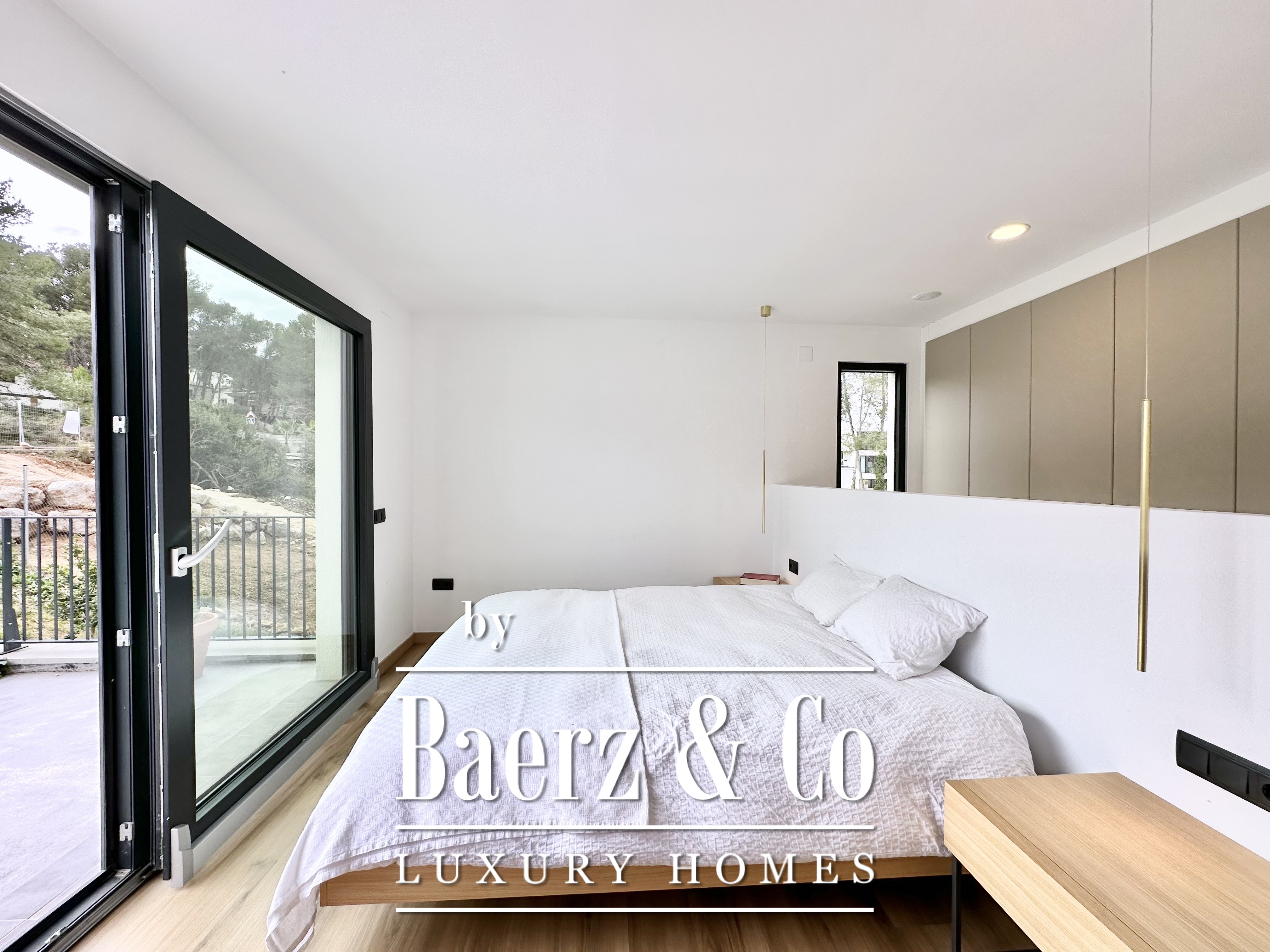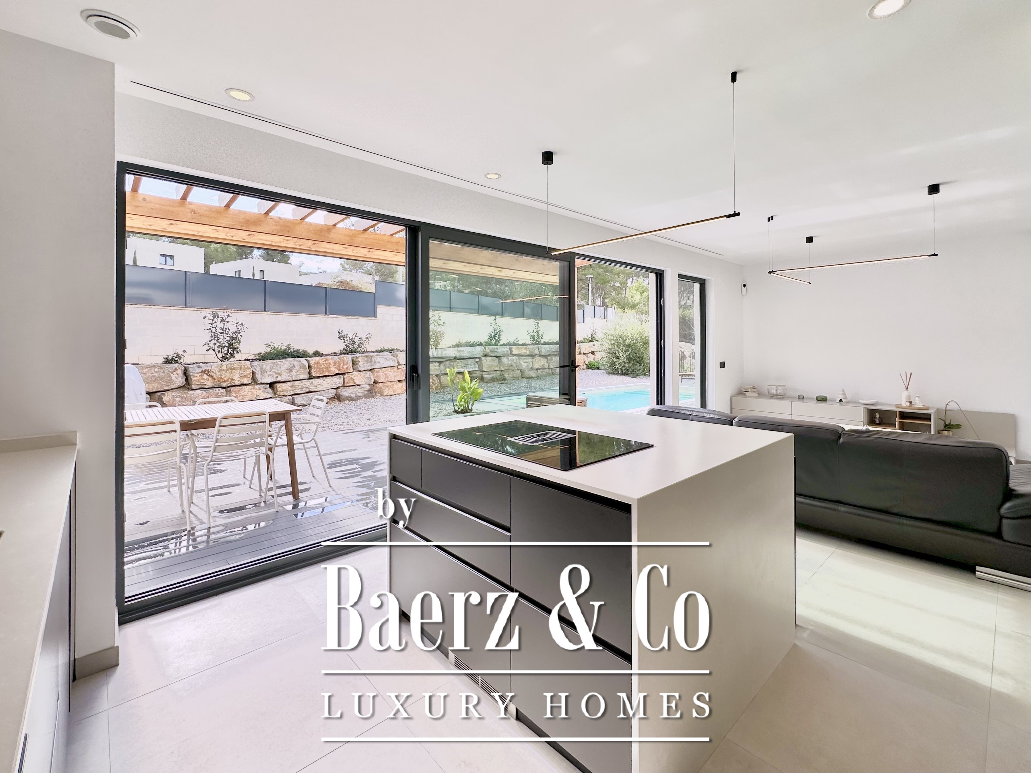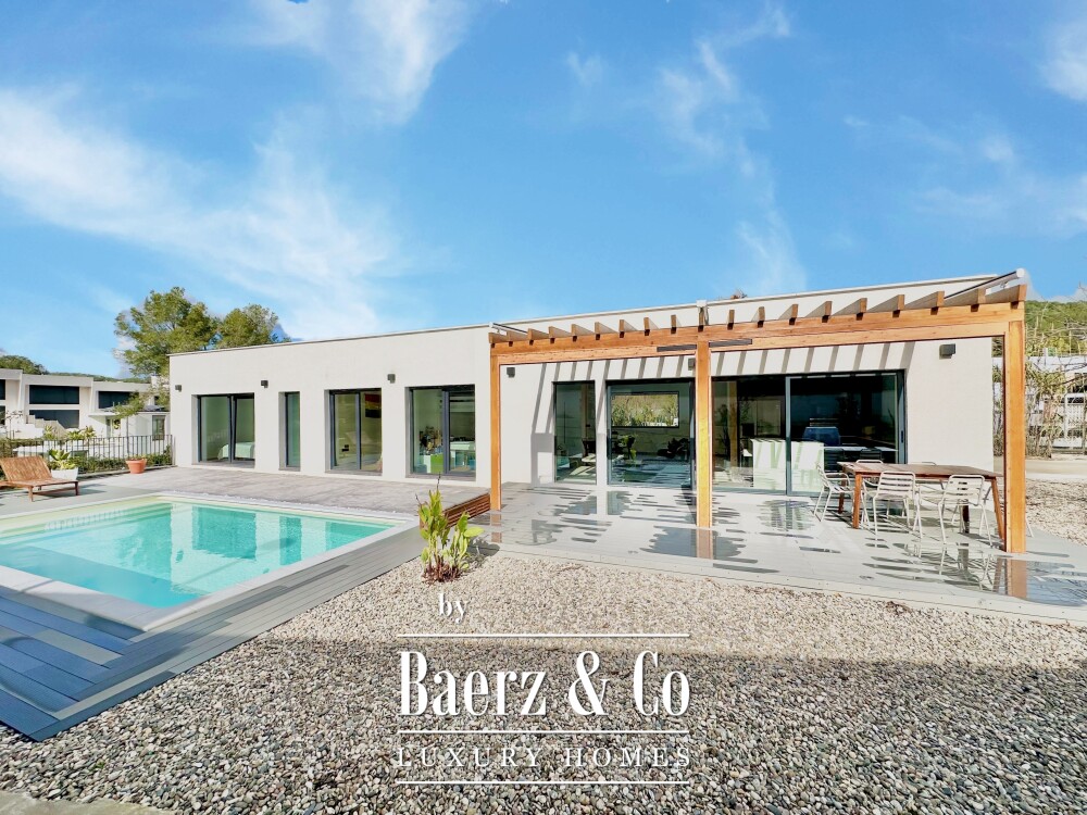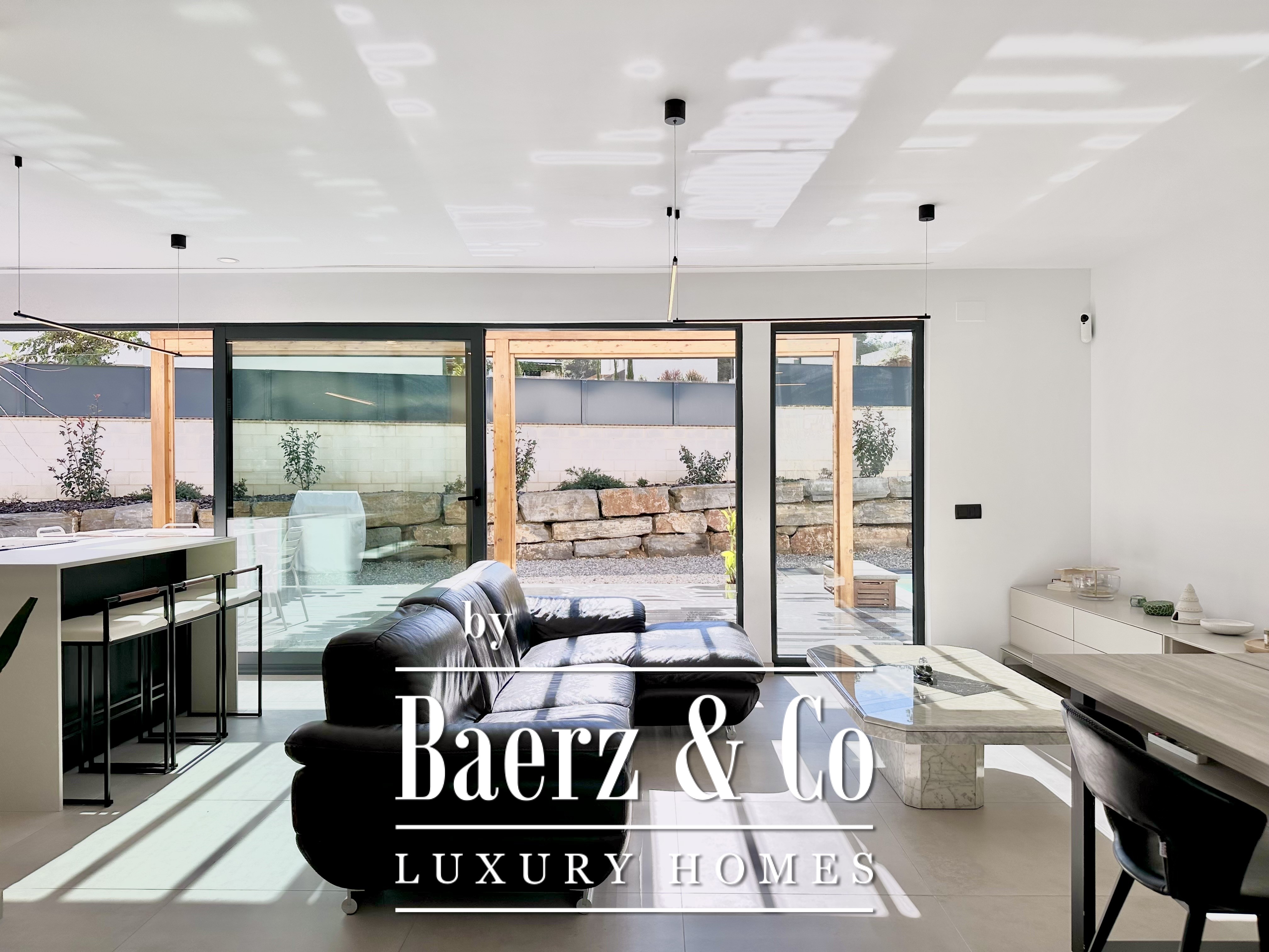 This modern villa Sitges is a newly completed, energy-efficient home designed with sustainability and contemporary minimalism at its core. Located in the tranquil Mas Alba area of Sitges, the property occupies an 860 m² double plot and offers 296 m² of living space, complemented by a 32 m² private pool and mountain views.