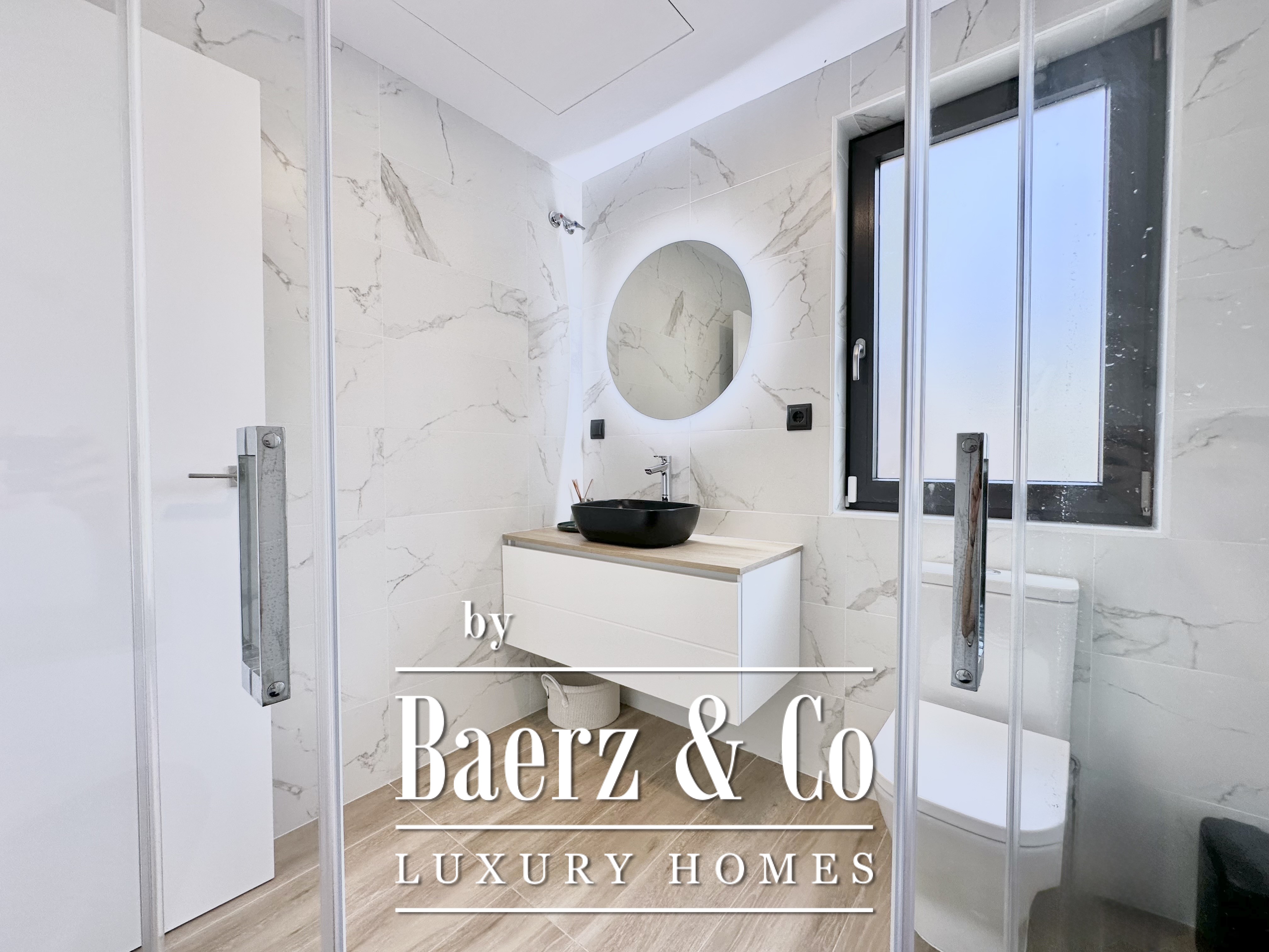 Constructed in 2023 following rigorous Passivhaus criteria, the villa achieves energy class A. It features an aerothermal system, photovoltaic panels, and superior wall insulation with a thermal transmittance of 0.12 W/m²K, as well as double-glazed, argon-filled windows and full blind coverage in every room. The result is year-round thermal comfort, near-silent interiors, and exceptionally low energy use.