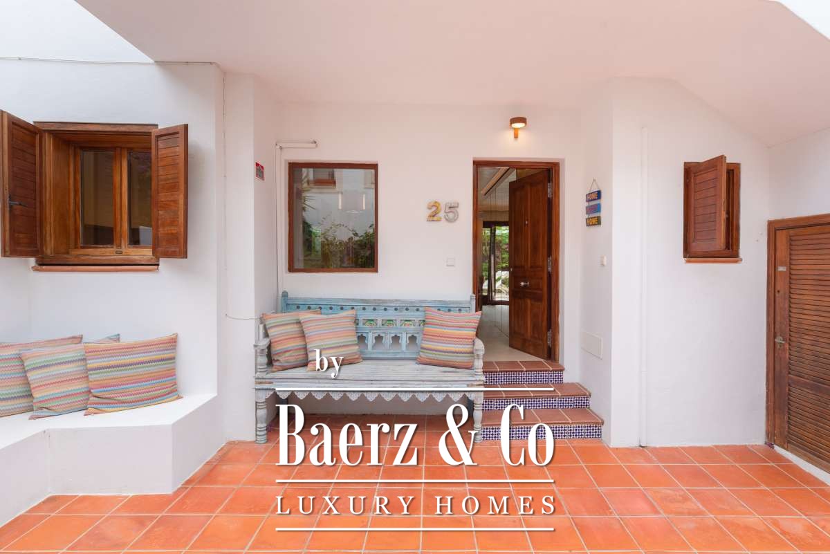 The SurroundingsWelcome to Santa Gertrudis, the most beloved and charming village in Ibiza. This delightful place is a favourite meeting point for locals, families, entrepreneurs, and lifestyle lovers from around the world. The lively village square with its cafés, art galleries, and excellent restaurants is just a short walk away. Everything here feels warm and welcoming, with an atmosphere that is both stylish and relaxed. Thanks to its central location, you can reach the most beautiful beaches, Ibiza Town, and the airport in no time. Santa Gertrudis offers the best of Ibiza: tranquillity, beauty, gastronomy, and authenticity.The ApartmentThis beautiful ground-floor apartment with a total of 129.70 m² exudes a warm and exclusive atmosphere. The 57.15 m² interior is designed with great attention to detail, combining comfort with a unique and stylish appearance. The living room forms the heart of the home and connects to the outdoor space through large sliding doors, seamlessly blending indoor and outdoor living. The kitchen is practical and elegantly designed, integrated
