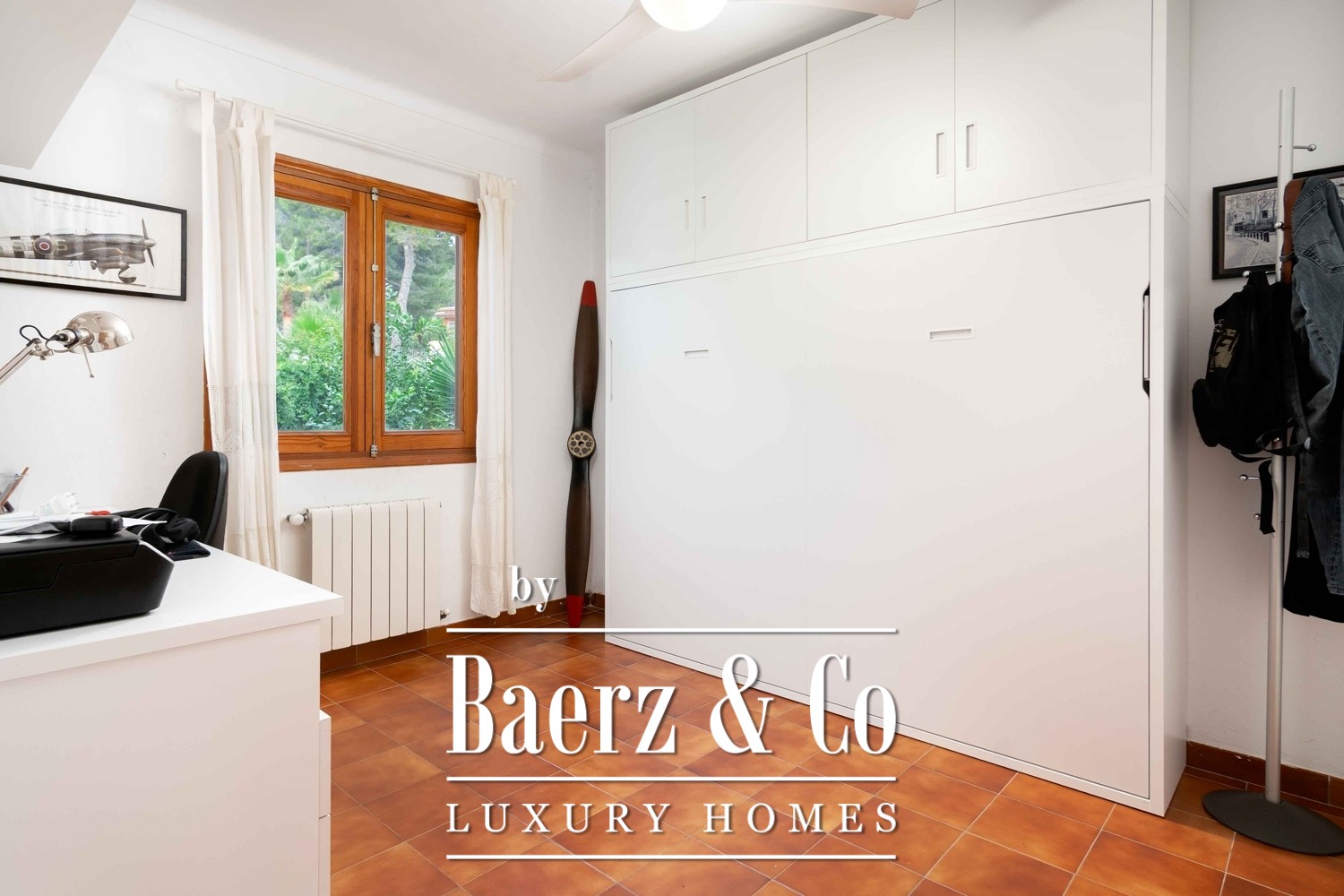 This Mediterranean villa Santa Ponça stands just minutes from the marina, set on a generous 1,224 m² plot. The constructed area reaches 330 m² with approximately 229 m² of living space arranged over two calm, purposeful floors. Across the ground level, a spacious living room centres on an elegant wood-burning fireplace, while a modern kitchen with dining area and separate entrance complements daily rhythms. Four bedrooms, including an en suite, and two well-finished bathrooms offer privacy and functionality.