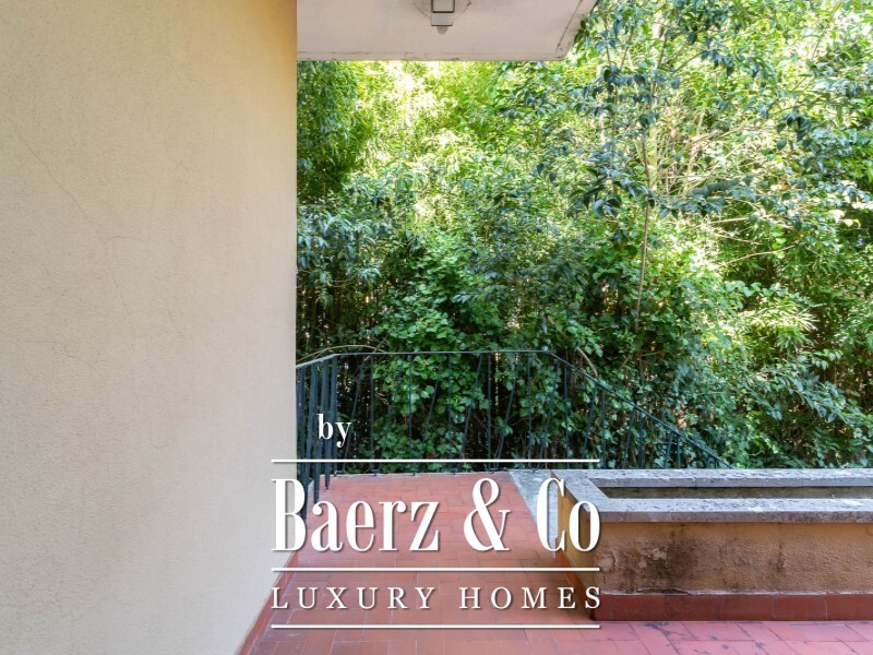 Currently, the villa is divided into three independent apartments: 2 duplex apartments, each with four bedrooms, a spacious living room, kitchen, two bathrooms, and direct access to the garden and pool.