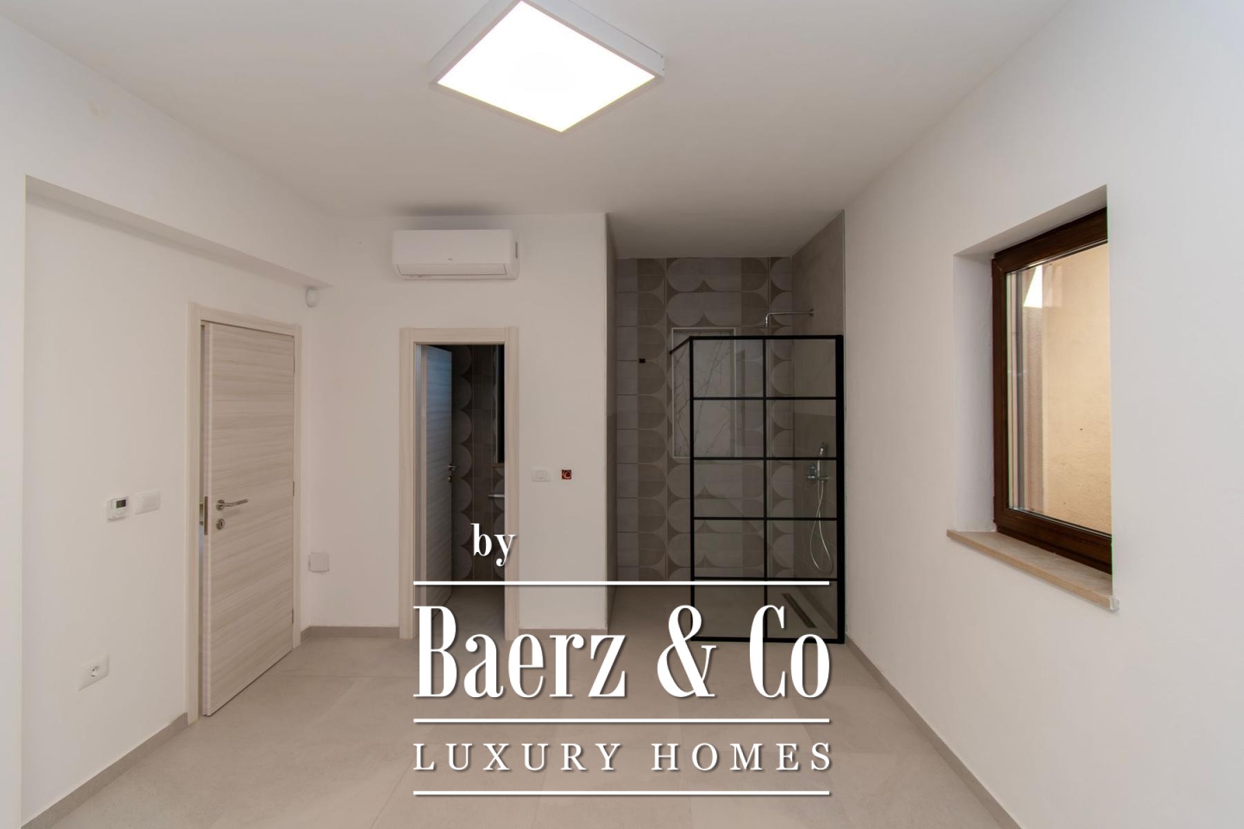 an oasis of peace.The quality of construction and equipment is at the highest level, with reinforced concrete construction and facade stone wool d=10 cm and a silicate finish, ensuring superior energy efficiency (certificate A). The ceiling height of 2.75 m gives a feeling of airiness, while high-quality joinery with triple glass in walnut color, plastered with bio-plaster of the interior and paint of the interior walls based on lime, create a healthy and pleasant environment. The floors are covered with ceramics from the Italian manufacturer NORDIK TILE and oak parquet of the 1st class.The villa is equipped with a fire protection system, DAIKIN heat pumps in all rooms with electronic regulation, and 11 air conditioners for optimal temperature throughout the year. Security is ensured by video surveillance, an intercom and an alarm system. The exterior impresses with five parking spaces (three covered), two entrances to the yard, and the facade of the house, terraces and stone-built (drywall) walls on an area of approximately 250-300 m2. Profiled stone erts on the windows, an outdoor shower, eight olive trees aged 60-70 years and external irrigation, round off this exclusive offer.If you want to own a quality, modern villa about 10 minutes from the first beaches in Vrsar or Poreč, feel free to contact us - we are at your disposal.