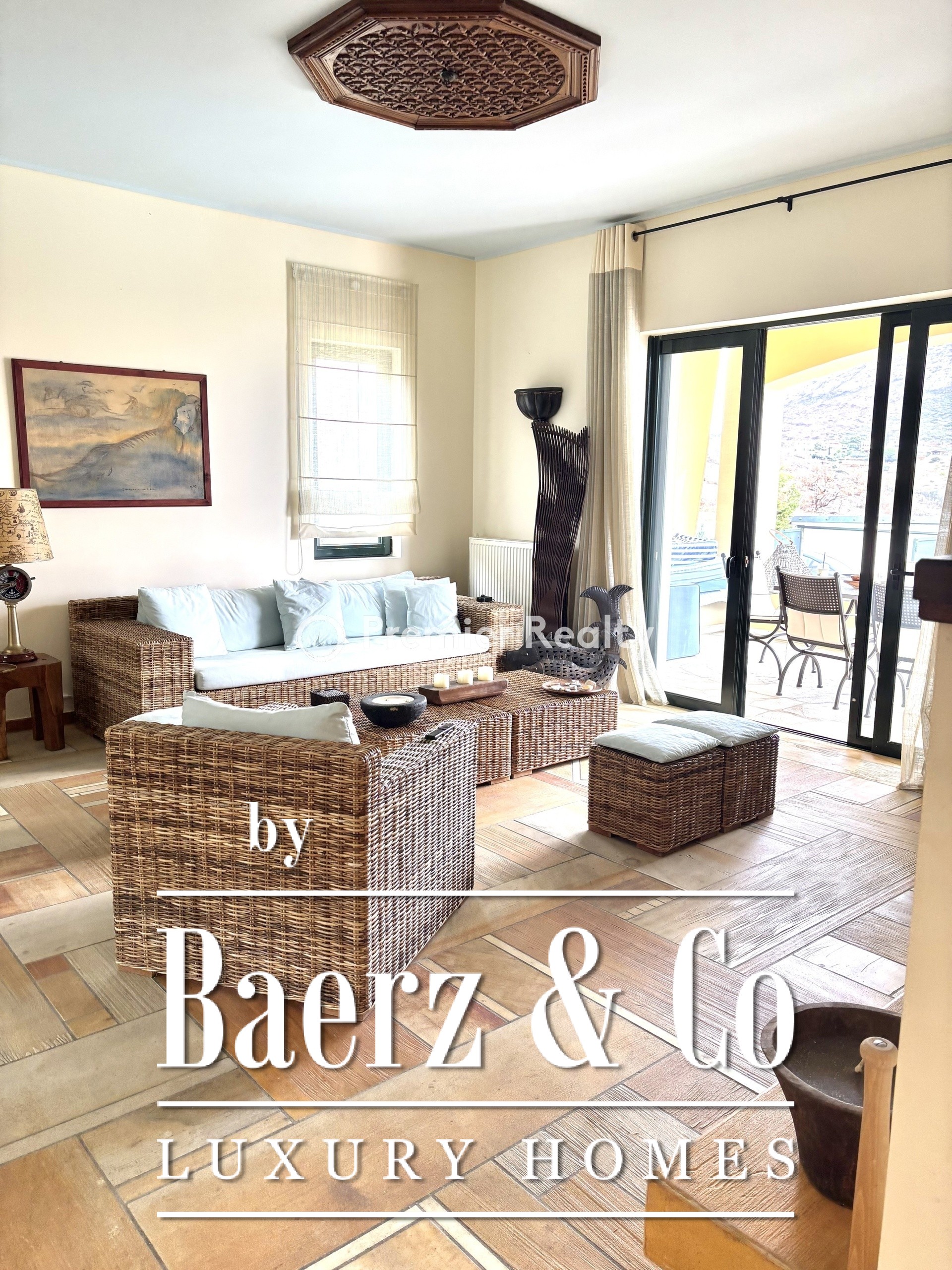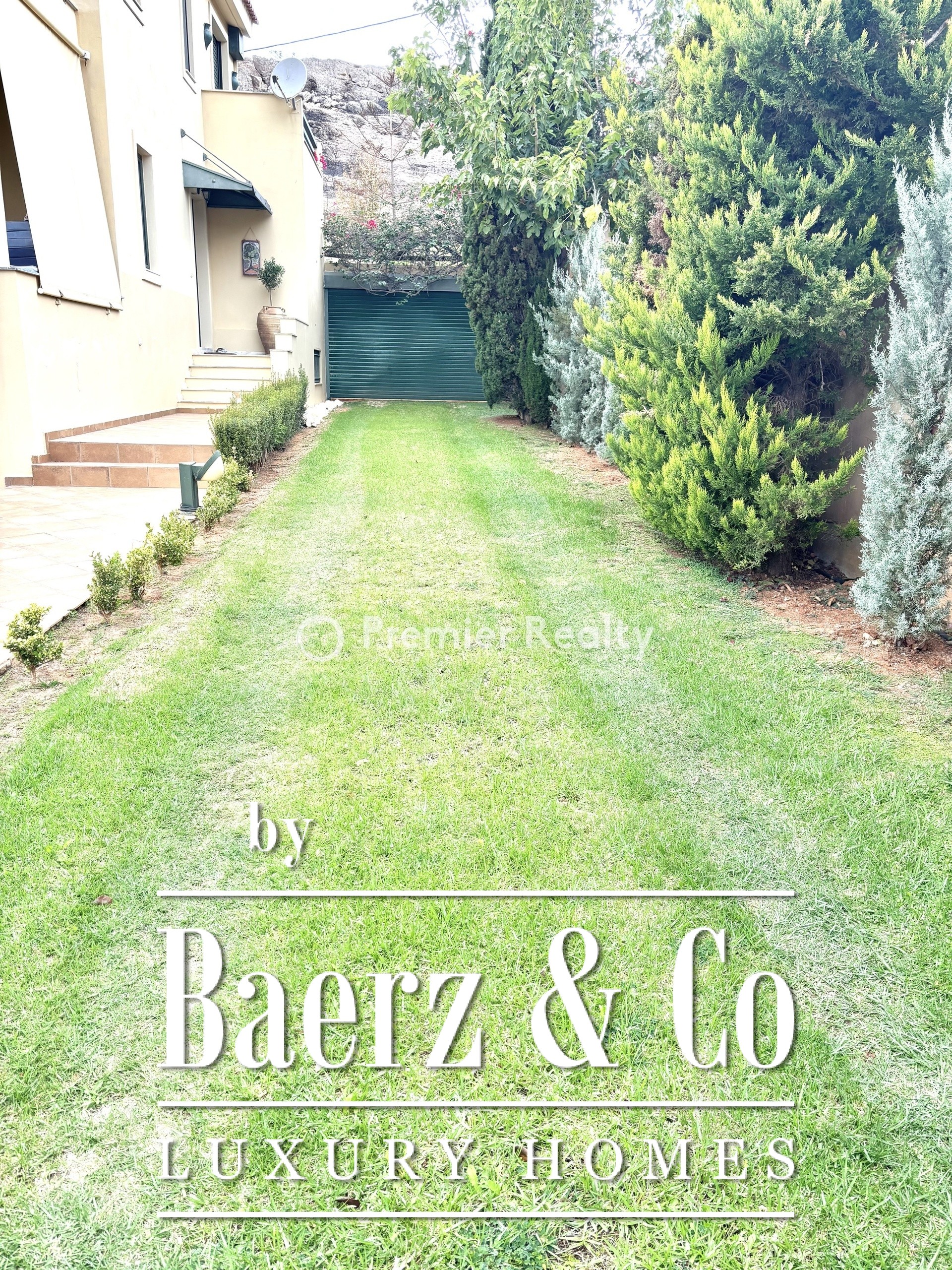 A 25 sq.m. infinity pool is the focal point of the outdoor spaces, set against panoramic sea views. Manicured gardens with automatic irrigation, shaded terraces, and balconies create multiple settings for relaxation. A dedicated built-in BBQ area with wood oven and al fresco dining space invites gatherings with family and friends, embodying the Mediterranean lifestyle. With the beach just 200 m away, the residence seamlessly combines privacy with coastal ease.
